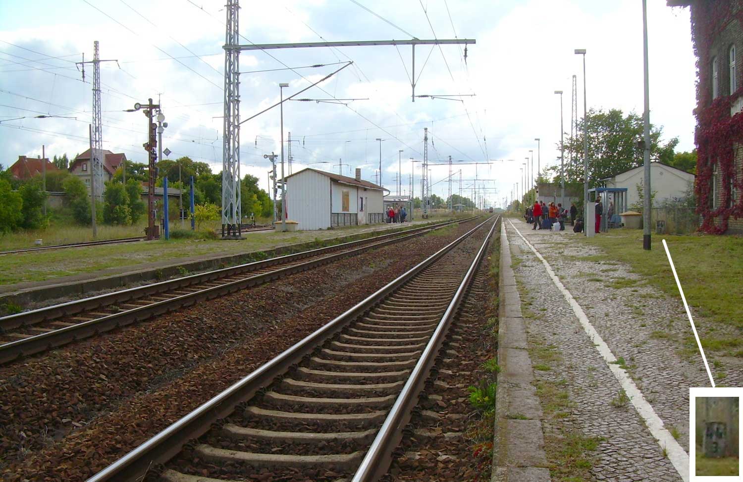 km 142,36 der Strecke Ludwigslust 0,0 - Parchim 25,90 - Karow (Meckl) 61,00 - Waren (Müritz) 95,79 - Neubrandenburg 142,36 | ||
