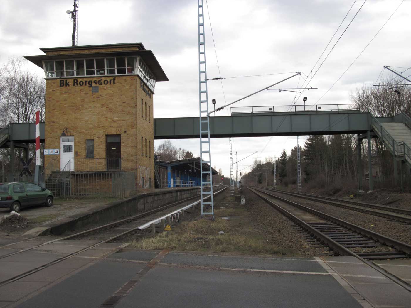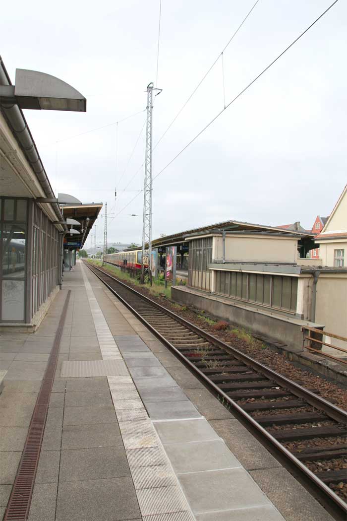 Im Hintergrund der Haltepunkt Sachsenhausen (Nordbahn),