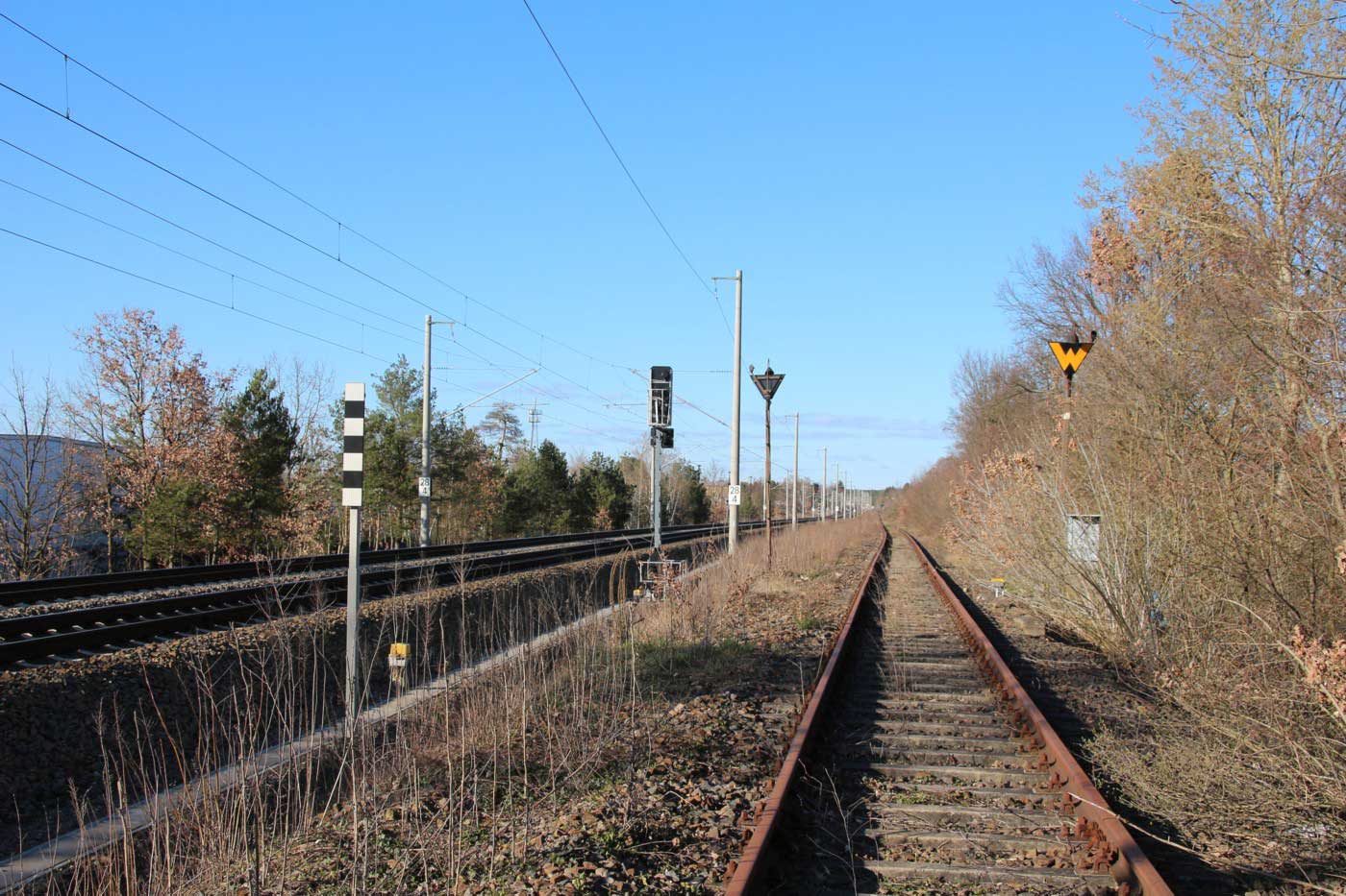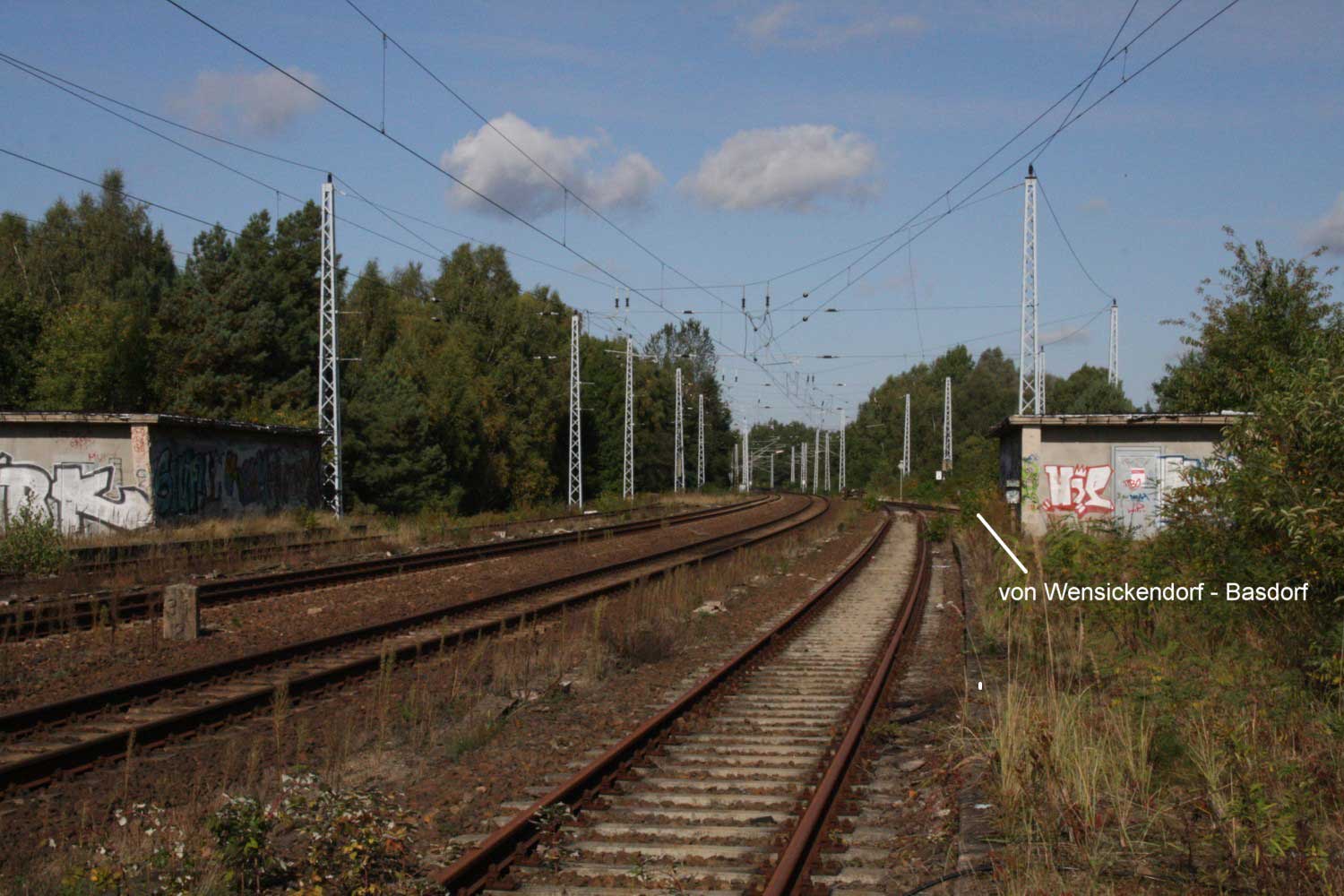 Rechts das ehemalige Gleis der Verbindung Wensickendorf - Sachsenhausen (Nordbahn)/Fichtengrund