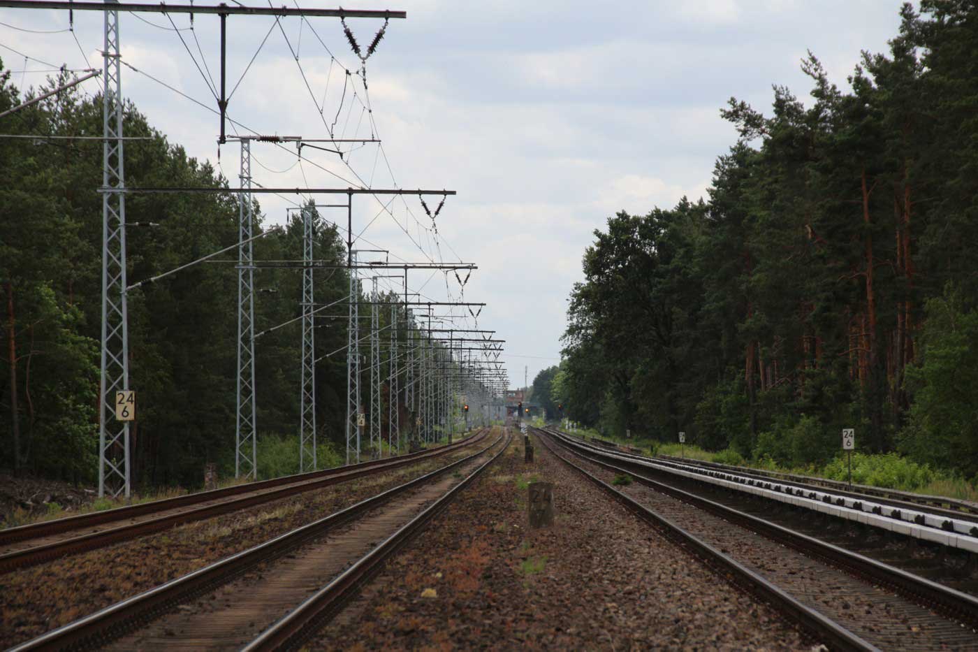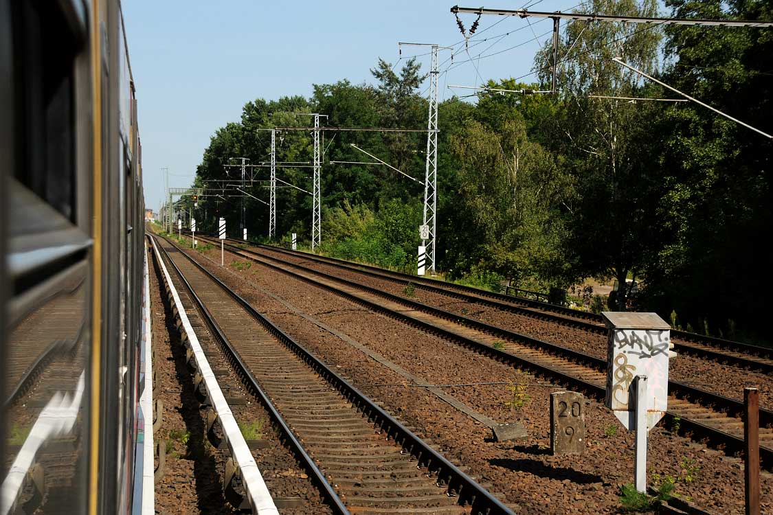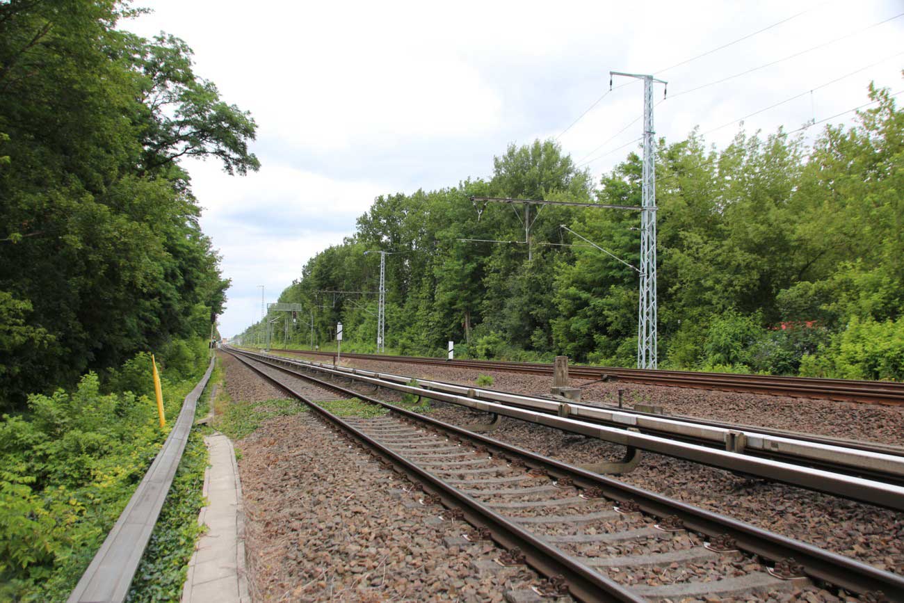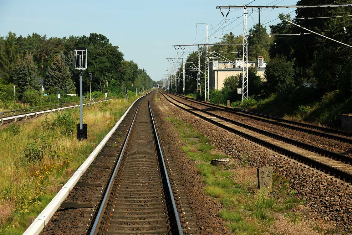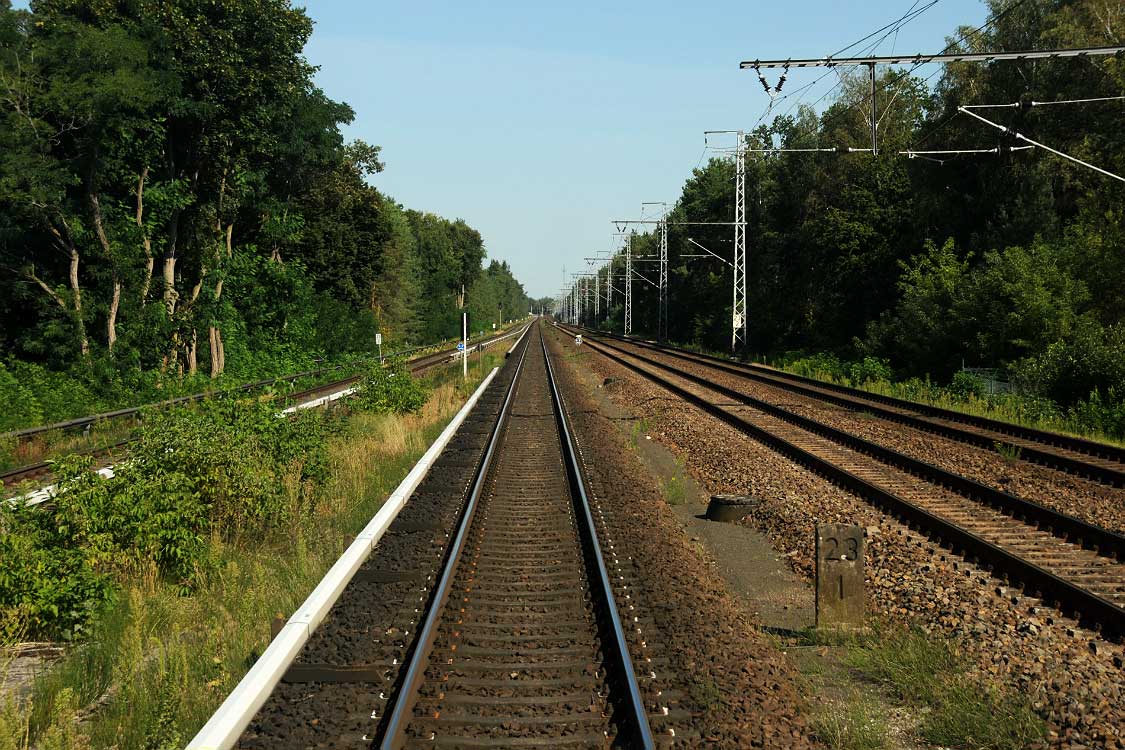 km 28,8 zwischen Oranienburg und Sachsenhausen (Nordbahn) - Blick Richtung Berlin