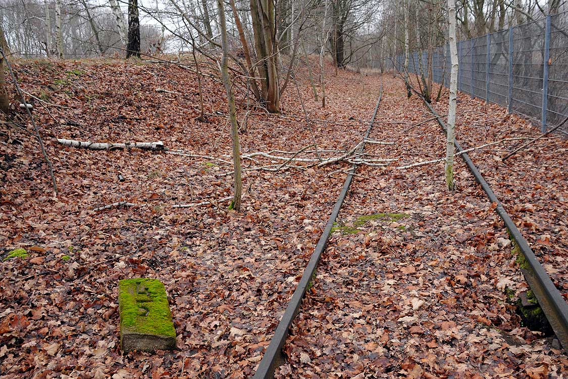 Im Vordergrund das ehemalige Gleis der Verbindung Wensickendorf - Sachsenhausen (Nordbahn)/Fichtengrund