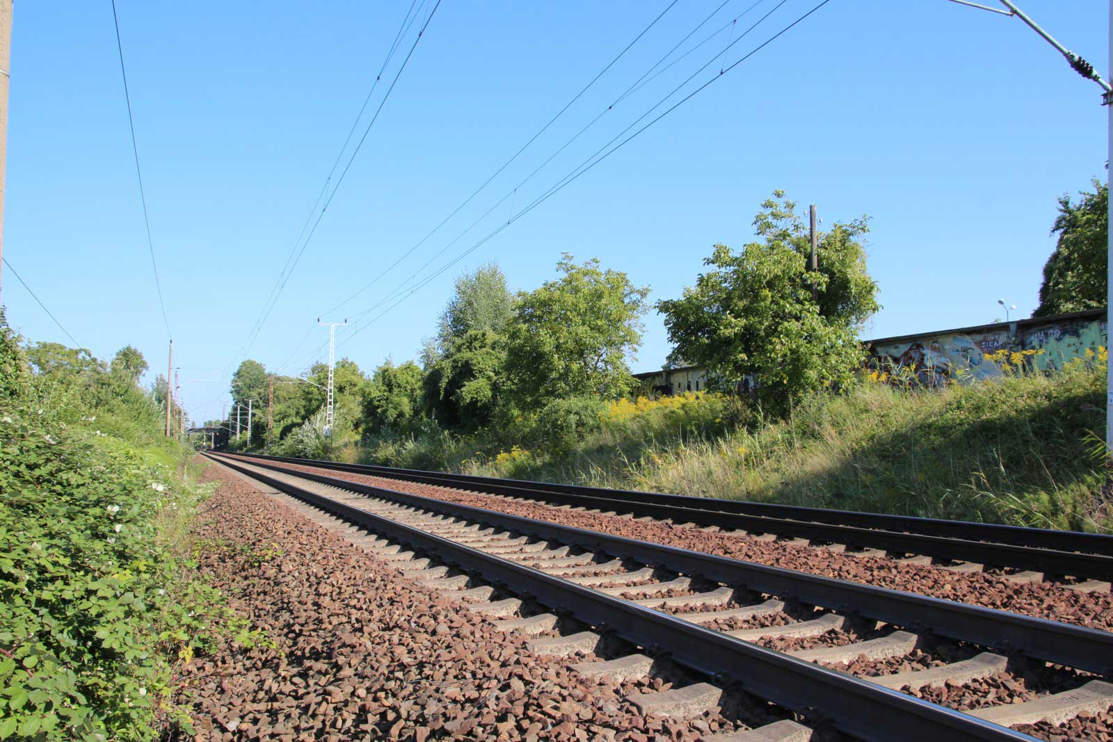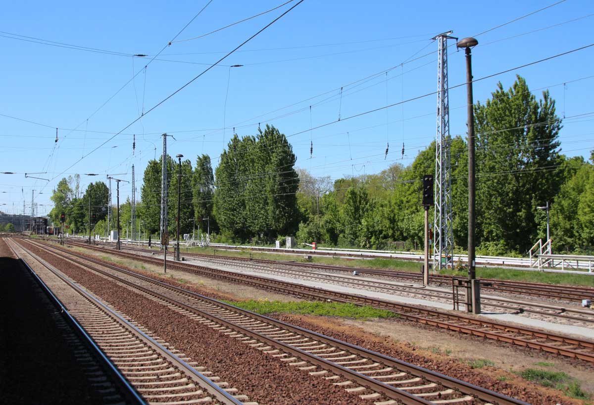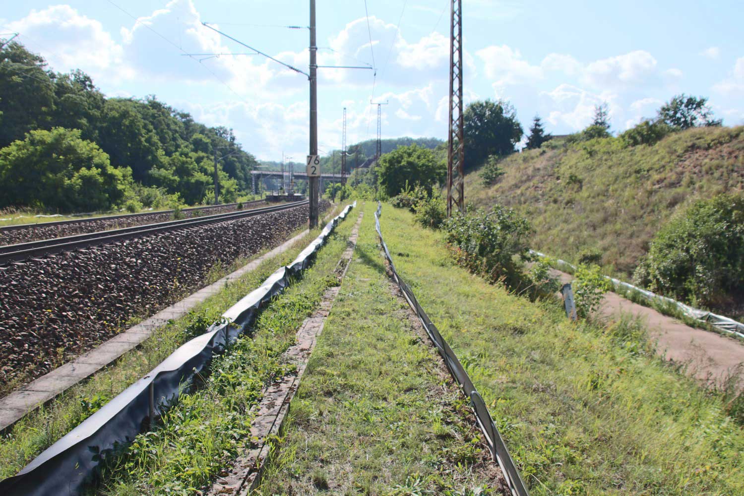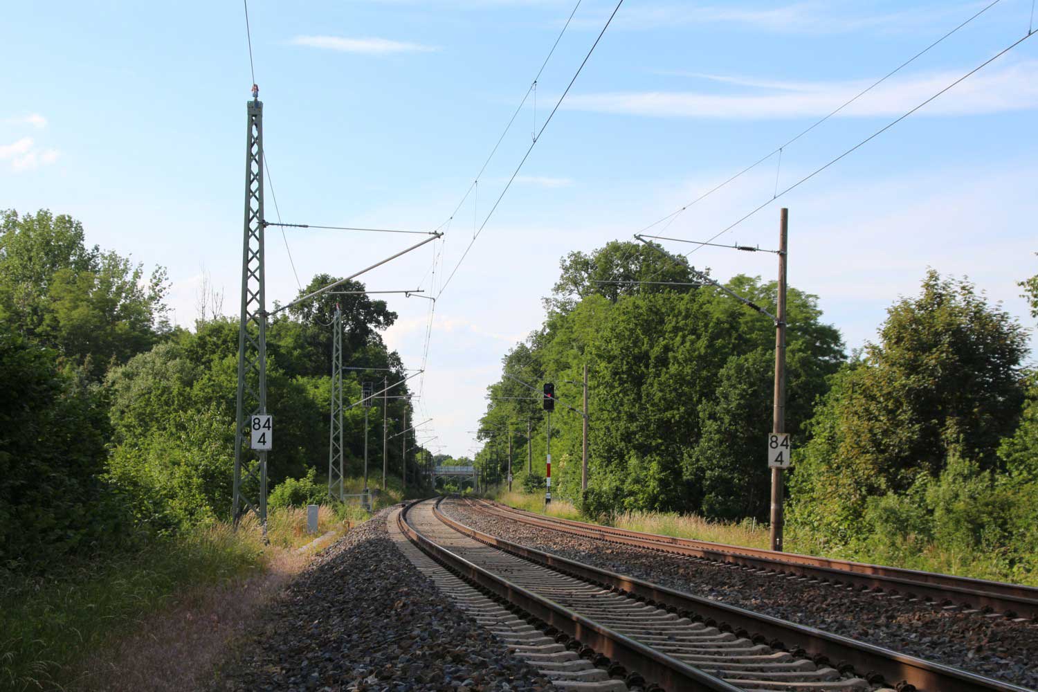 Ganz rechts im Bild ist noch das Schienenprofil der Verbindungskurve