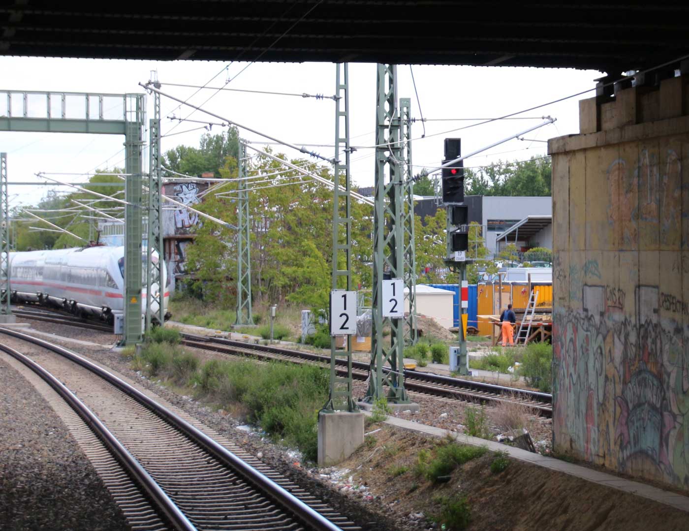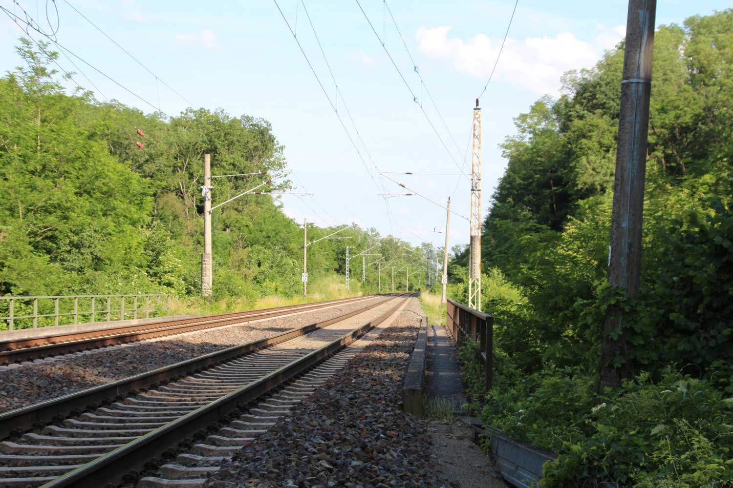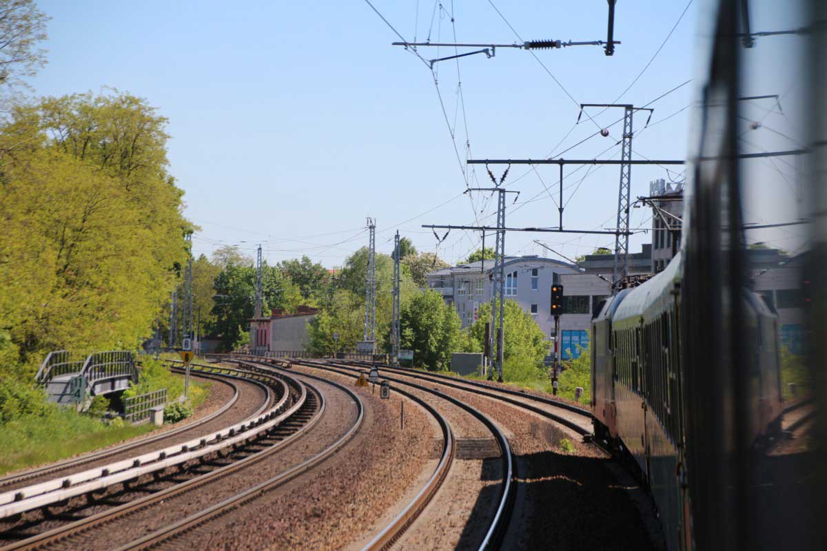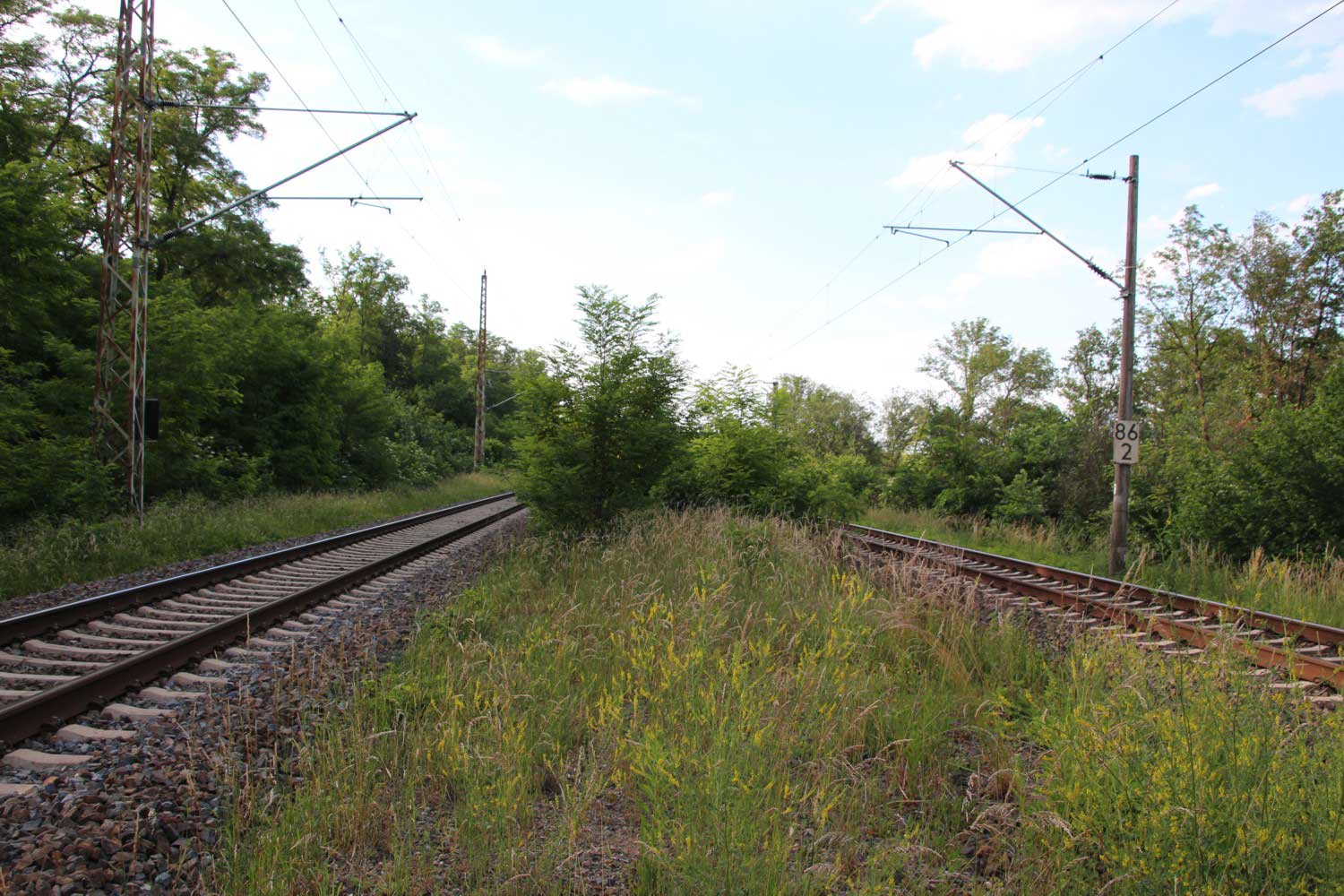 Ganz rechts im Bild ist noch das Schienenprofil der Verbindungskurve