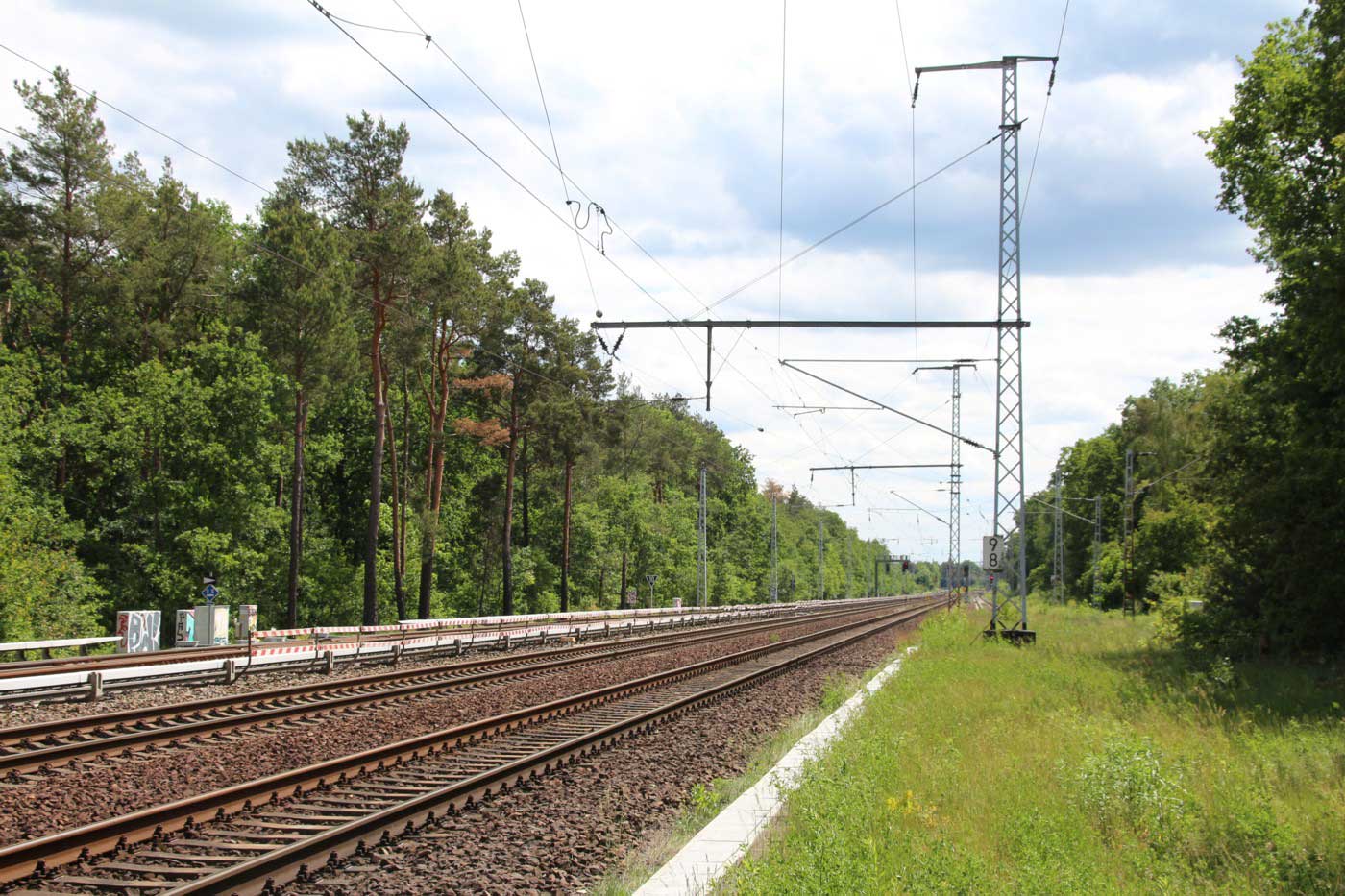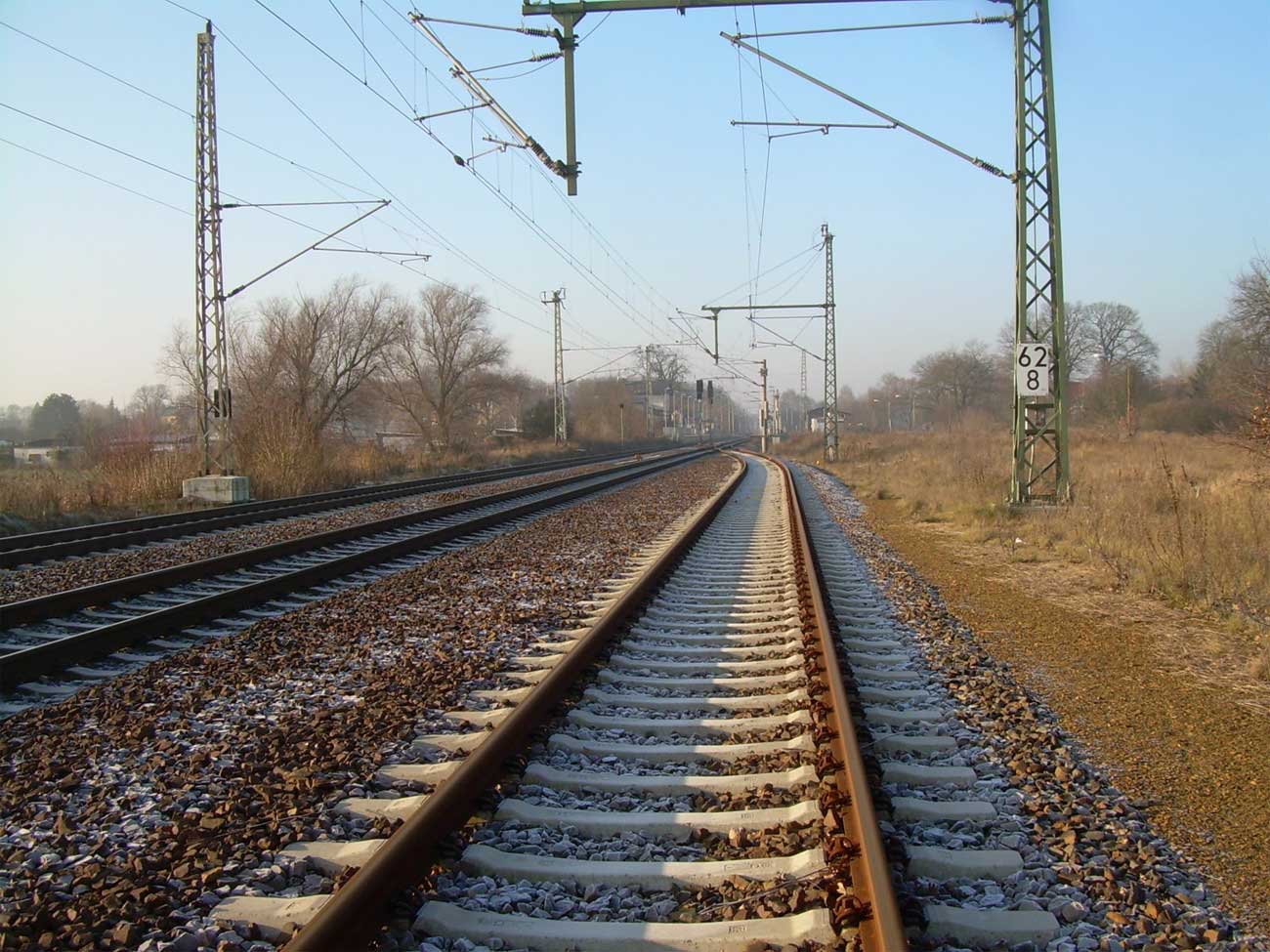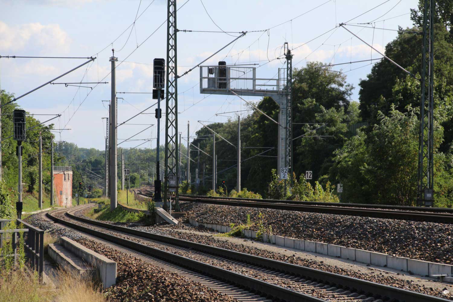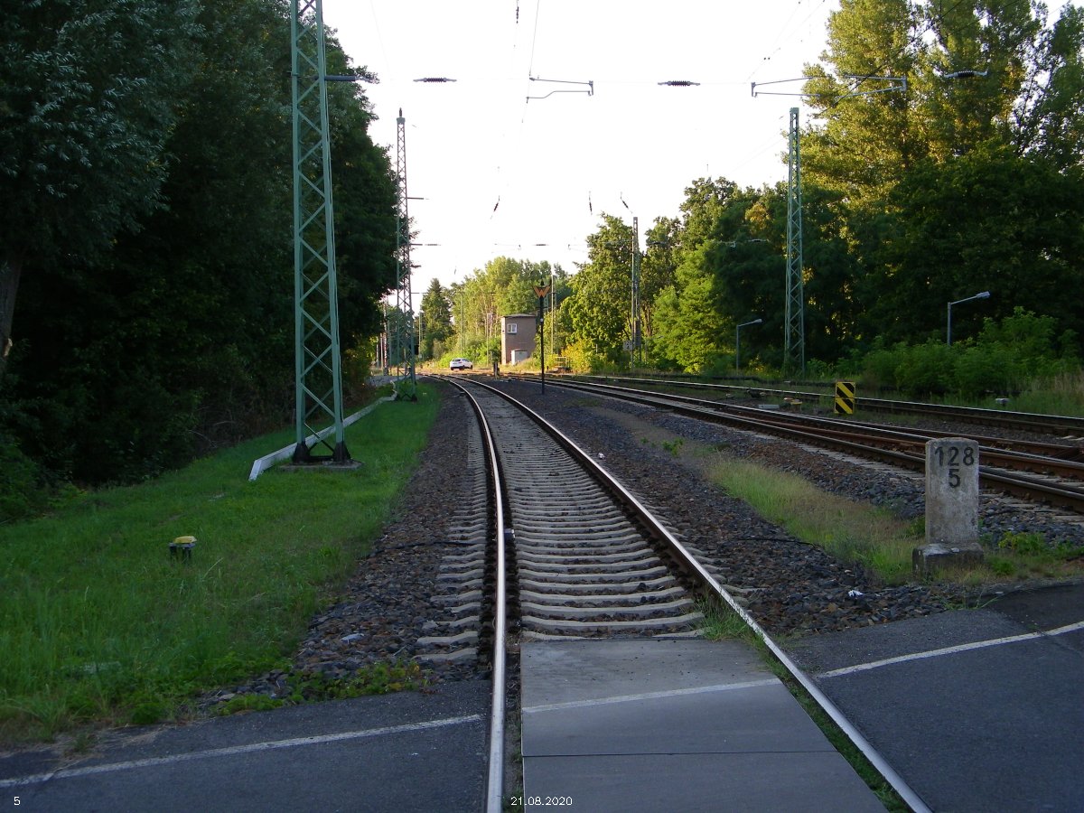 km 152,79 der Strecke Großenhain Cottb. Bf 0,0 - Senftenberg 45,29 - Cottbus 79,67 - Frankfurt (Oder) Pbf 152,85 (Personenzuggleise)/152,79 (Güterzuggleise) | ||