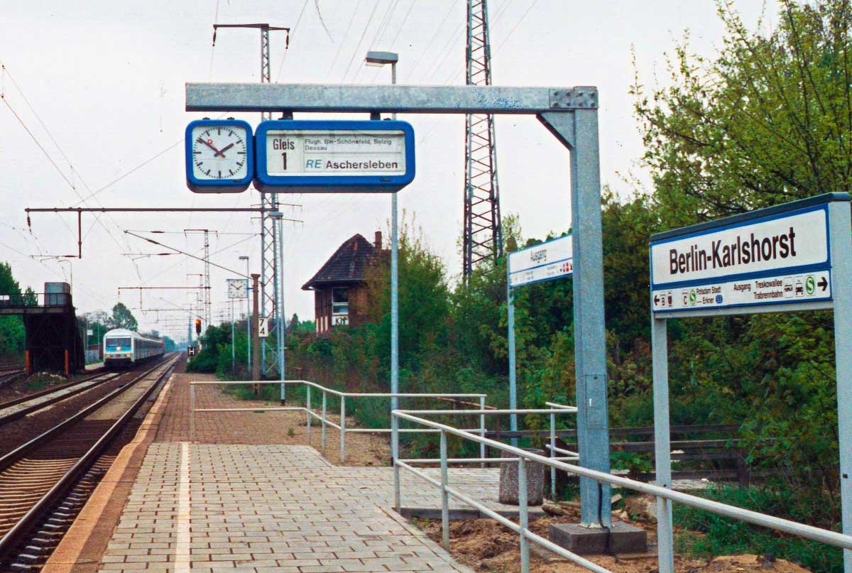 Berlin Schlesischer Bf | 0,10 | km 0,0 der Strecke Berlin Schlesischer Bf 0,0 - Berlin Friedrichstraße 3,97 - Berlin Zoologischer Garten 9,01 - Berlin-Charlottenburg 11,26 - Berlin-Grunewald 14,63 - Nikolassee 22,49 - Berlin-Wannsee 24,06 - Potsdam 32,98 (Stadtbahn) |