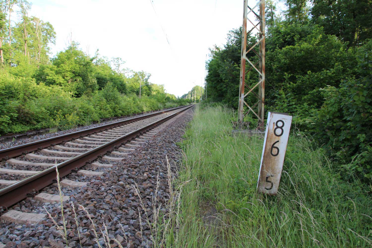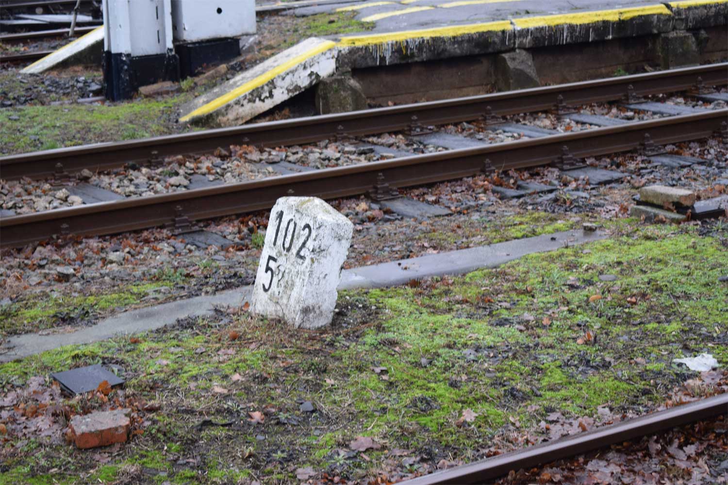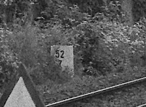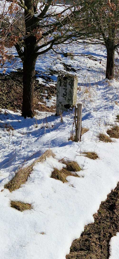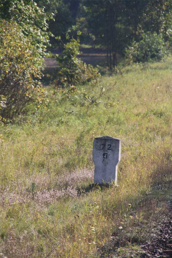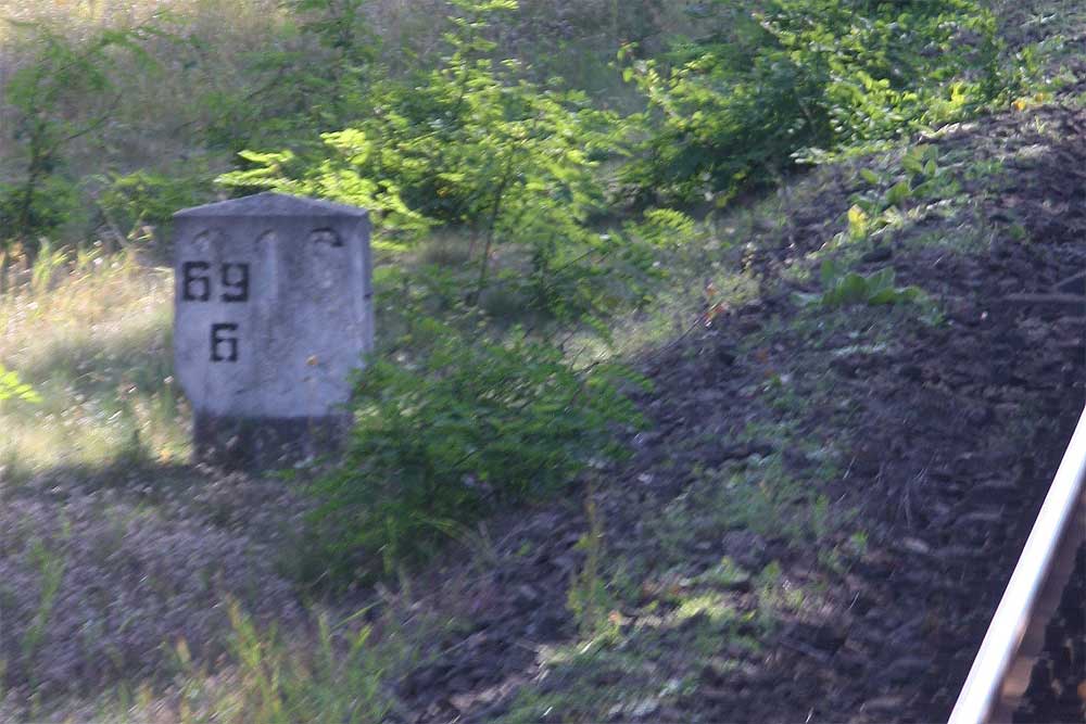 Links hinter dem Stein km 126,2 befindet sich ein weiterer Stein. Er gehört zur Strecke