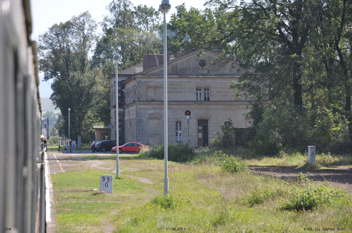 Sommerfeld Nebenbf 42,7 (bis 1945) teilweise auch Angabe: Weißwasser 0,0 - Muskau 7,71 - Teuplitz Nebenbf 30,9 - Sommerfeld Nebenbf 50,4 (bis 1945) |