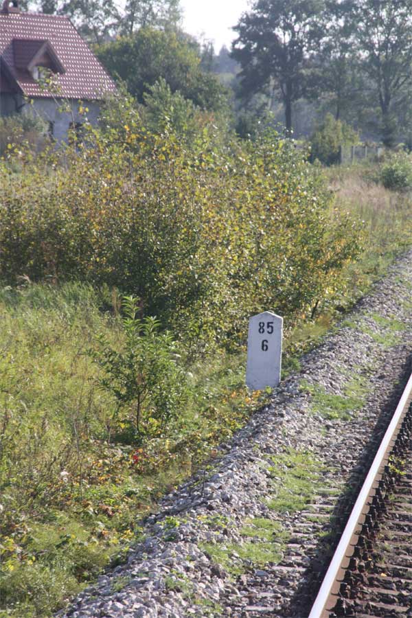 km 1,1 gehört zur Strecke Ruszów (Rauscha) 0,0 - Gozdnica (Freiwaldau) 8,422