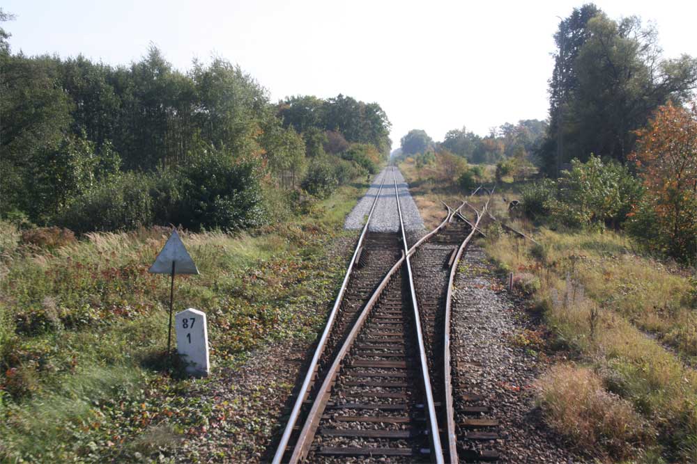 km 73,4 PKP / km 212,4 DR (bis 1945) zwischen Ruszów (Rauscha) und Węgliniec (Kohlfurt)