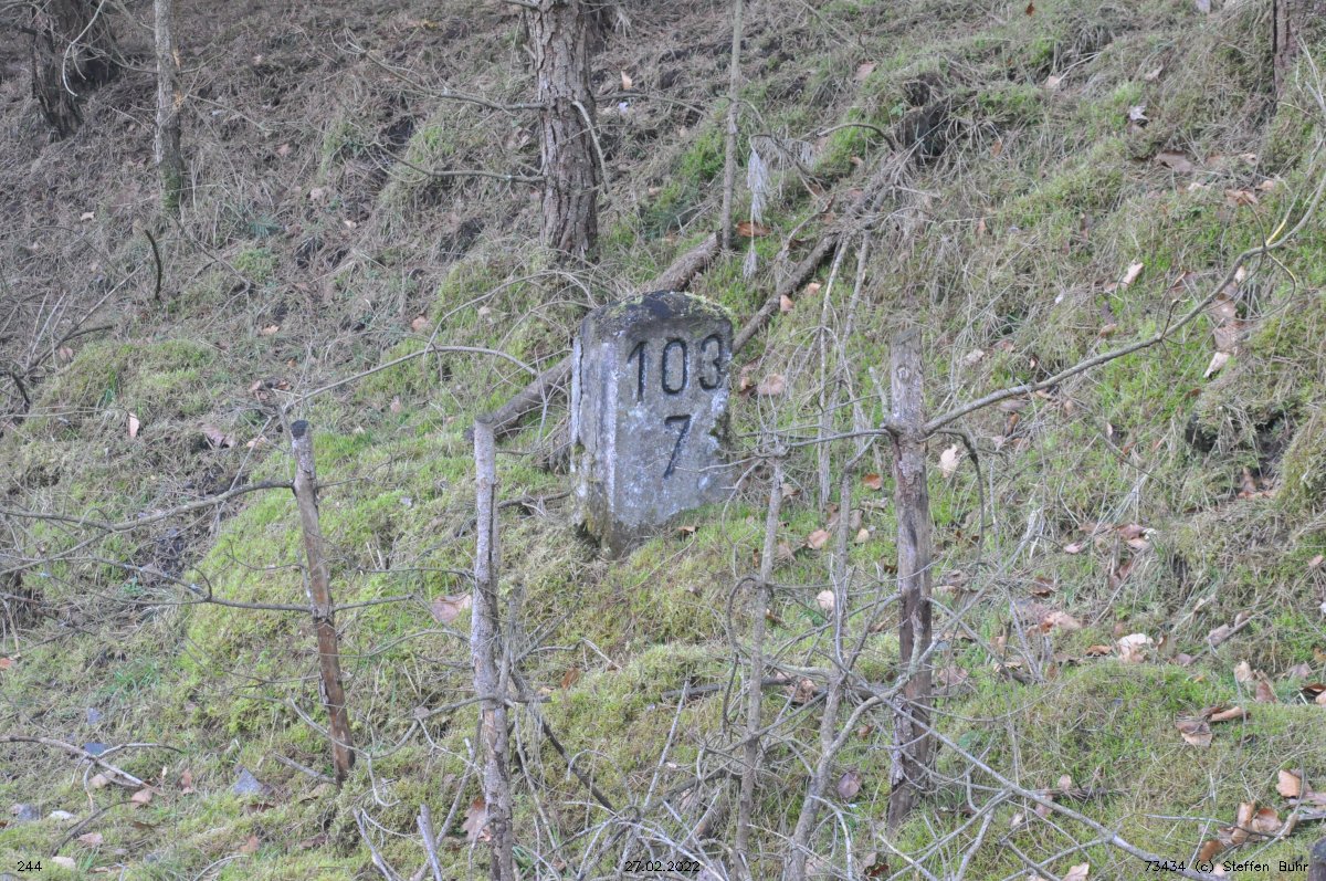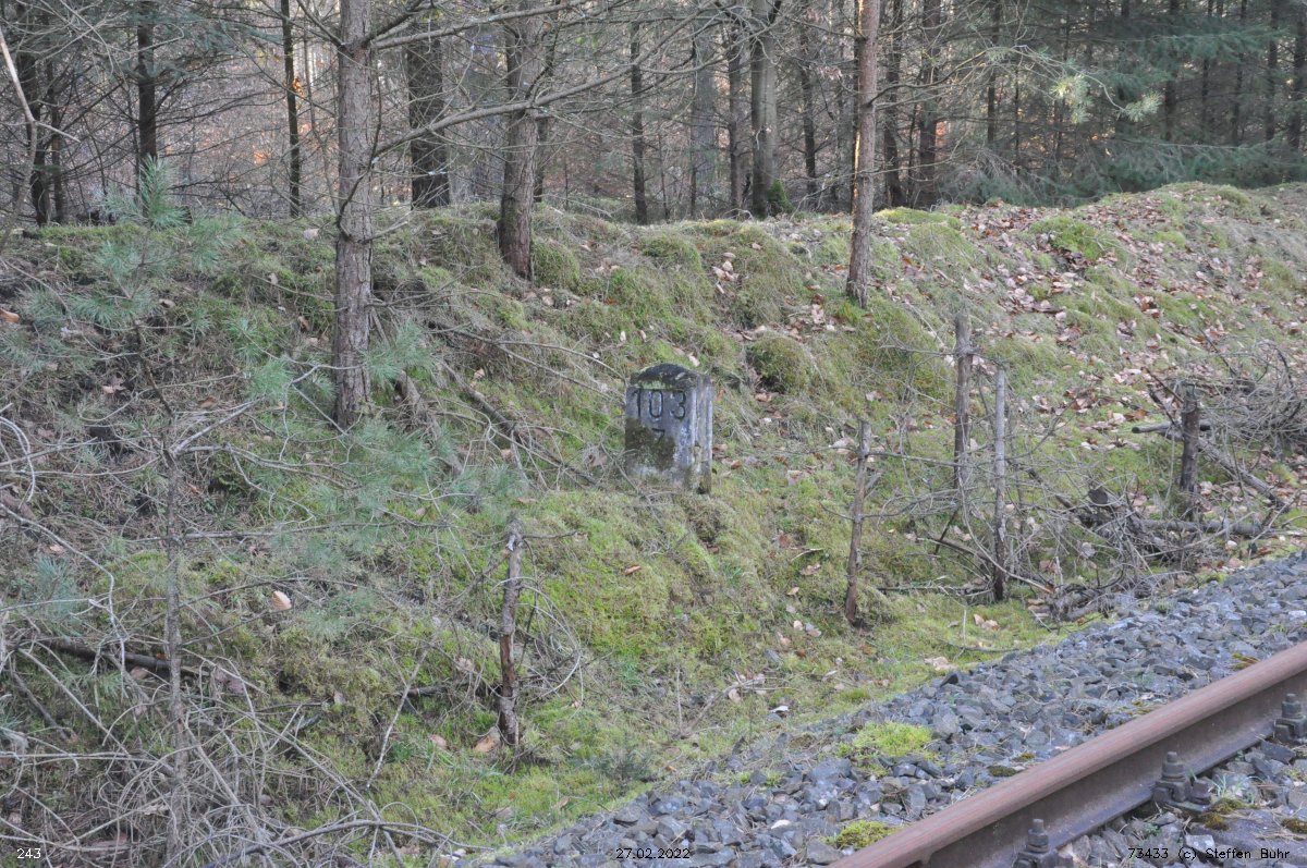 | ► | km 50,02 der abgehenden Strecke Berlin Nordbf -0,28 - Grenze Berlin West/DDR 2,74 (Streckenunterbrechung) - Berlin-Pankow 5,60 - Angermünde 70,67 - Grenze DDR/Polen 119,585 = km 10,069 - Szczecin Główny (Stettin Hbf) 0,063 mit weiterlaufender Kilometrierung (Streckenverzweigung mit gemeinsamen Nullpunkt Berlin Stettiner Bf) | |