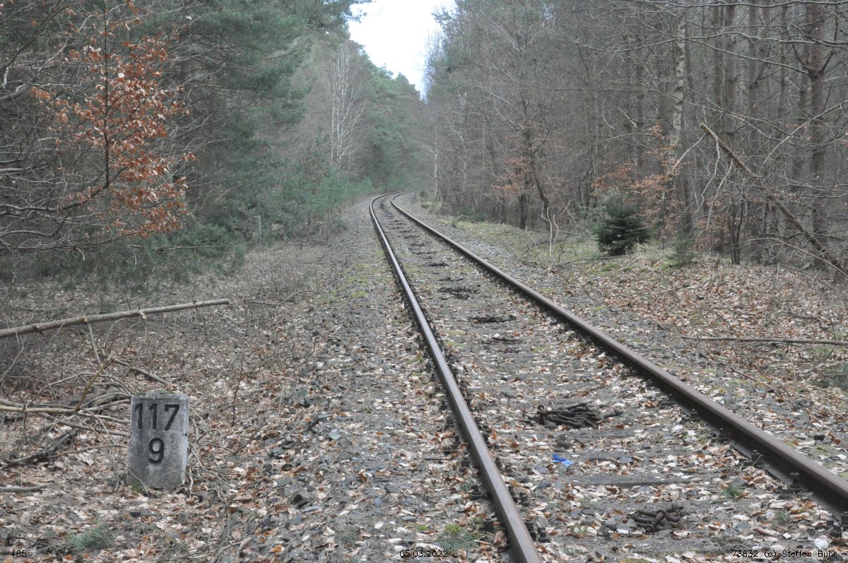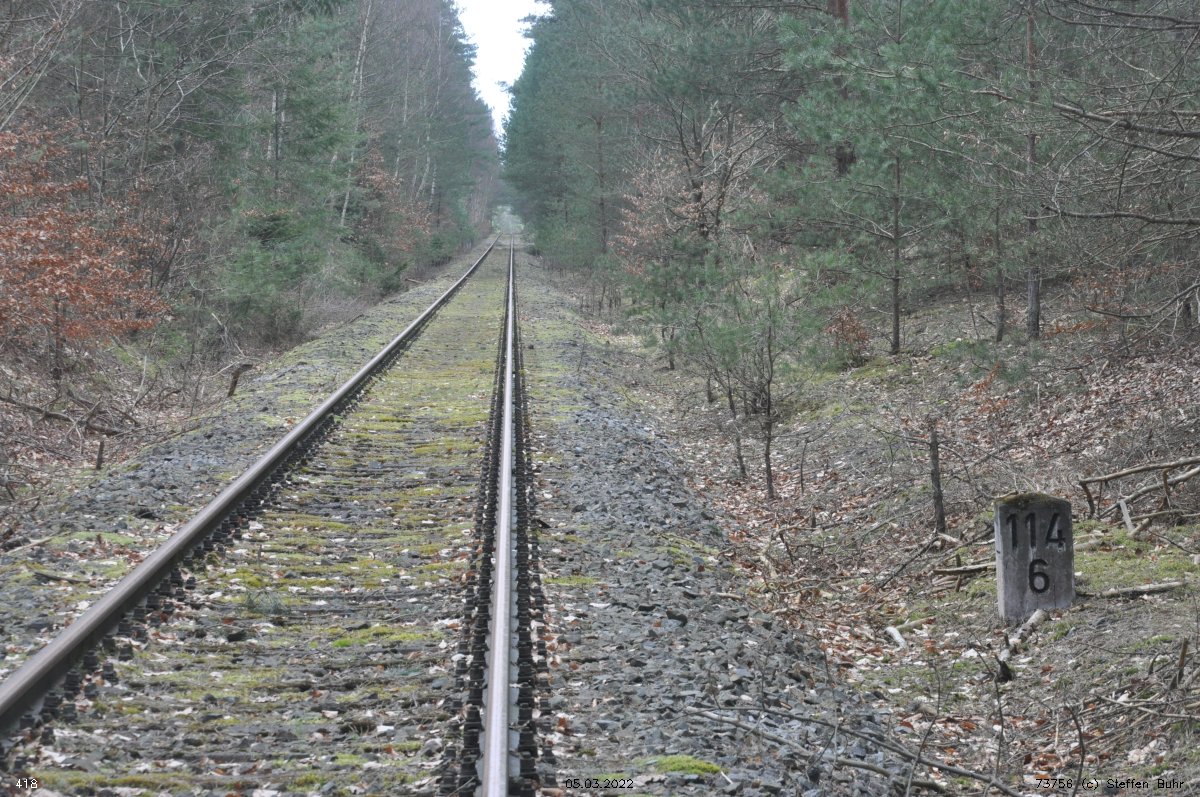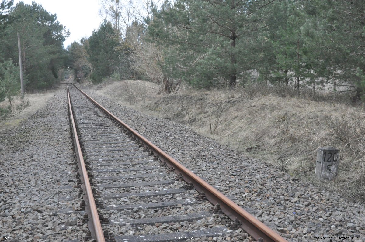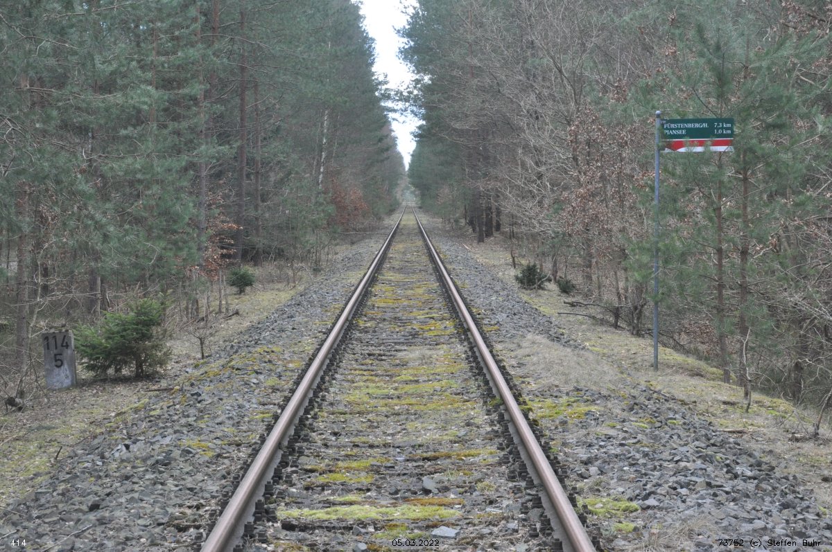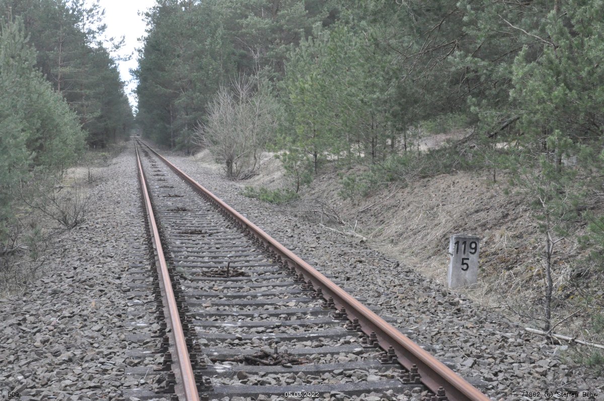 bei km 122,8 (Planum) in Fürstenberg (Havel) - Blick Richtung Streckenende