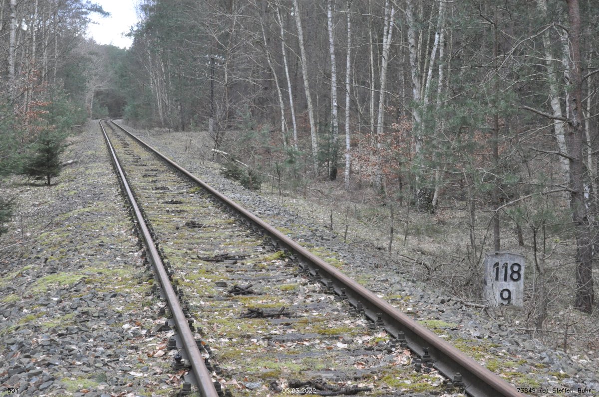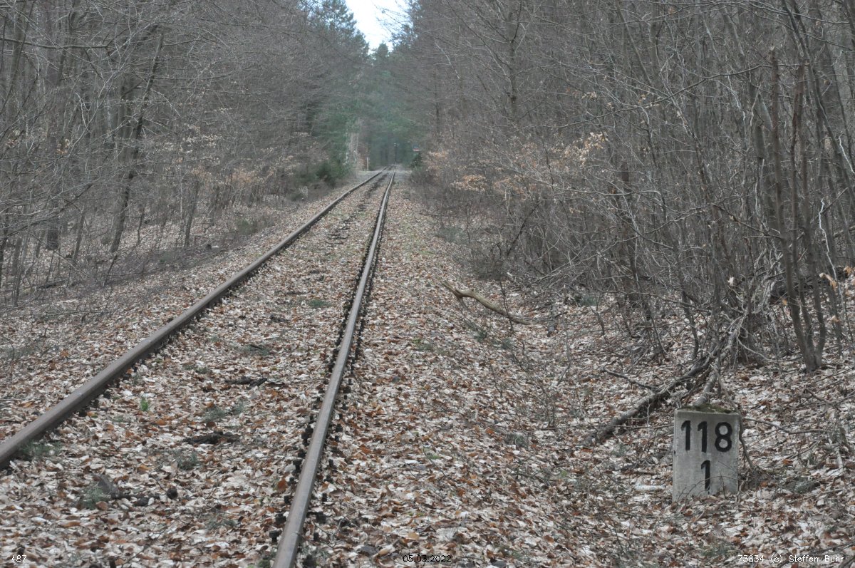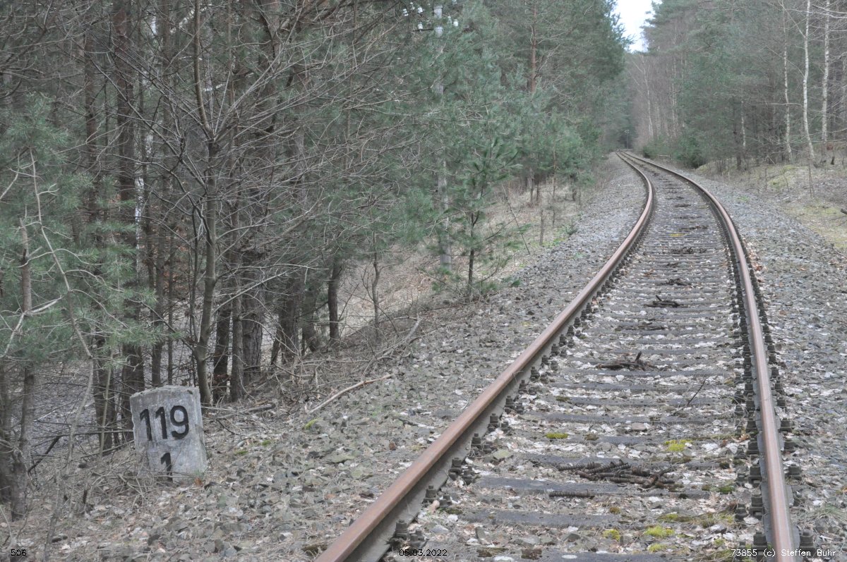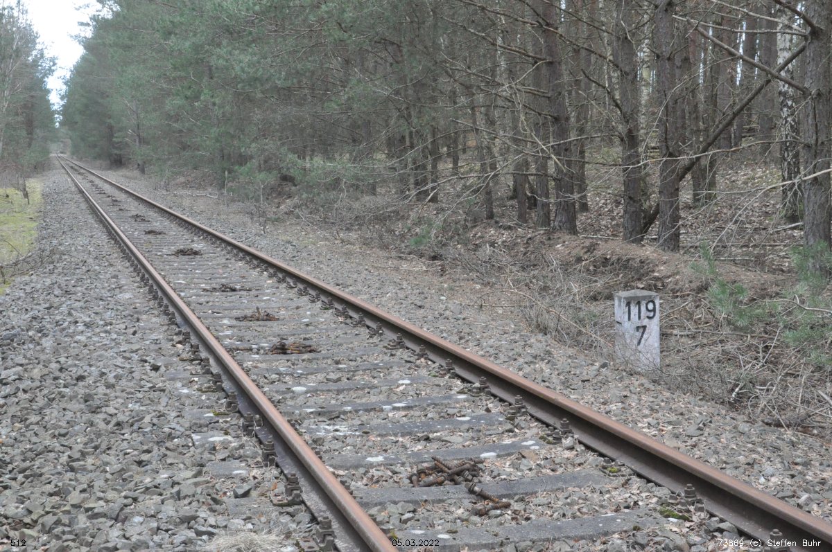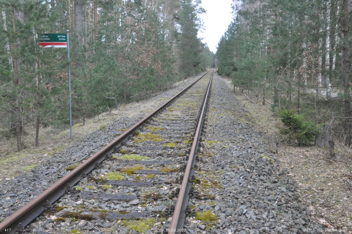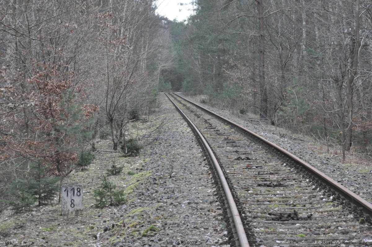 bei km 122,8 (Planum) in Fürstenberg (Havel) - Blick Richtung Streckenende