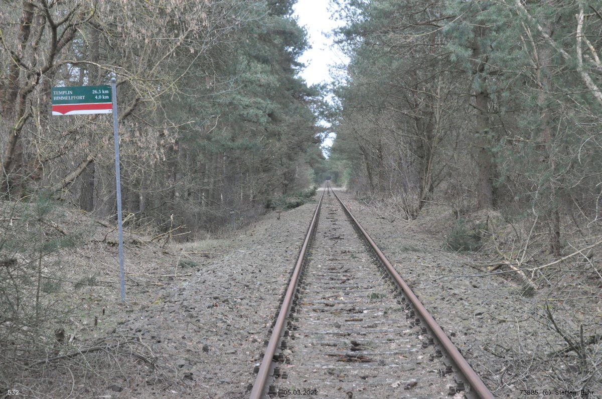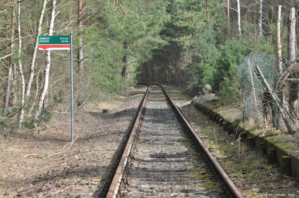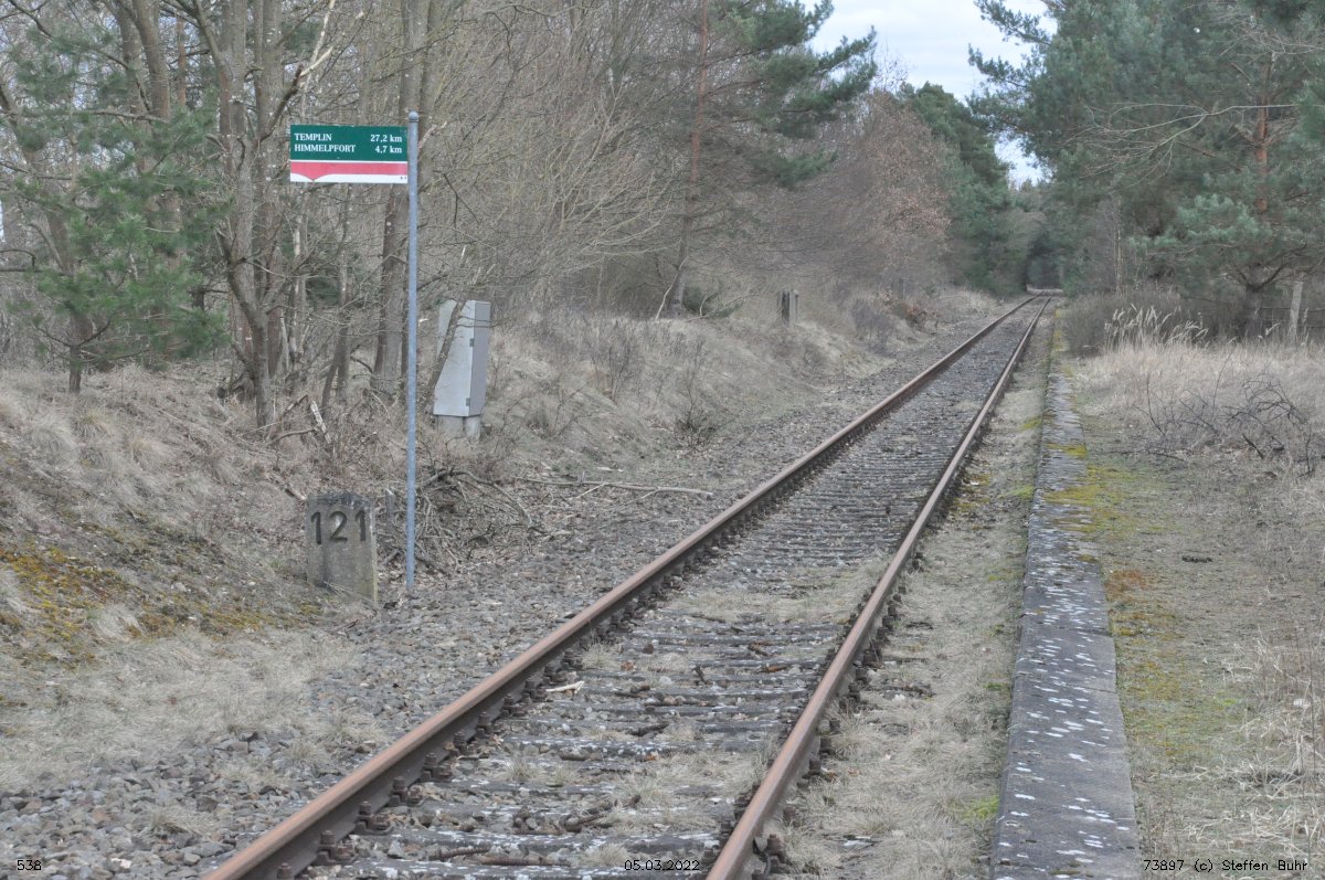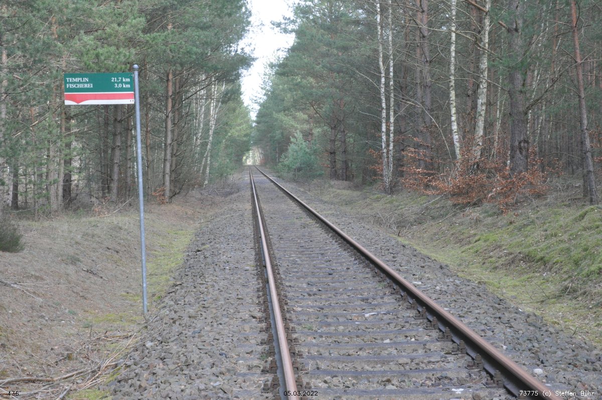 Templin Vorstadt 91,30 km 78,70 der Strecke (Berlin Eberswalder Straße 0,01) - Löwenberg (Mark) 44,25 - Templin 77,32 - Fährkrug 82,30 - Prenzlau 119,42