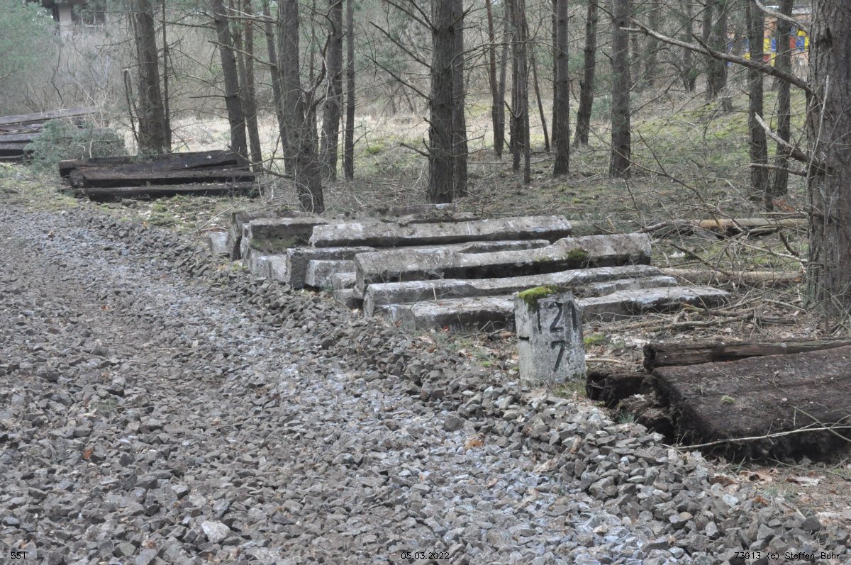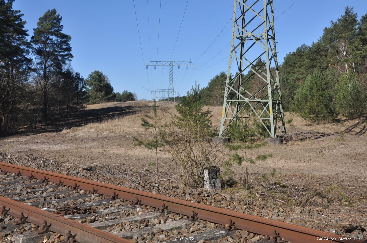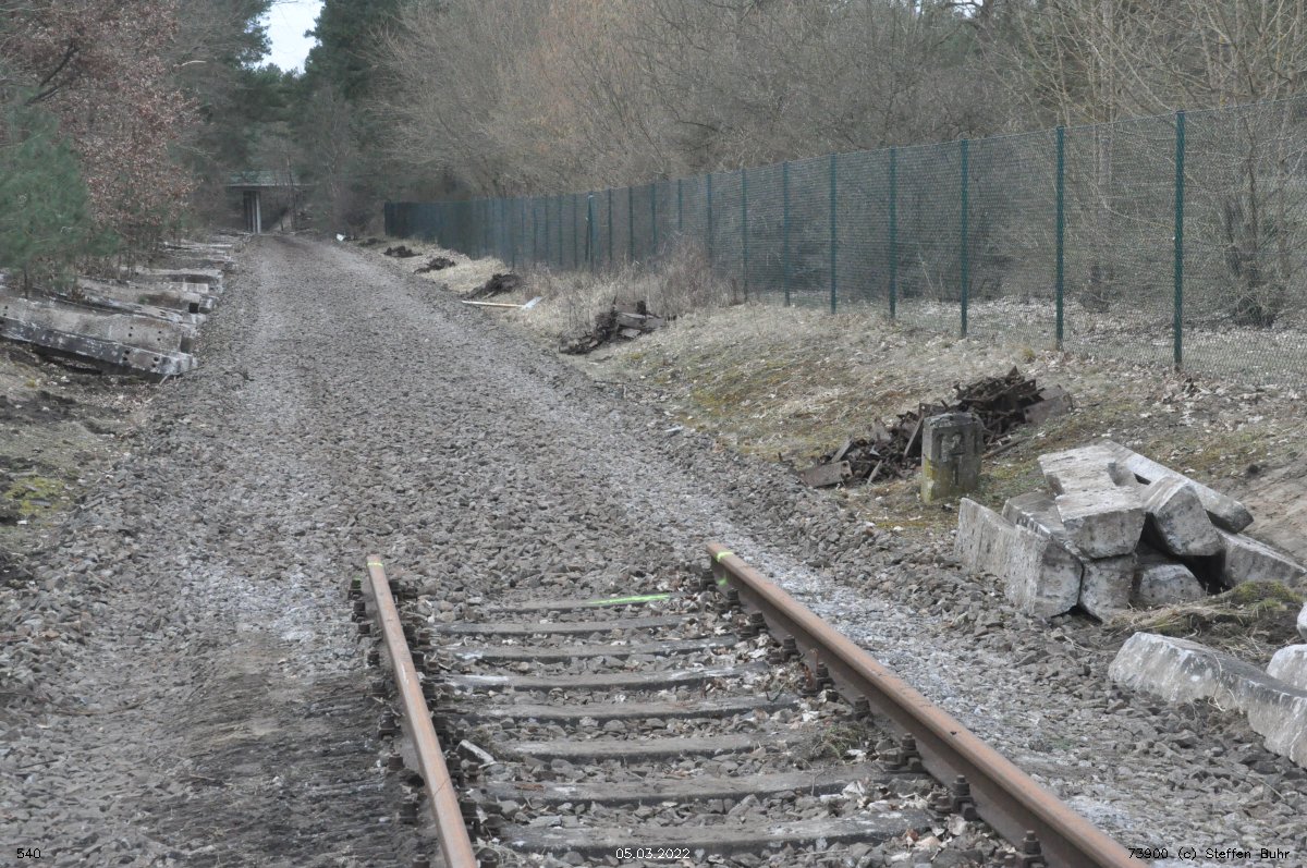 Rechts das Planum des Gleises nach Fürstenberg Nord