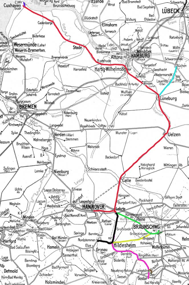 Lüneburg - Hamburg-Harburg - Cuxhaven Stadt mit Abzweig nach