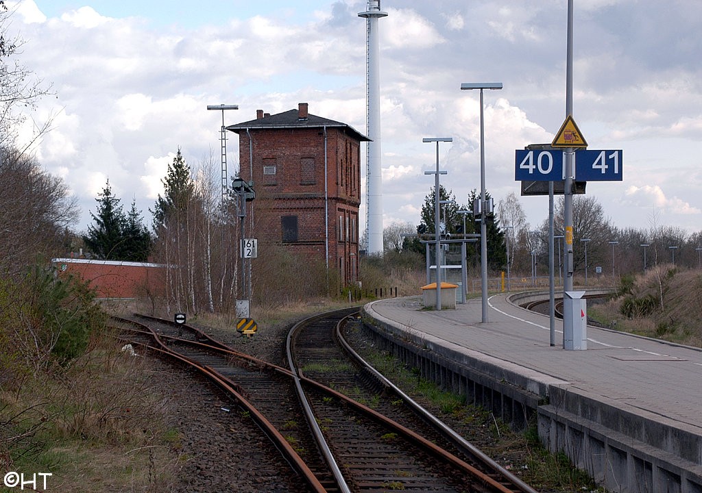 Rechts vom Stellwerk die Strecke (Hannover Hbf 0,0) - Lüneburg 131,56 - Büchen 161,31 mit gleicher Kilometrierung.