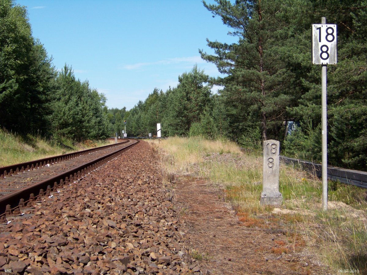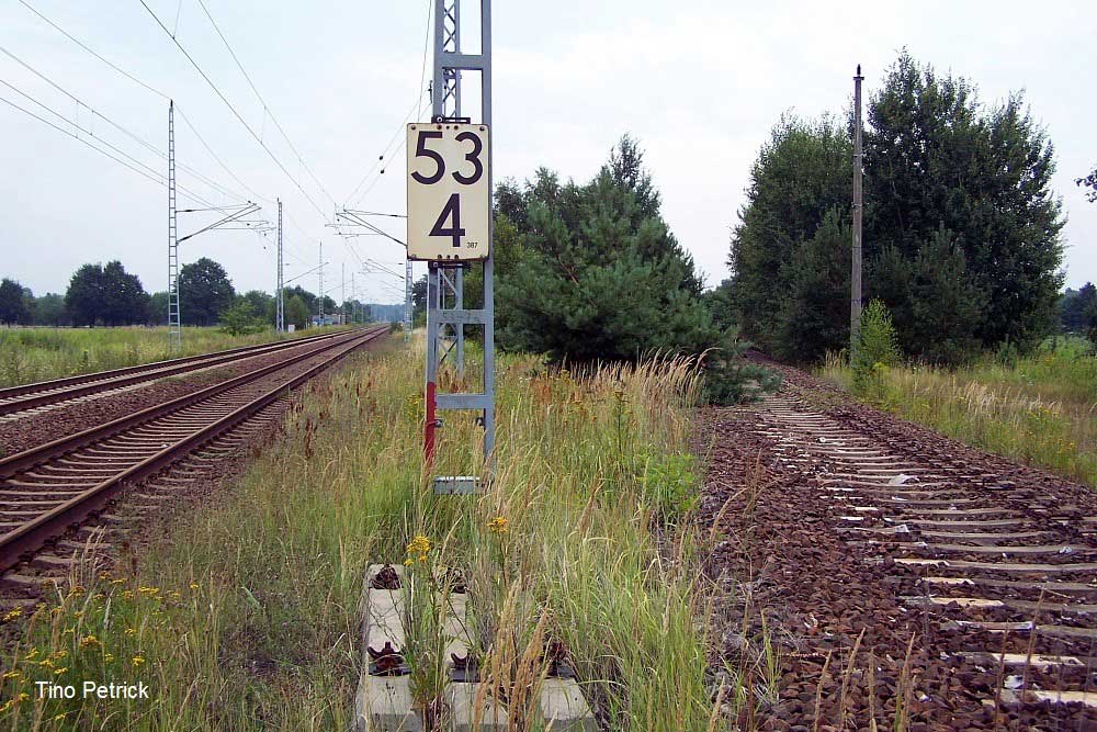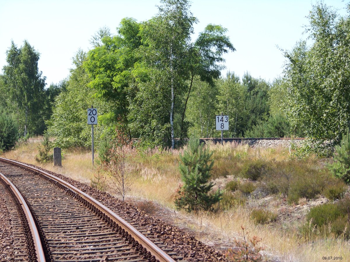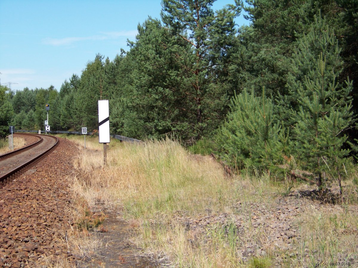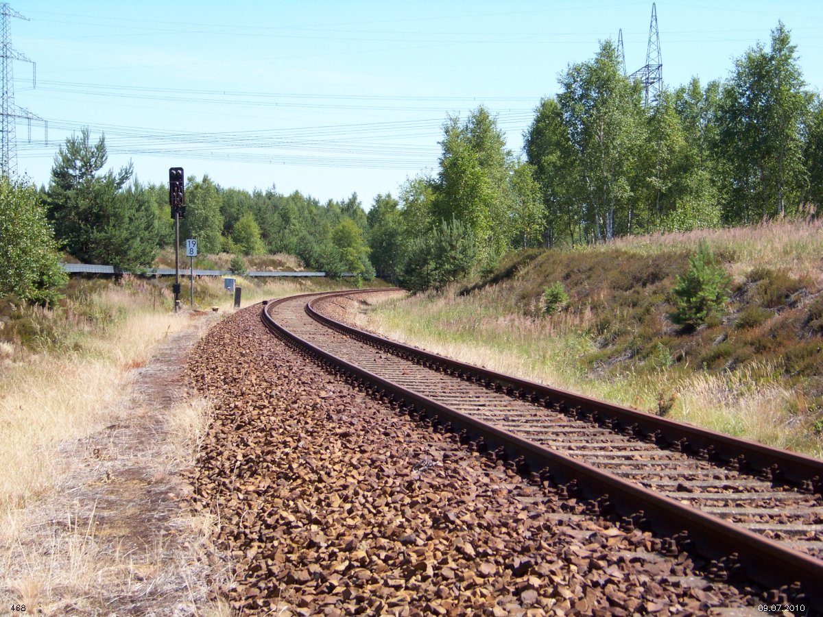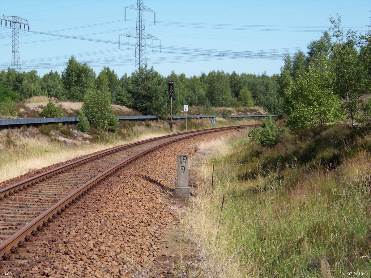 | km 53,00 der Strecke Großenhain Cottb. Bf 0,0 - Senftenberg 45,29 - Cottbus 80,00 - Peitz 94,81 - Streckenunterbrechung - Grunow (Niederlausitz) 129,27 - Frankfurt (Oder) 152,78 |