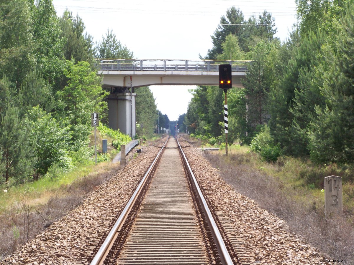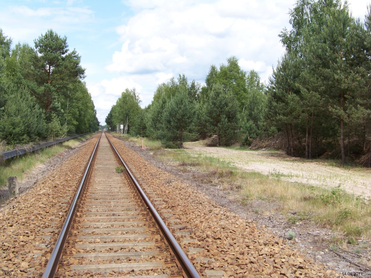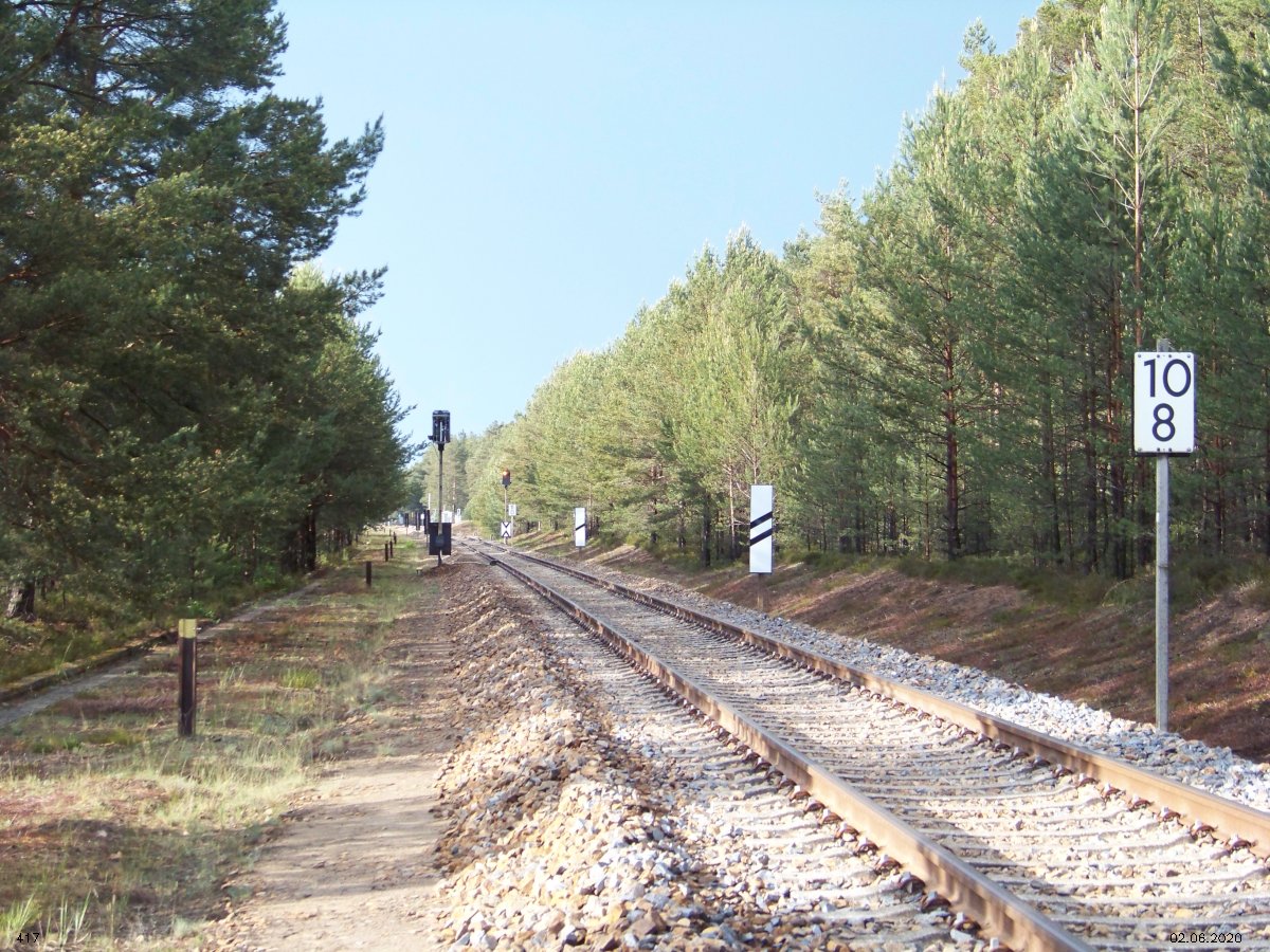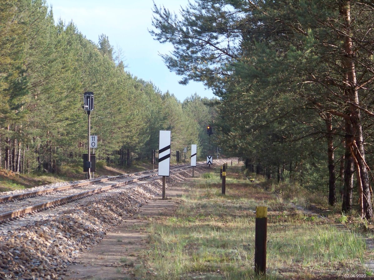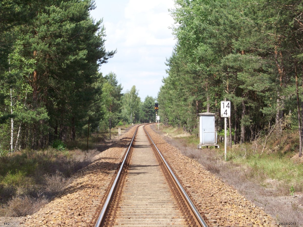 | km 53,00 der Strecke Großenhain Cottb. Bf 0,0 - Senftenberg 45,29 - Cottbus 80,00 - Peitz 94,81 - Streckenunterbrechung - Grunow (Niederlausitz) 129,27 - Frankfurt (Oder) 152,78 |