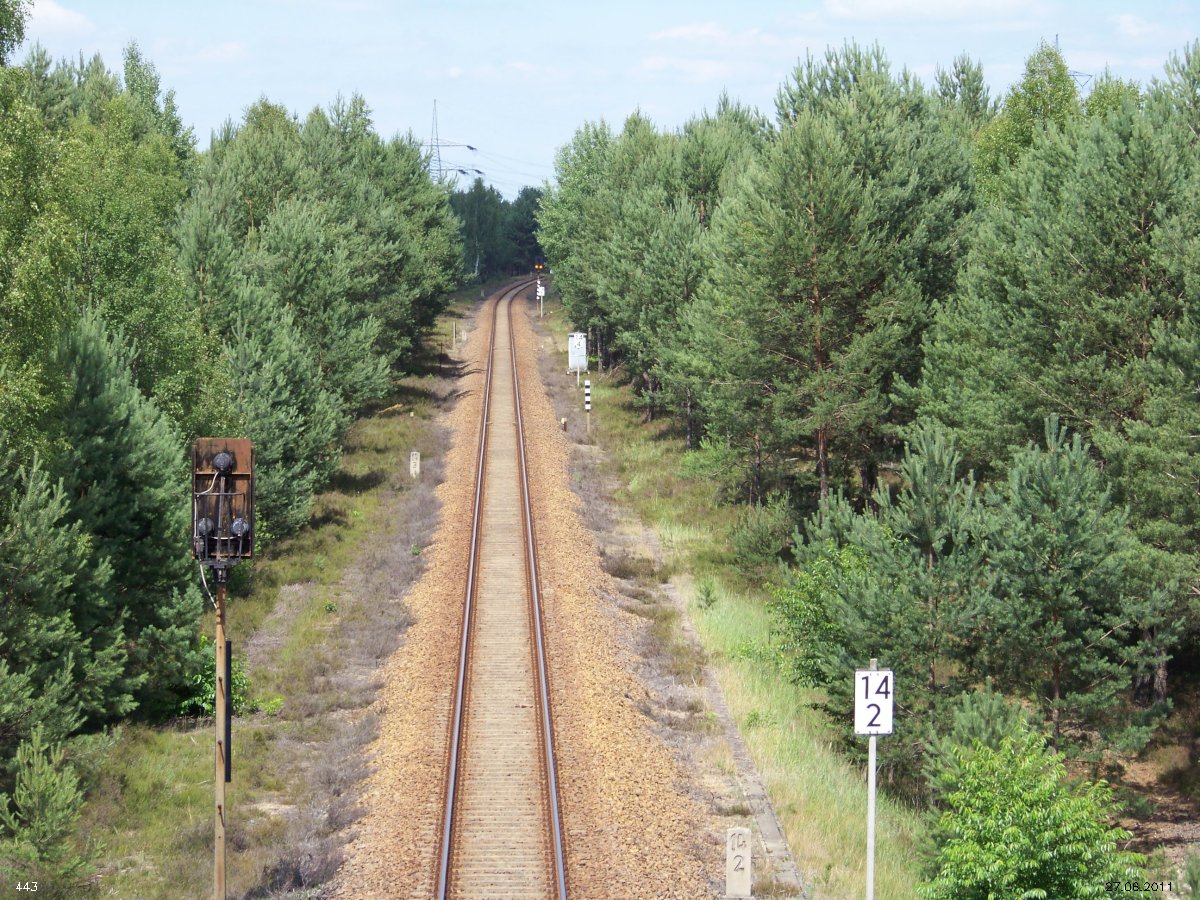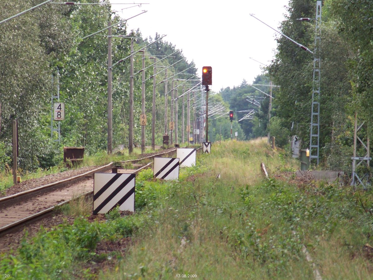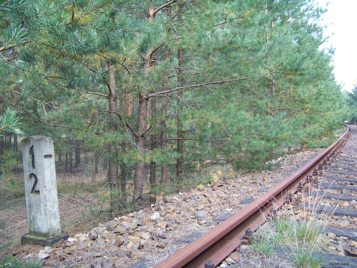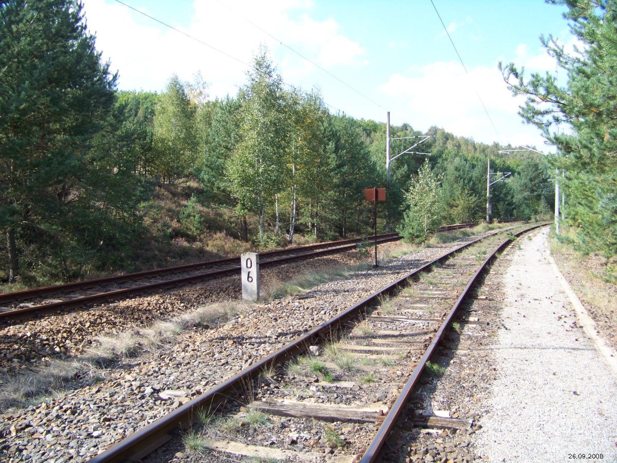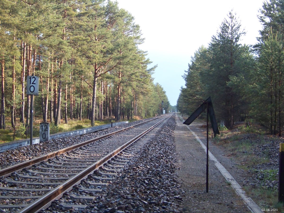 | km 53,00 der Strecke Großenhain Cottb. Bf 0,0 - Senftenberg 45,29 - Cottbus 80,00 - Peitz 94,81 - Streckenunterbrechung - Grunow (Niederlausitz) 129,27 - Frankfurt (Oder) 152,78 |