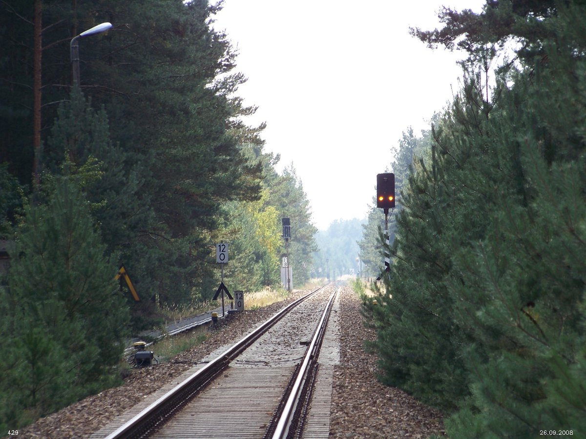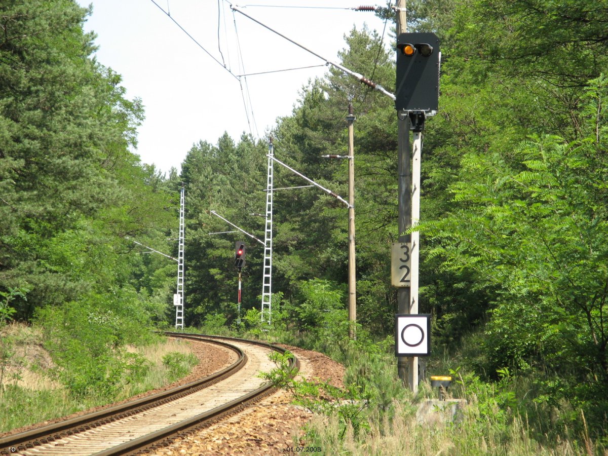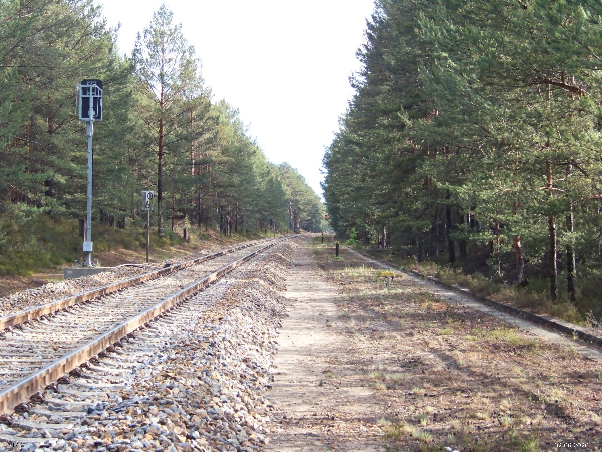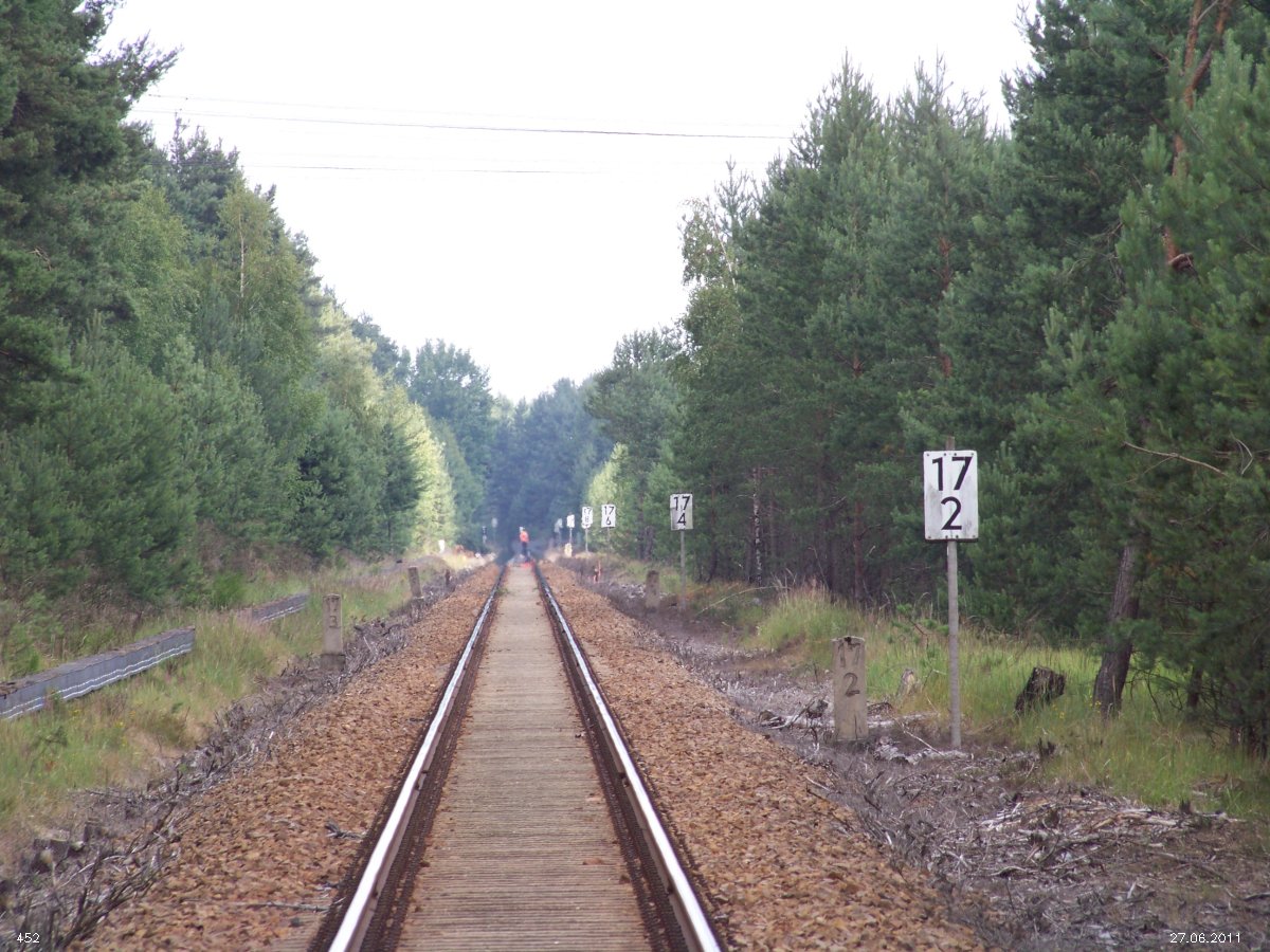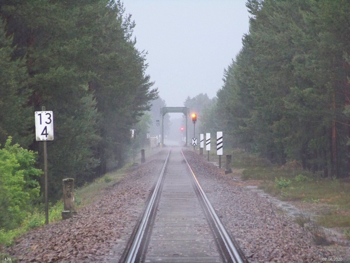 | km 53,00 der Strecke Großenhain Cottb. Bf 0,0 - Senftenberg 45,29 - Cottbus 80,00 - Peitz 94,81 - Streckenunterbrechung - Grunow (Niederlausitz) 129,27 - Frankfurt (Oder) 152,78 |