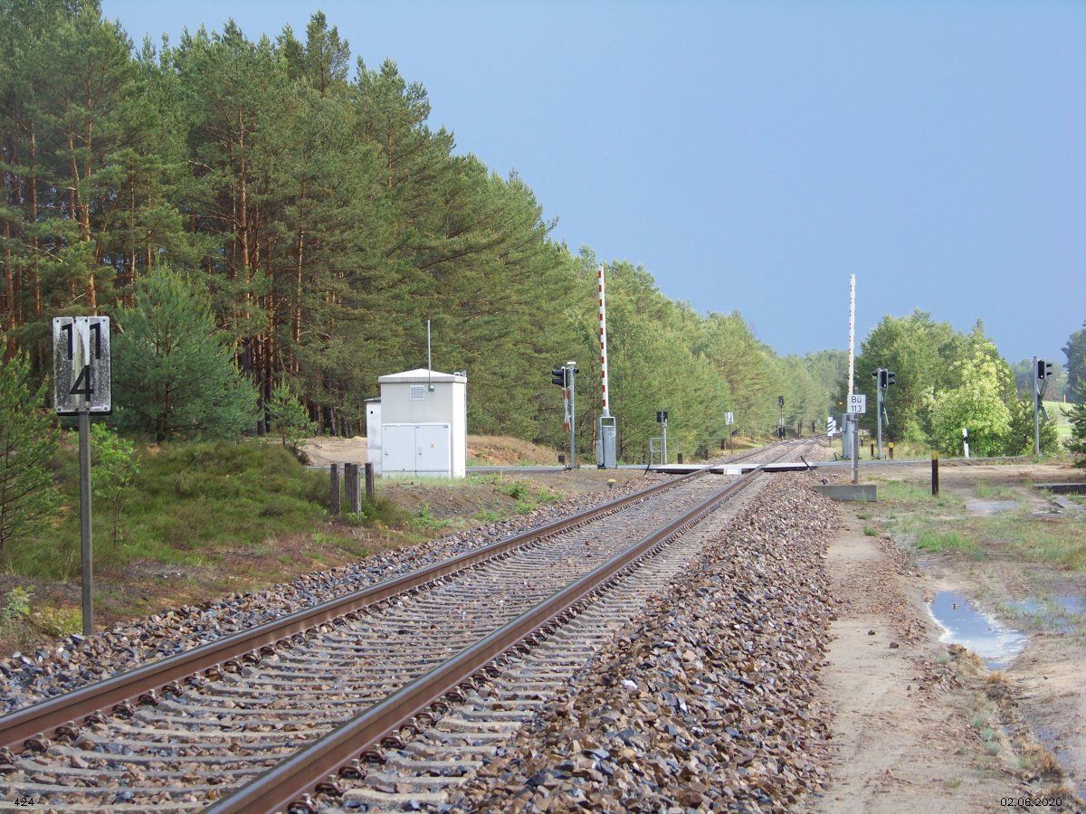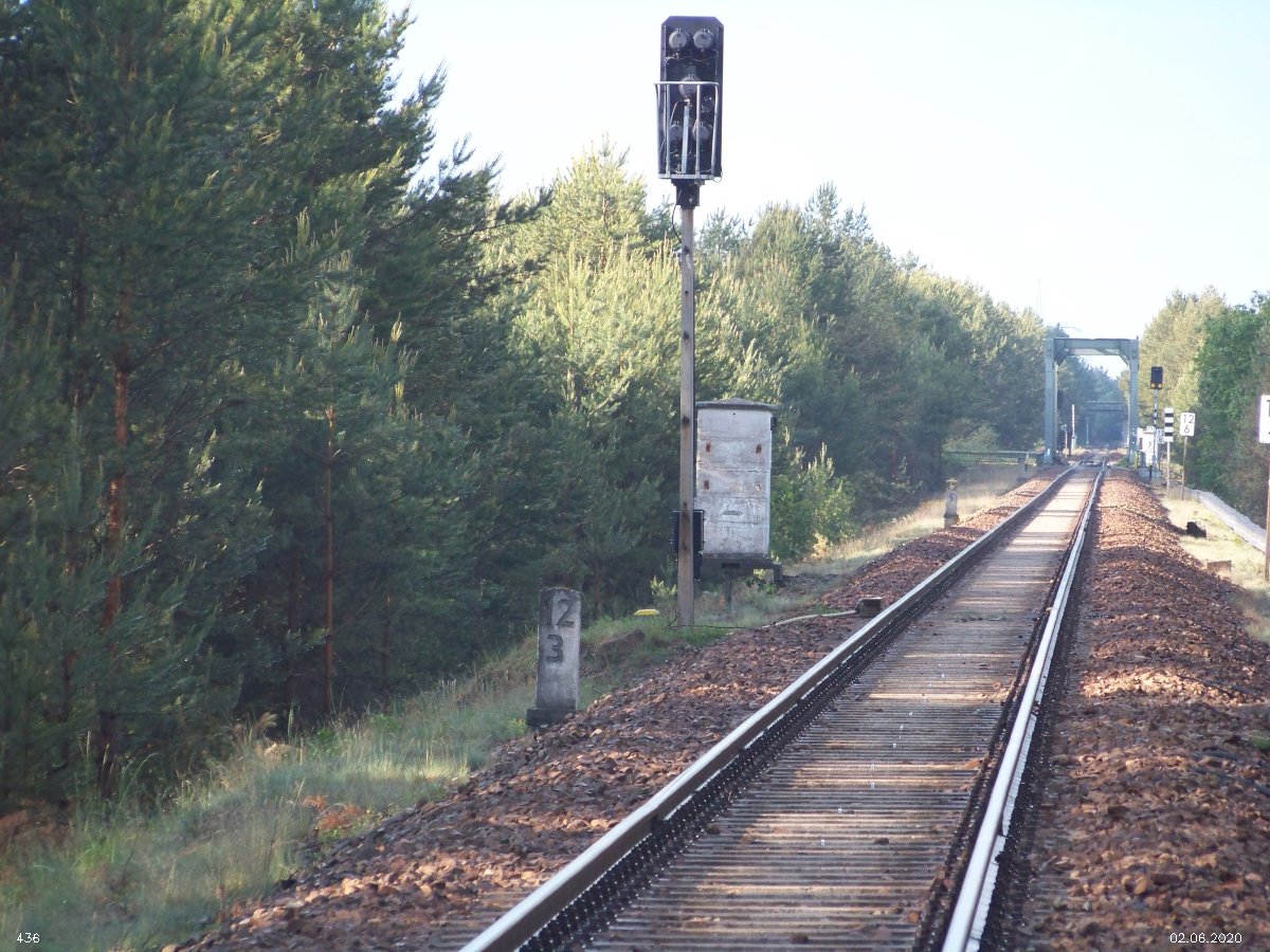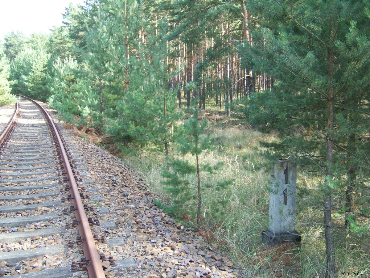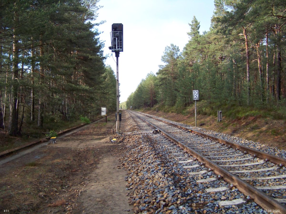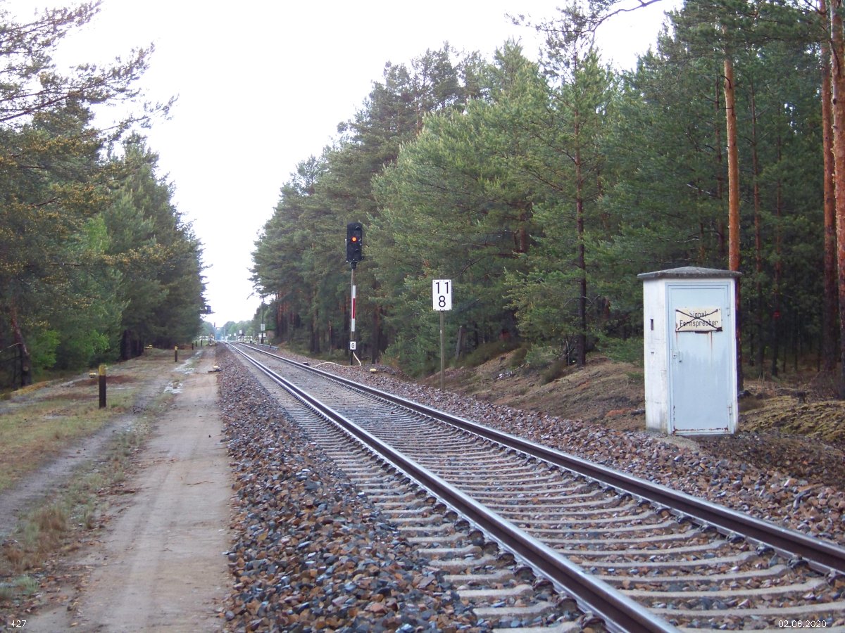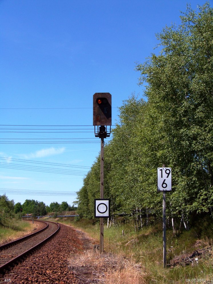 | km 53,00 der Strecke Großenhain Cottb. Bf 0,0 - Senftenberg 45,29 - Cottbus 80,00 - Peitz 94,81 - Streckenunterbrechung - Grunow (Niederlausitz) 129,27 - Frankfurt (Oder) 152,78 |