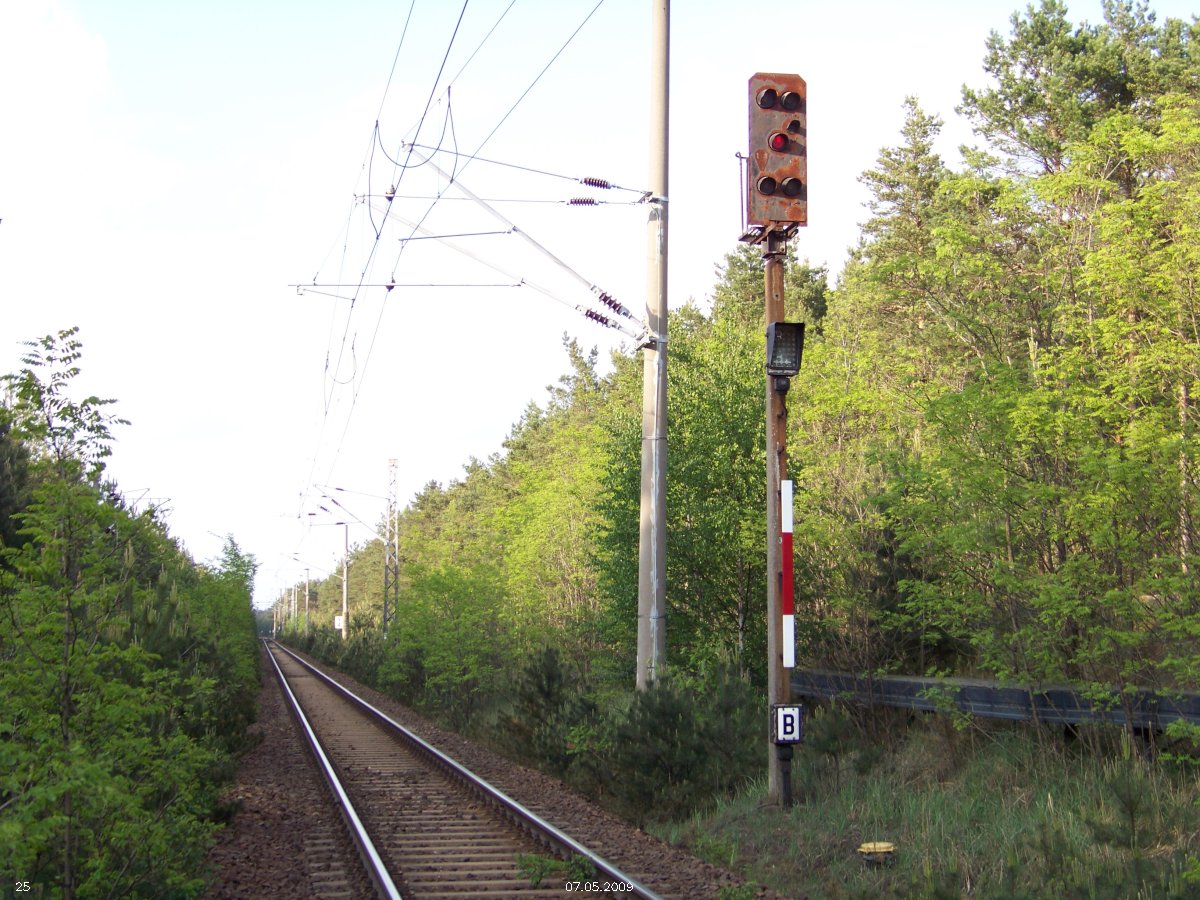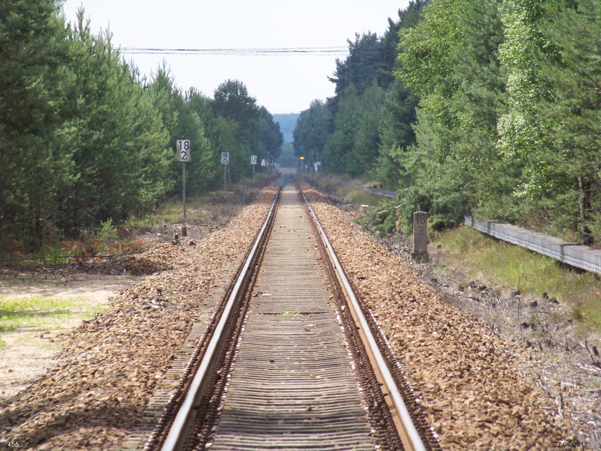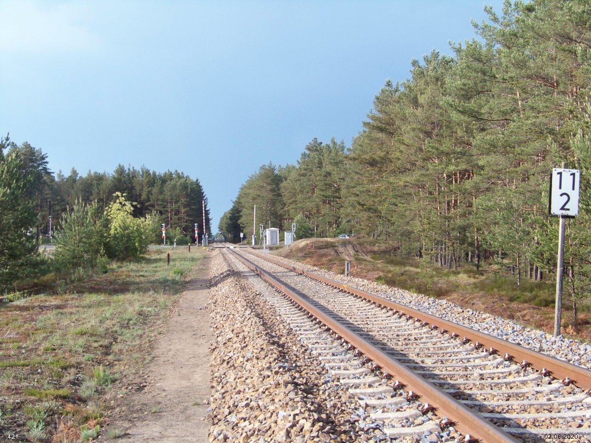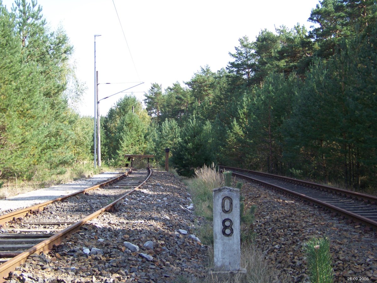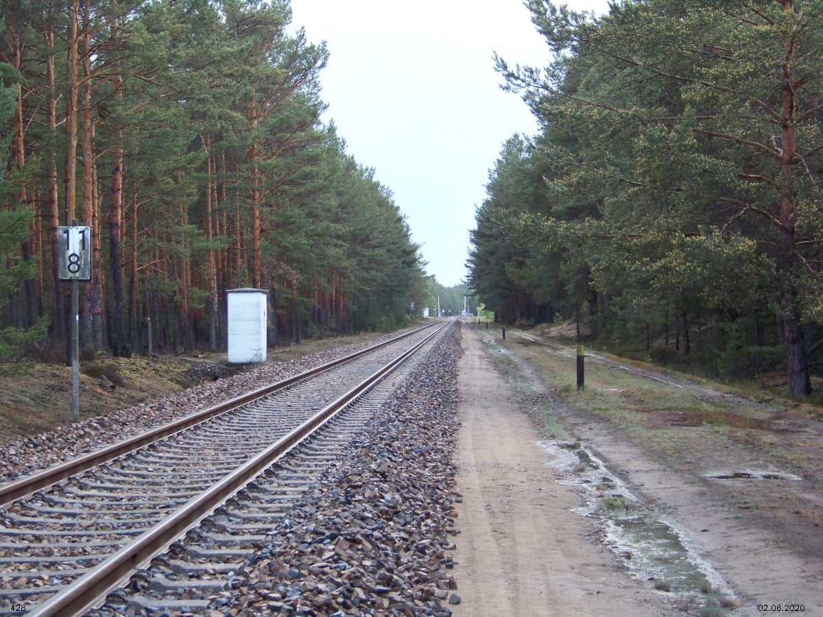 | km 53,00 der Strecke Großenhain Cottb. Bf 0,0 - Senftenberg 45,29 - Cottbus 80,00 - Peitz 94,81 - Streckenunterbrechung - Grunow (Niederlausitz) 129,27 - Frankfurt (Oder) 152,78 |