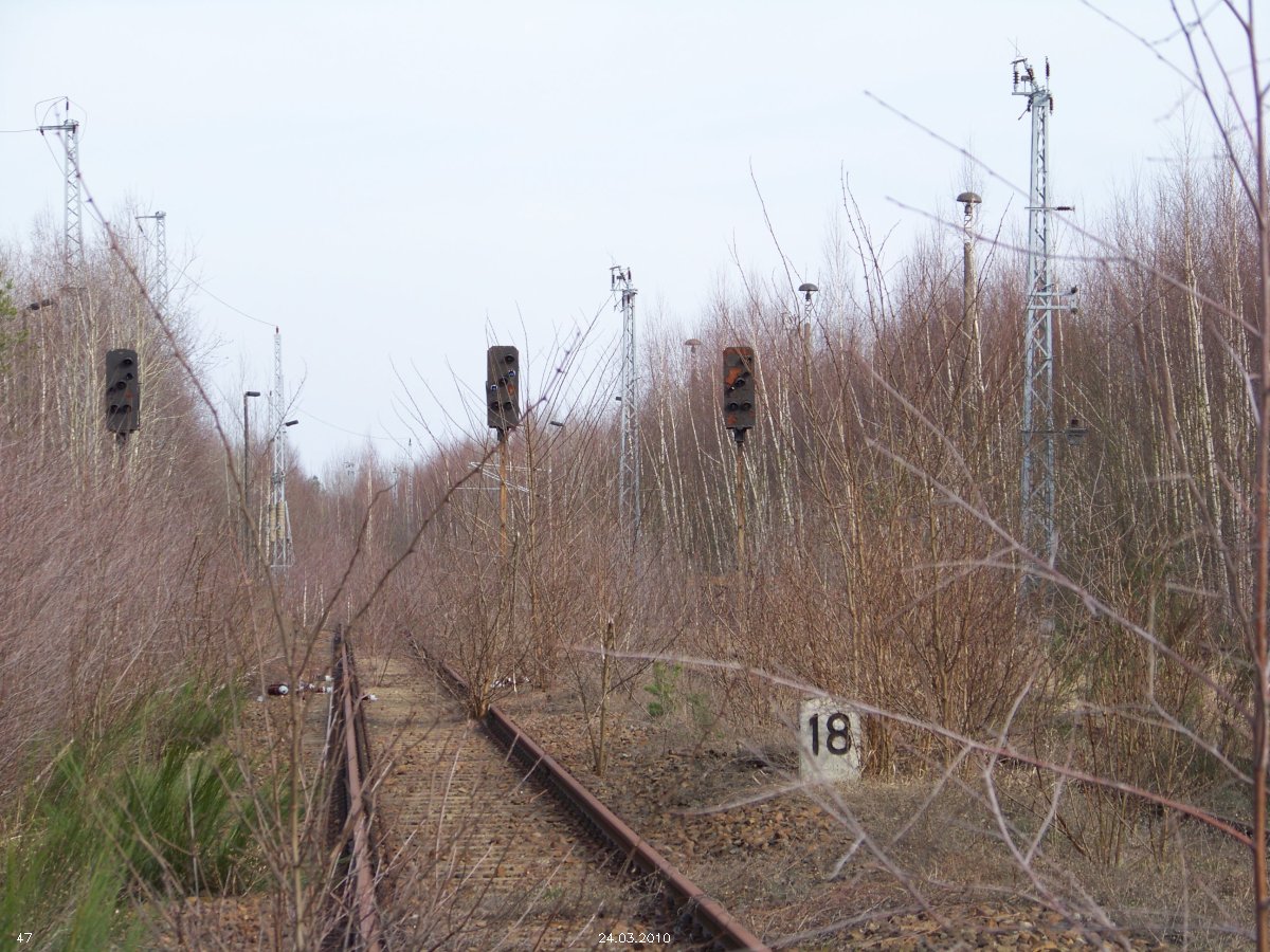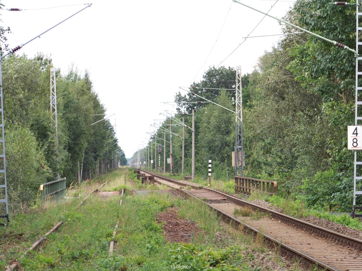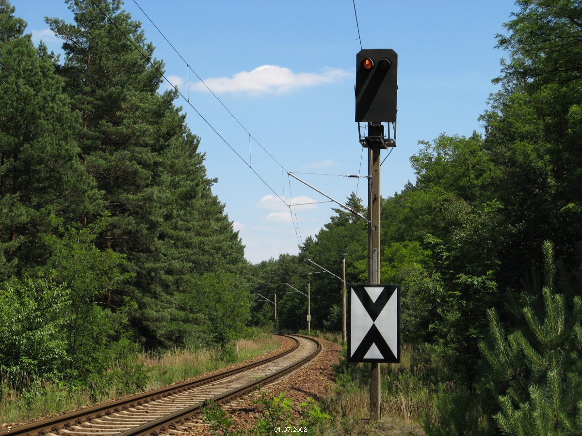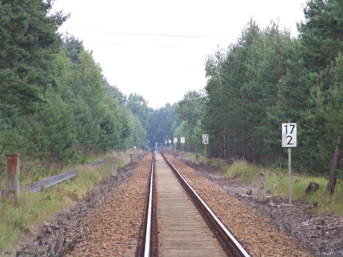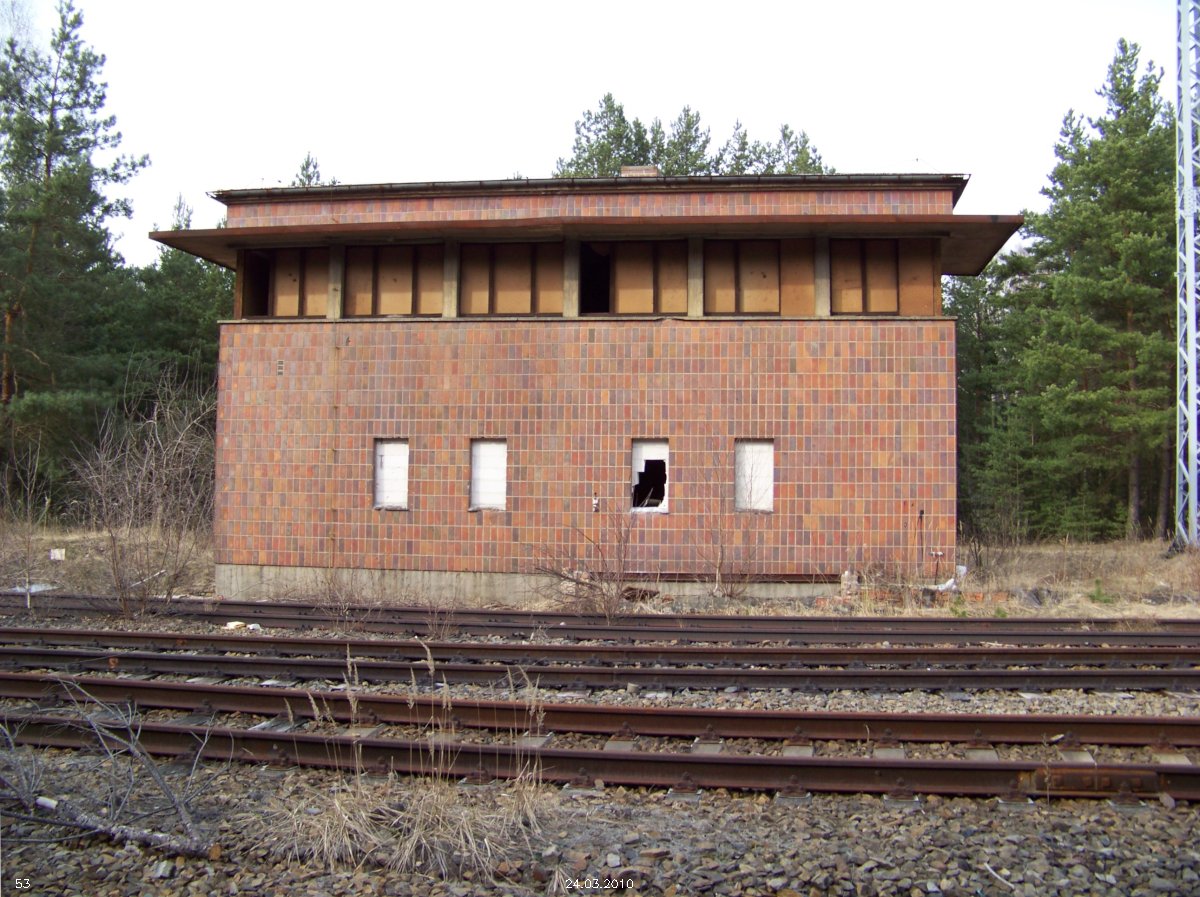 | km 53,00 der Strecke Großenhain Cottb. Bf 0,0 - Senftenberg 45,29 - Cottbus 80,00 - Peitz 94,81 - Streckenunterbrechung - Grunow (Niederlausitz) 129,27 - Frankfurt (Oder) 152,78 |