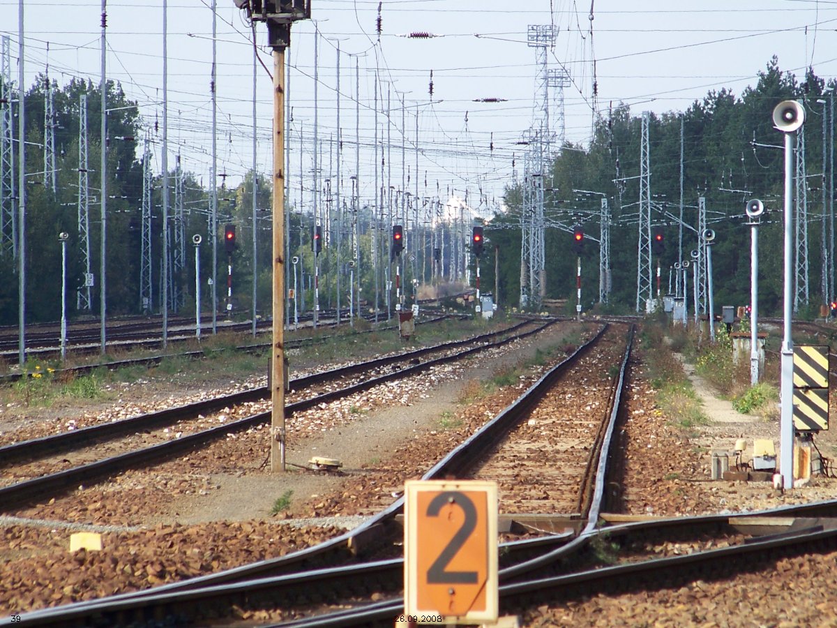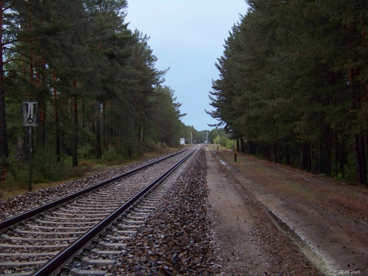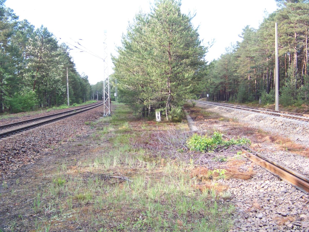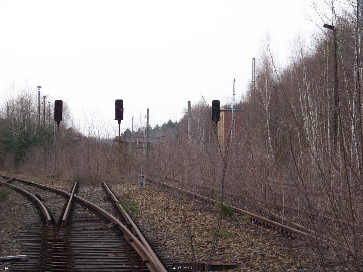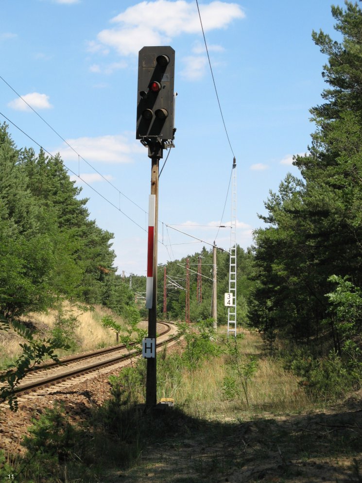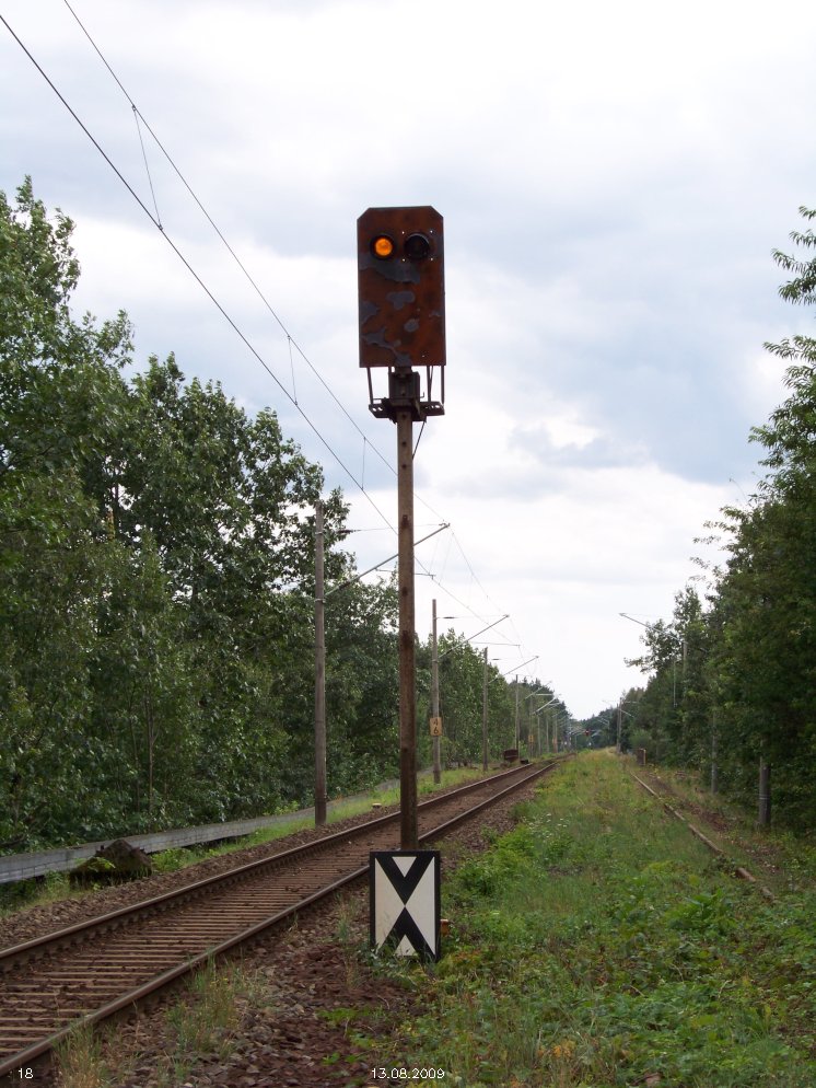 | km 53,00 der Strecke Großenhain Cottb. Bf 0,0 - Senftenberg 45,29 - Cottbus 80,00 - Peitz 94,81 - Streckenunterbrechung - Grunow (Niederlausitz) 129,27 - Frankfurt (Oder) 152,78 |