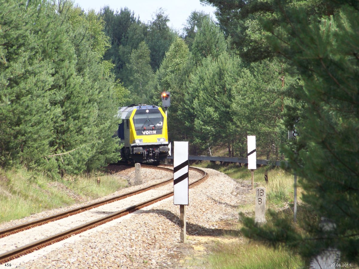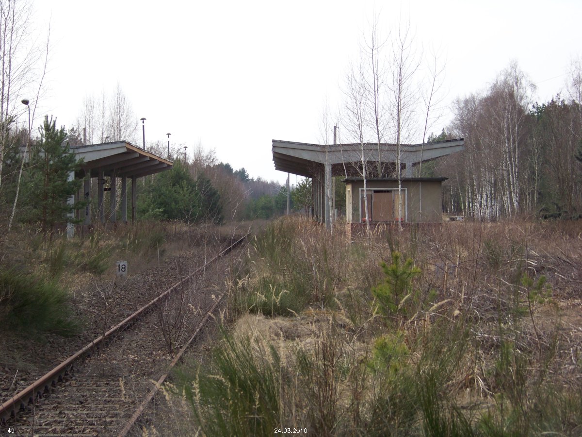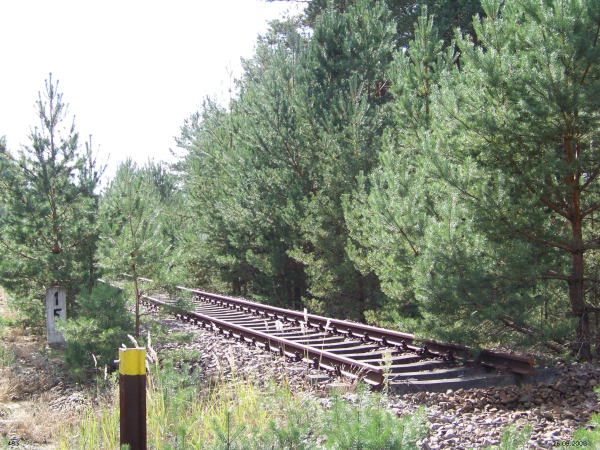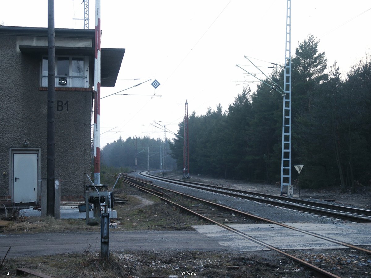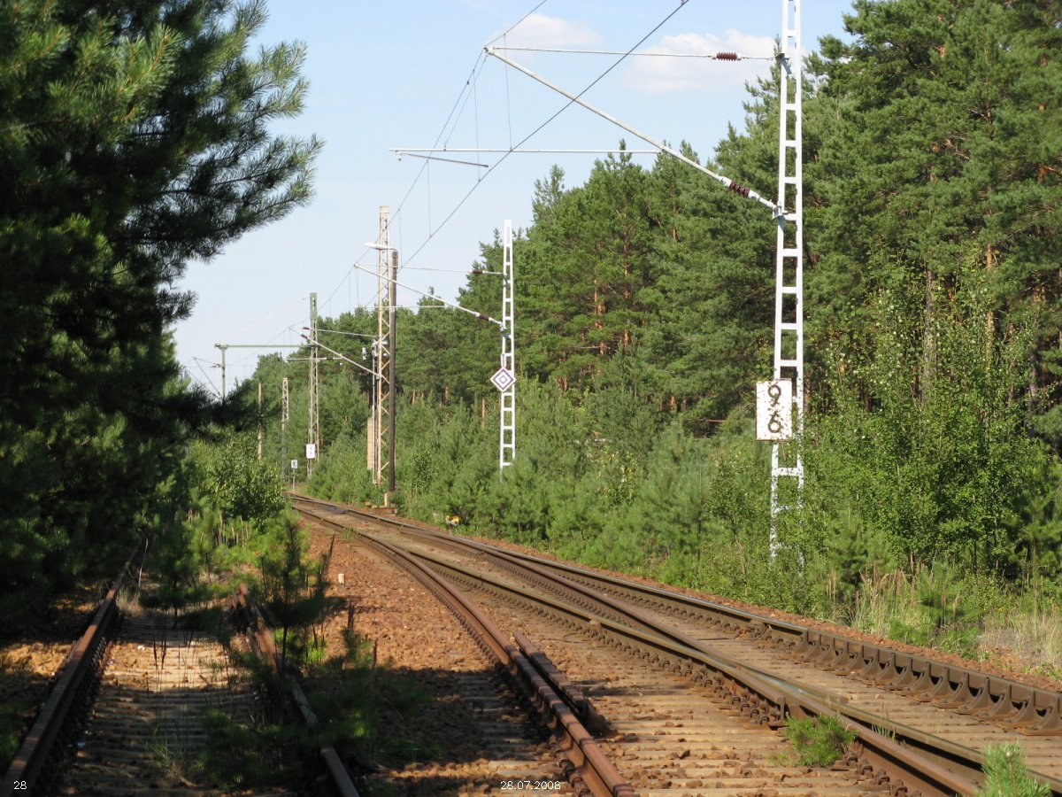 | km 53,00 der Strecke Großenhain Cottb. Bf 0,0 - Senftenberg 45,29 - Cottbus 80,00 - Peitz 94,81 - Streckenunterbrechung - Grunow (Niederlausitz) 129,27 - Frankfurt (Oder) 152,78 |