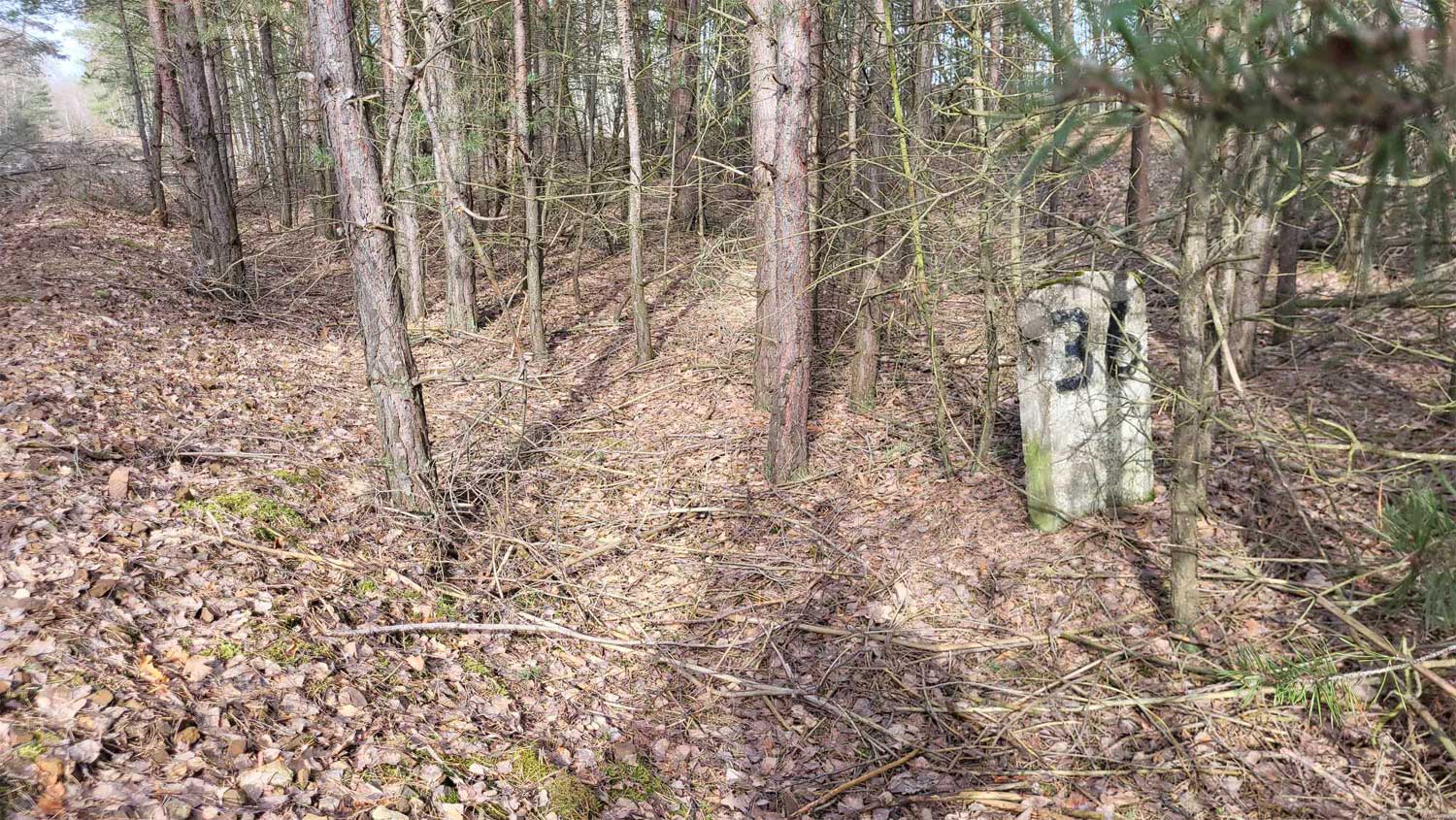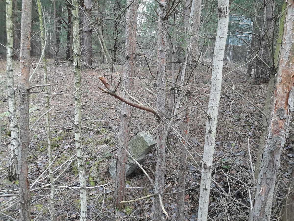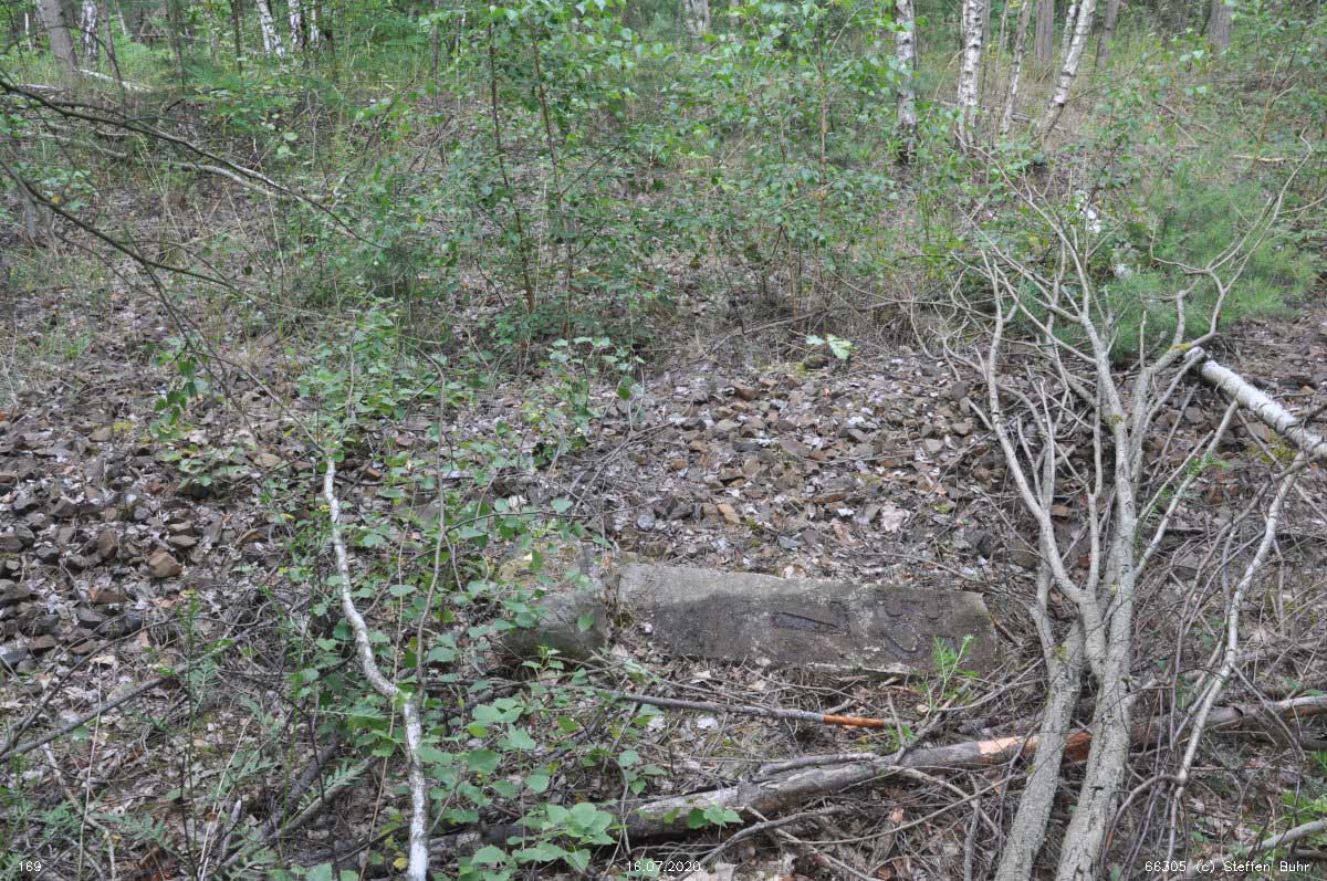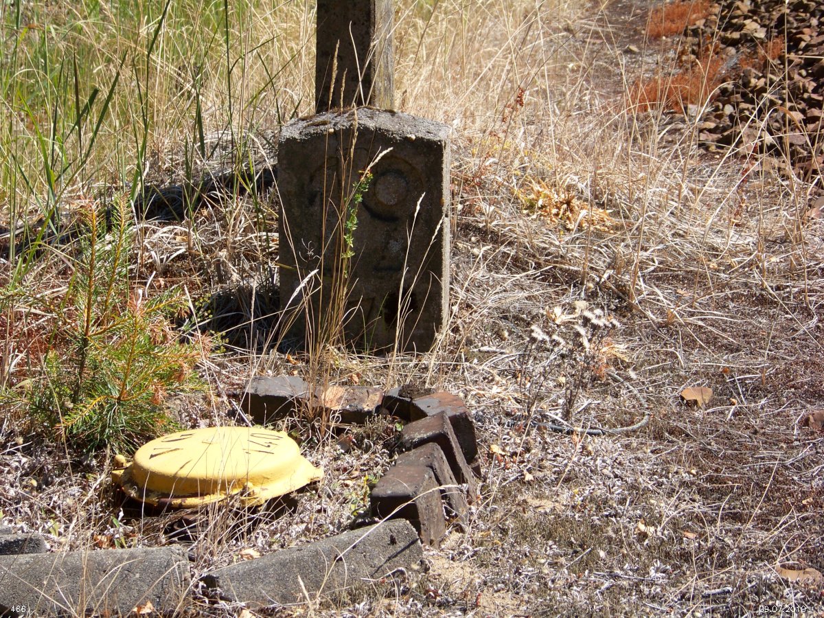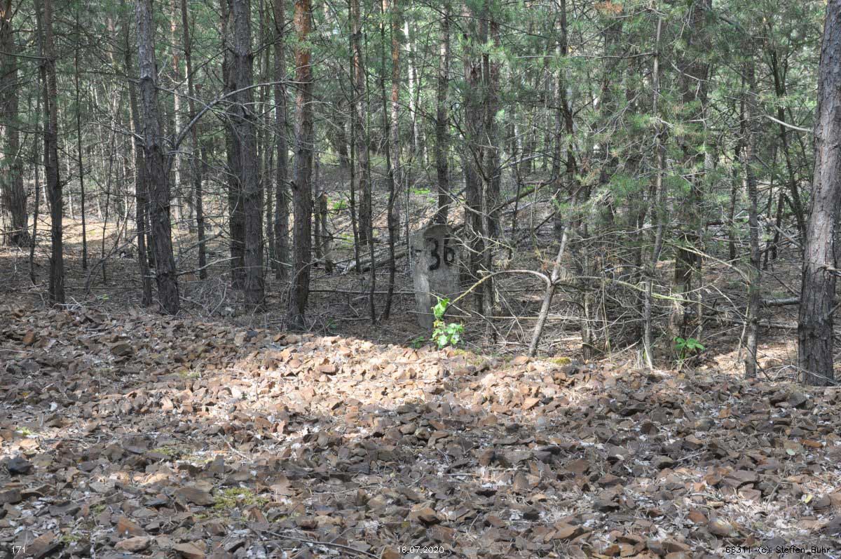 km 19,8 (Tafel und Stein)) und km 19,9 (Stein) zwischen Abzw Graustein Süd und Graustein - Blick Richtung Abzw Spreewitz Süd - Knappenrode
