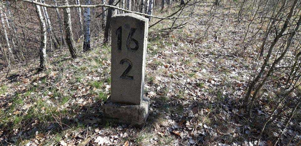 km 20,0 (Tafel) und km 20,2 (Stein und Tafel) in Graustein - Blick Richtung Abzw Spreewitz Süd - Knappenrode