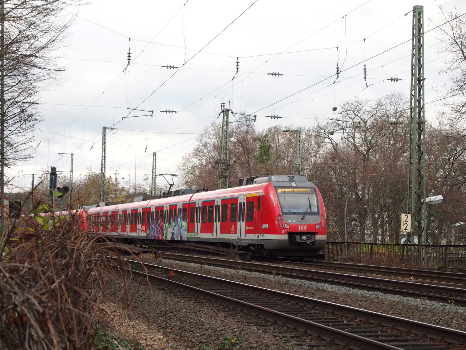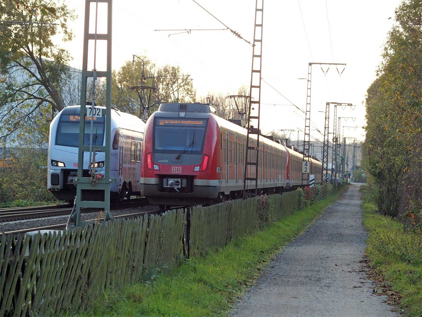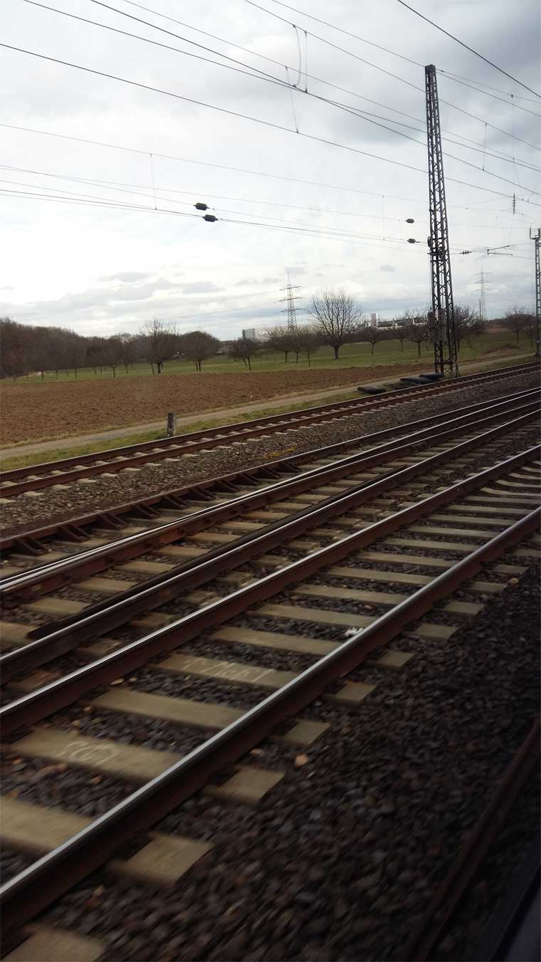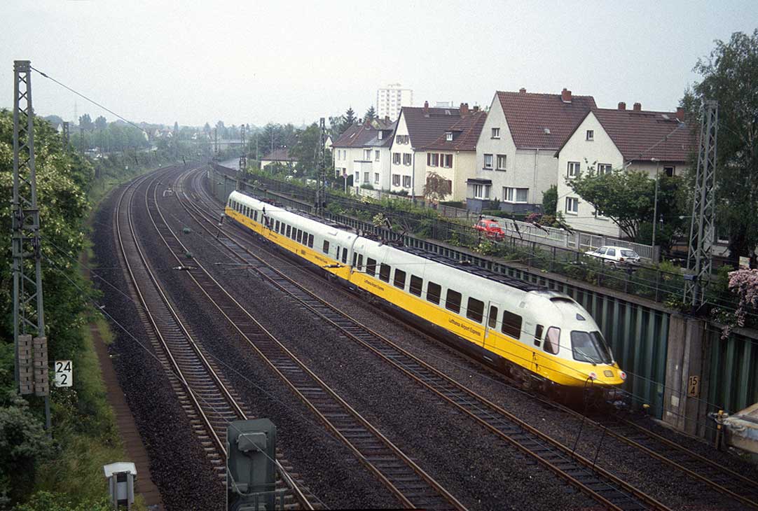 km 32,8 (links neben dem Zug) in Frankfurt (Main)-Niederrad - Blick Richtung Frankfurt (Main) Hbf