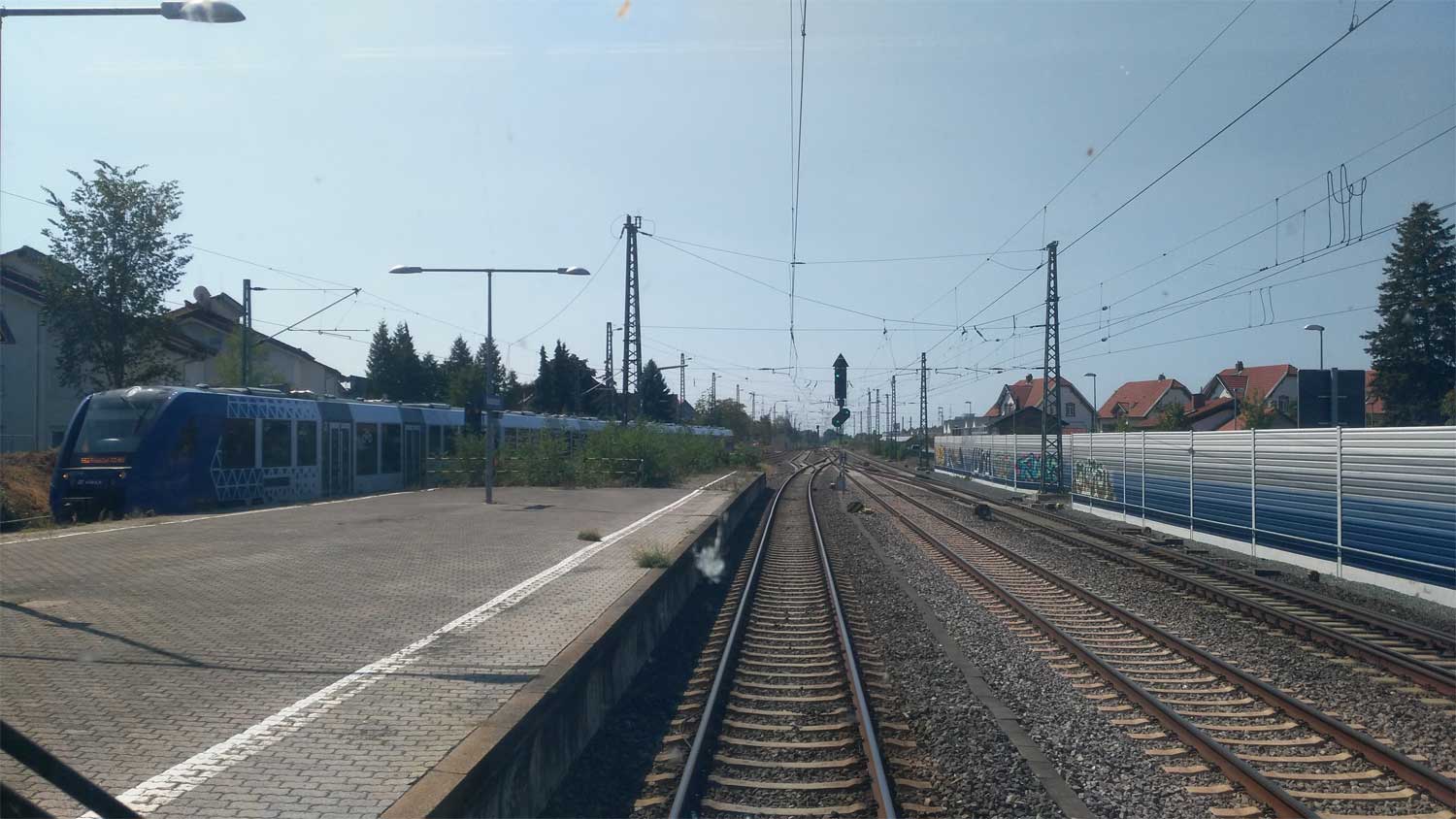 Der Zug befindet sich auf dem Gegenrichtungsgleis der Strecke nach Frankfurt (Main) Hbf