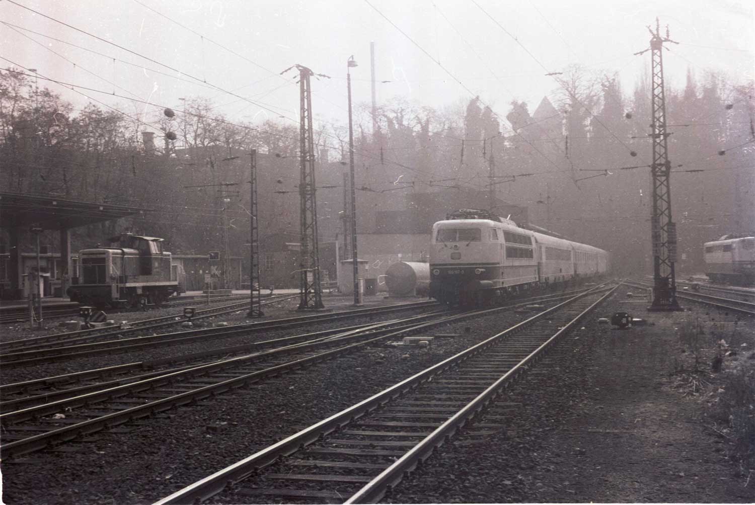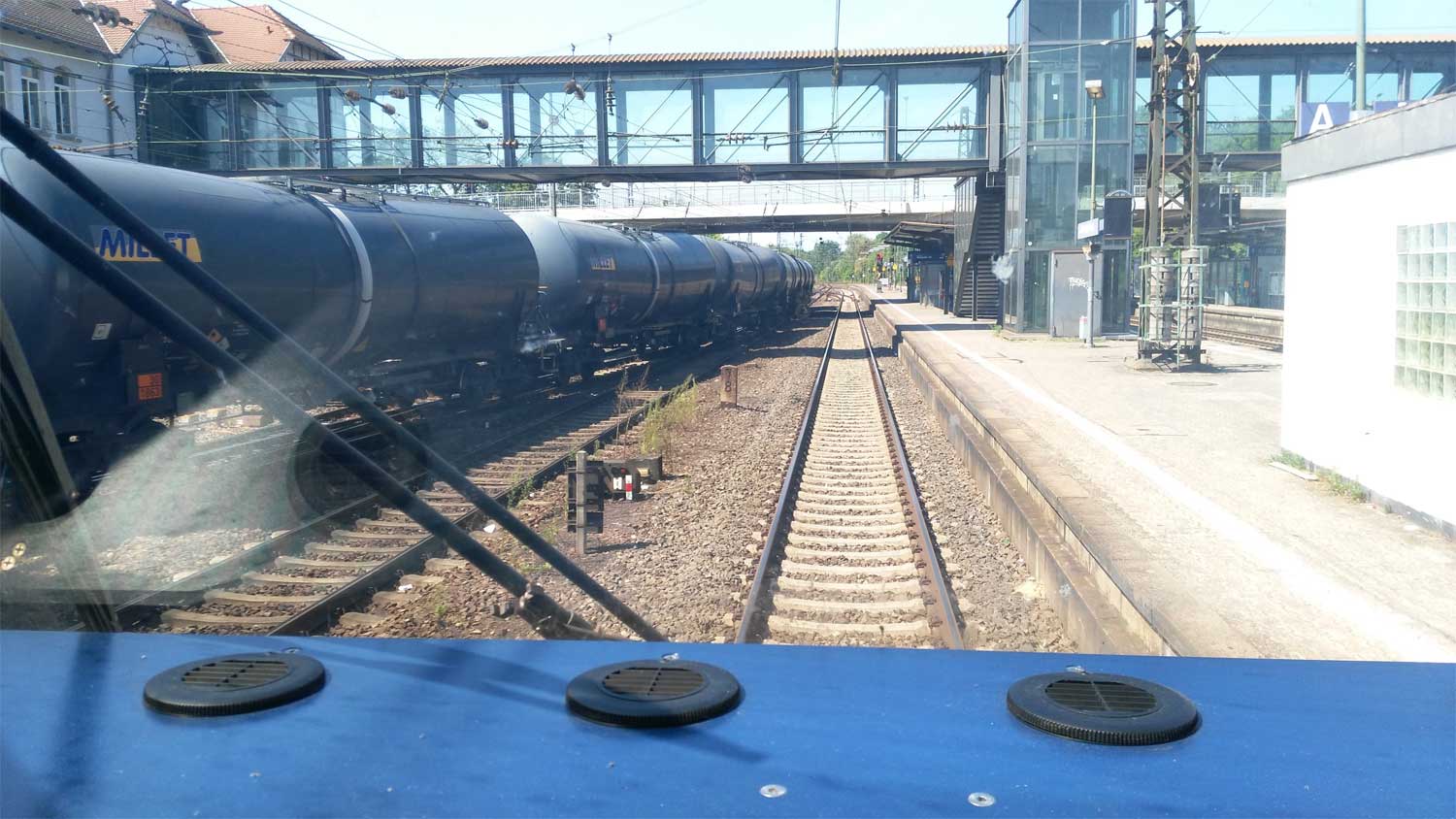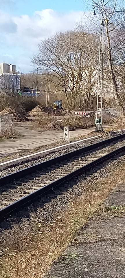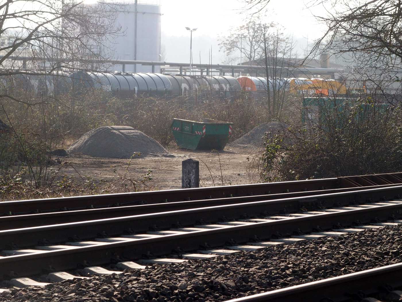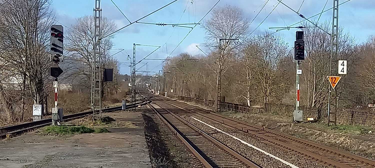 Ganz rechts das Gleis der Strecke