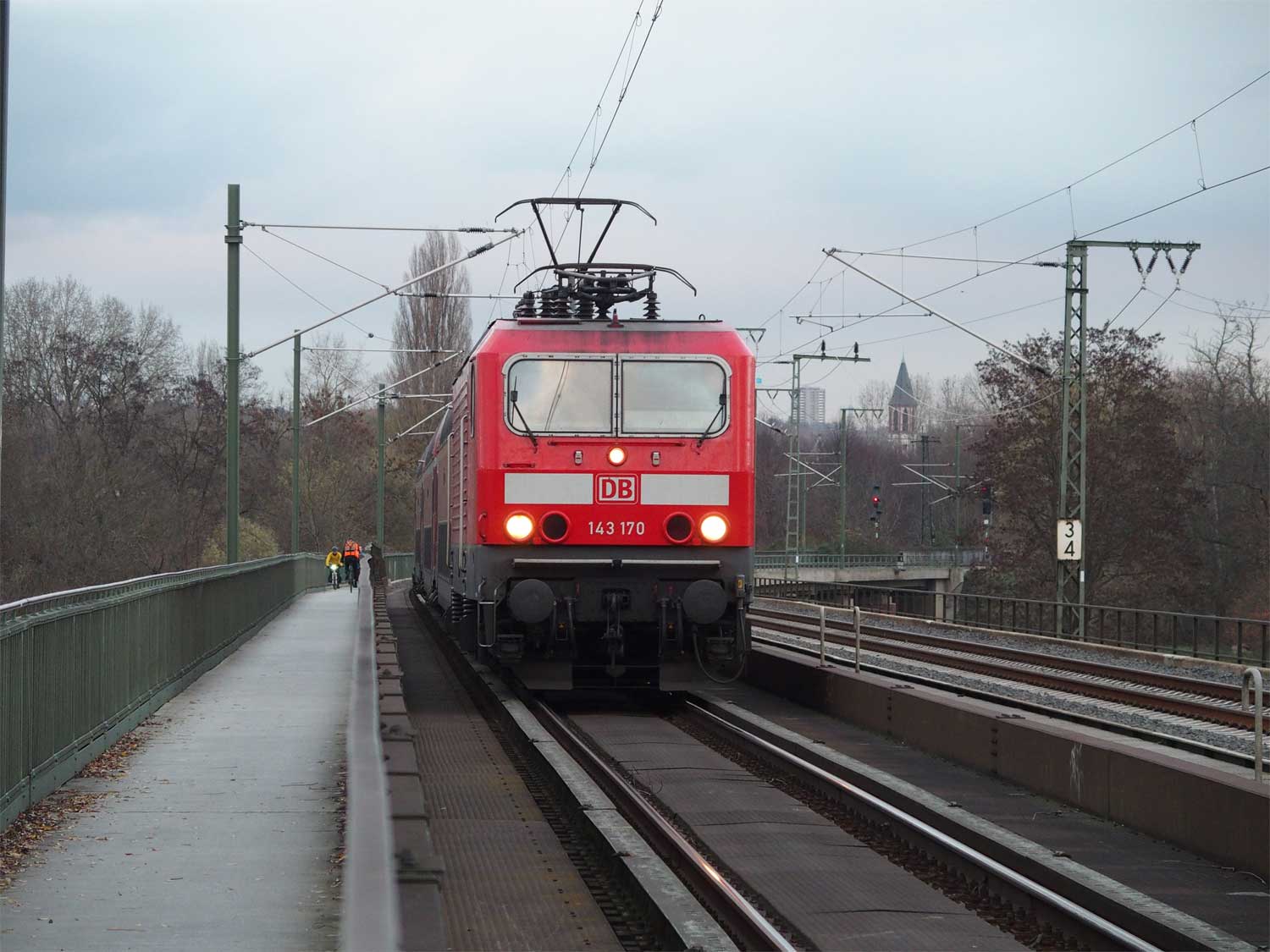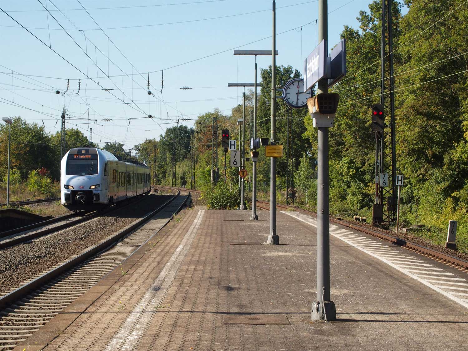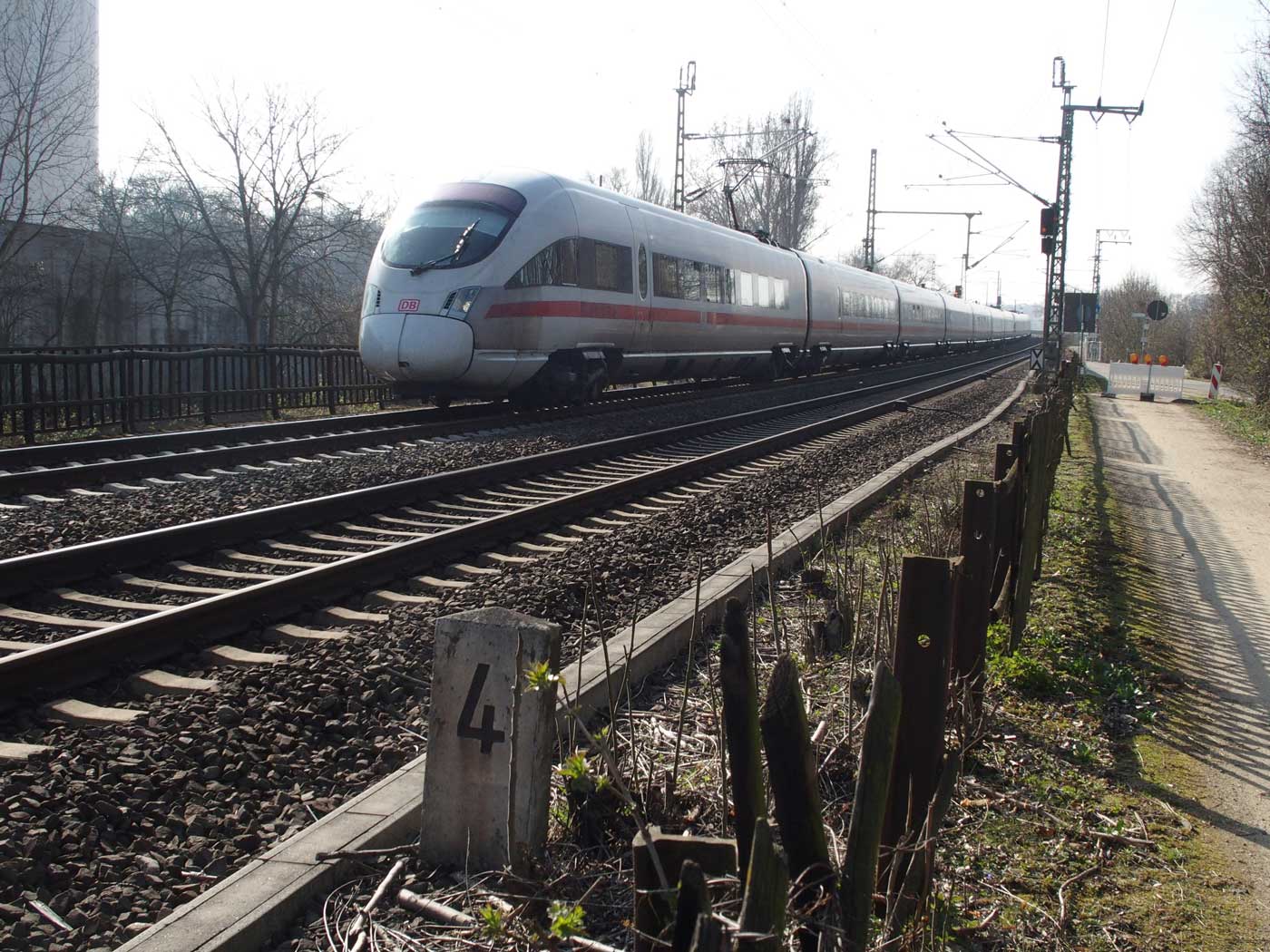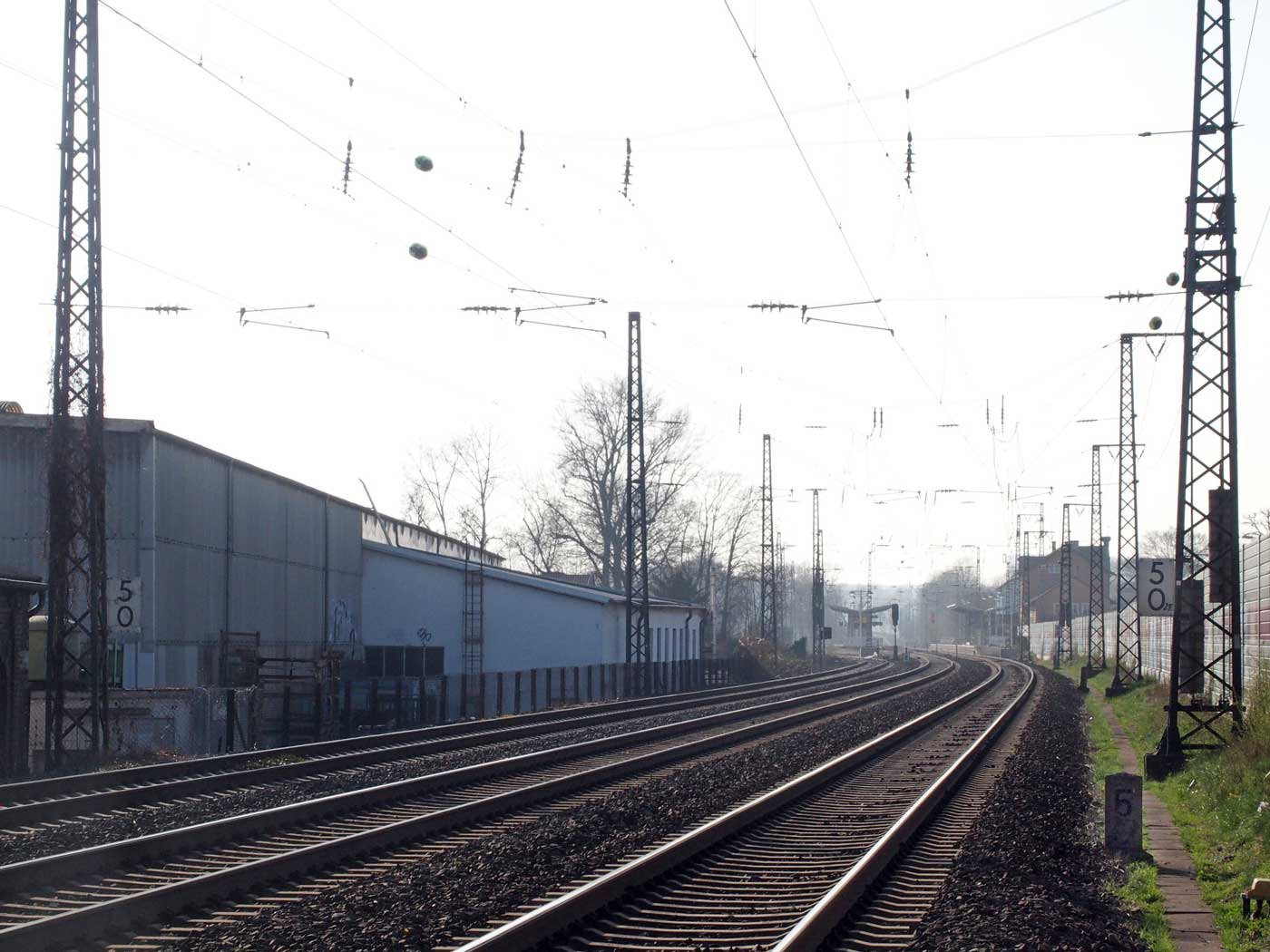 km 3,6 (versteckt hinter dem Oberleitungsmast) gehört zur Strecke