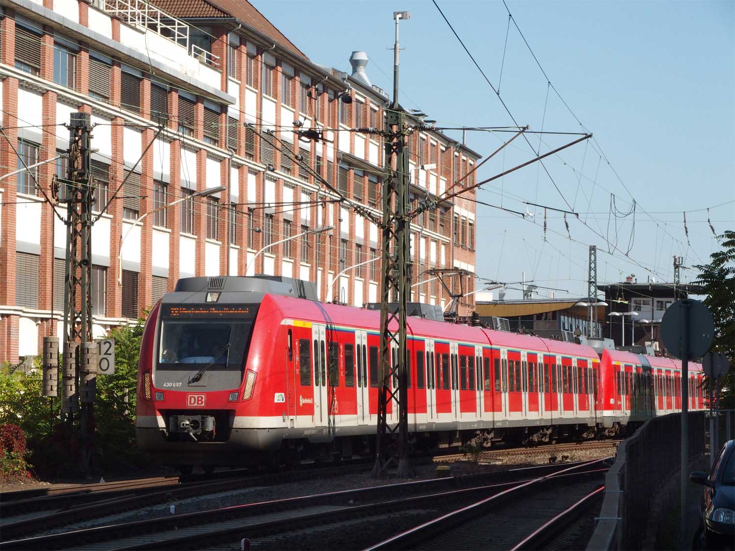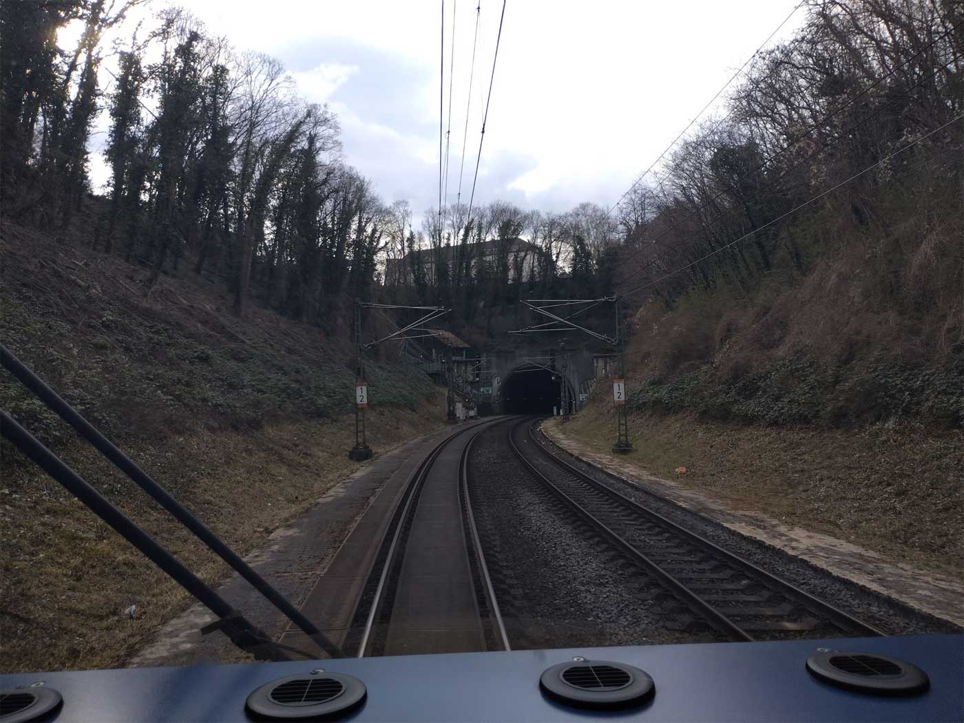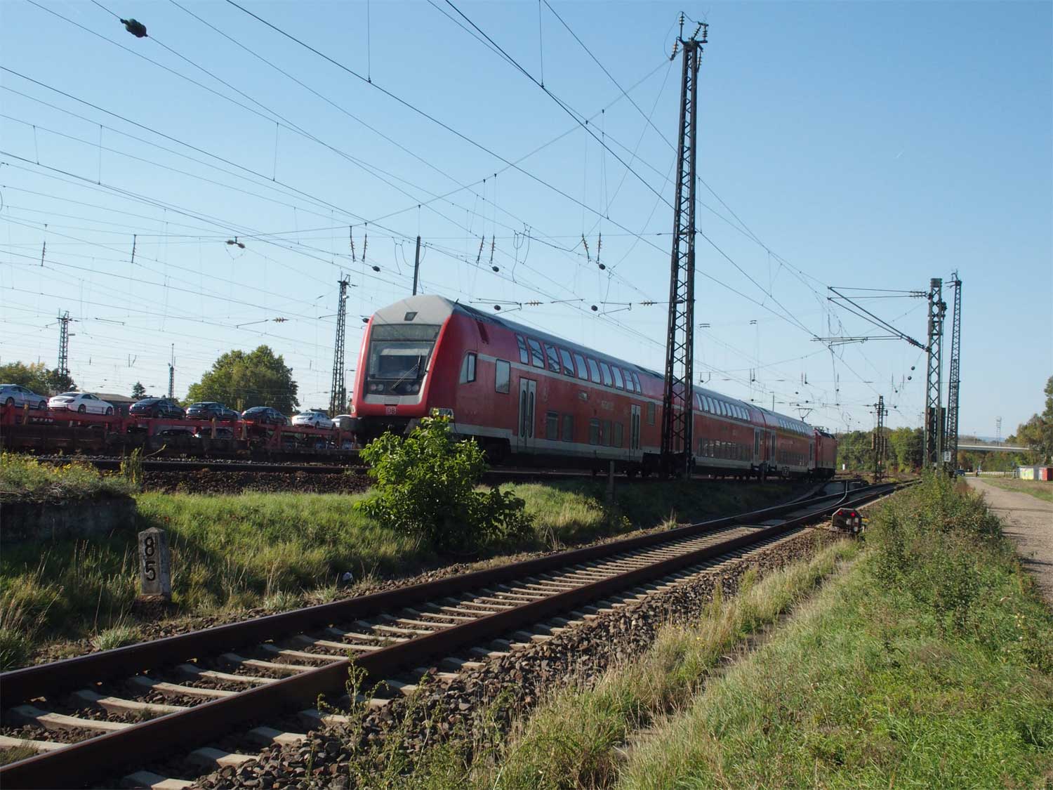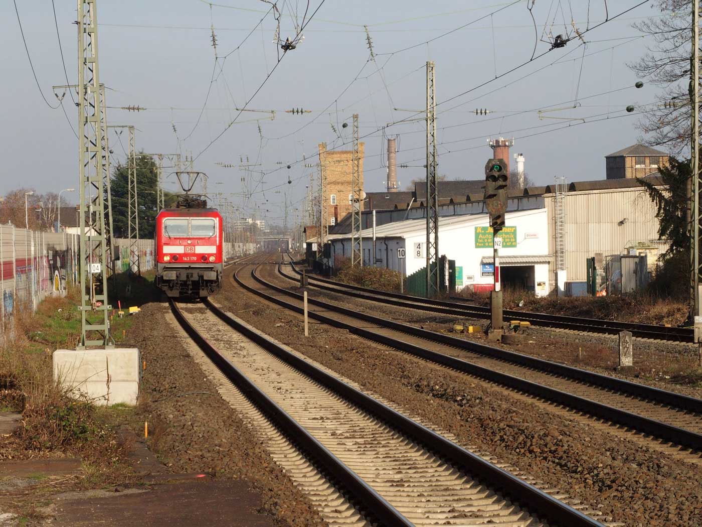 km 3,6 (versteckt hinter dem Oberleitungsmast) gehört zur Strecke