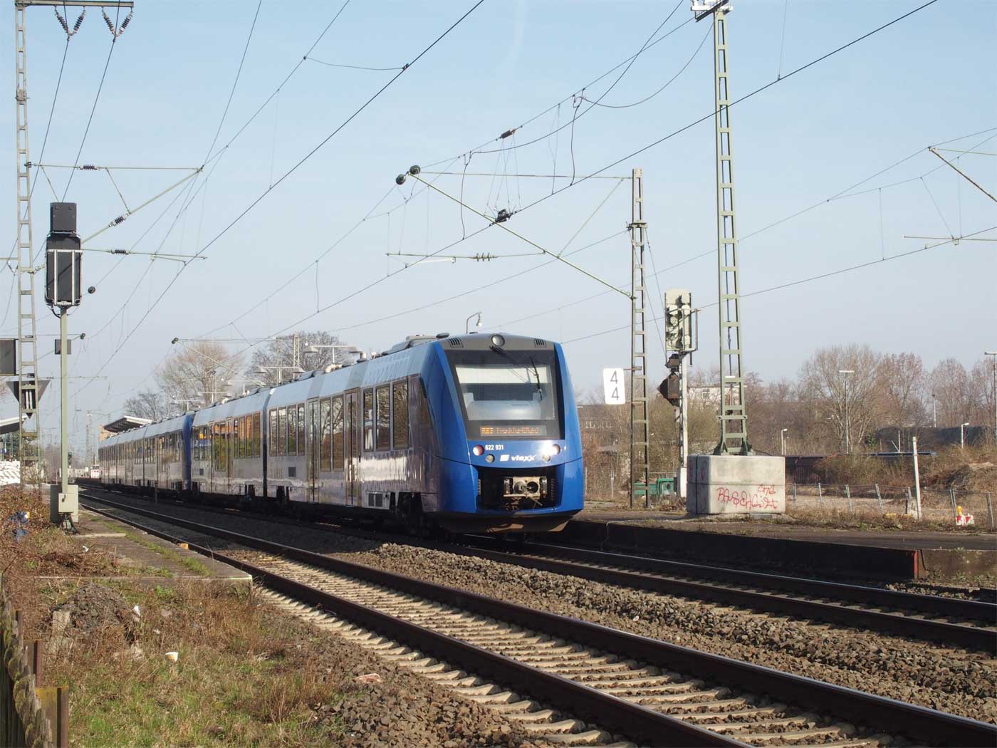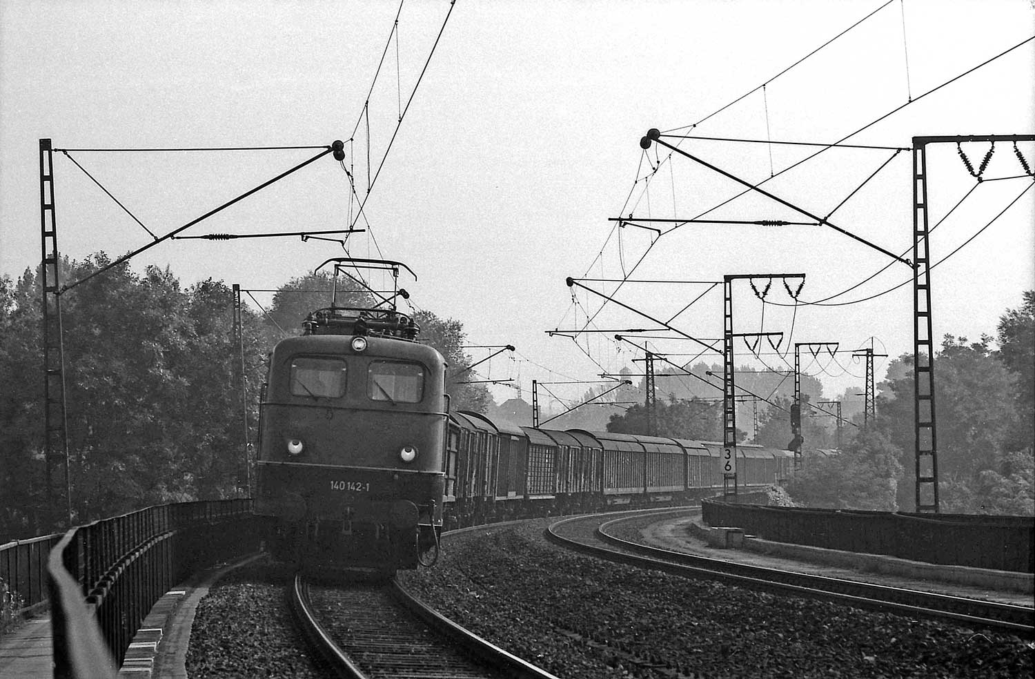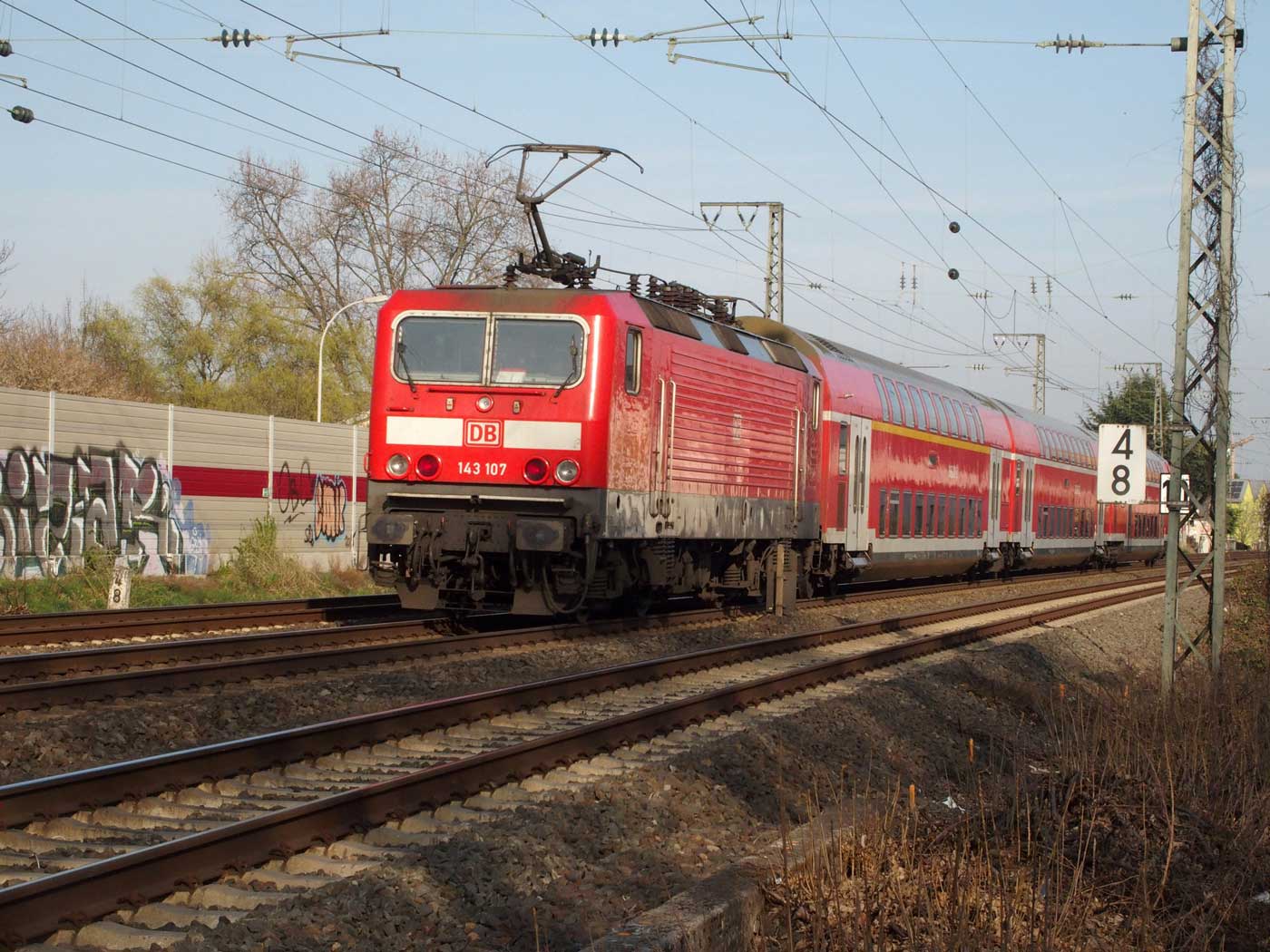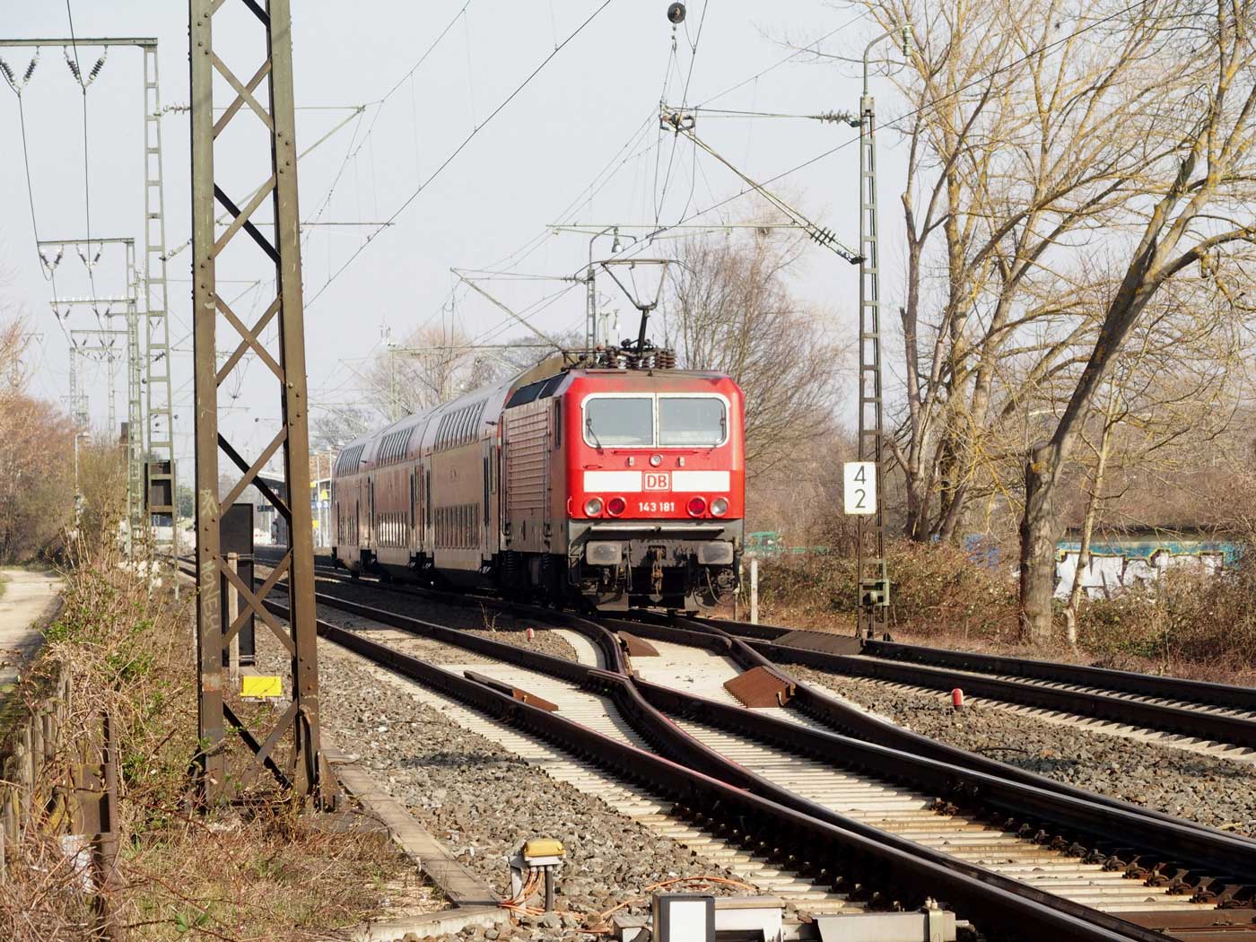 km 3,6 (versteckt hinter dem Oberleitungsmast) gehört zur Strecke