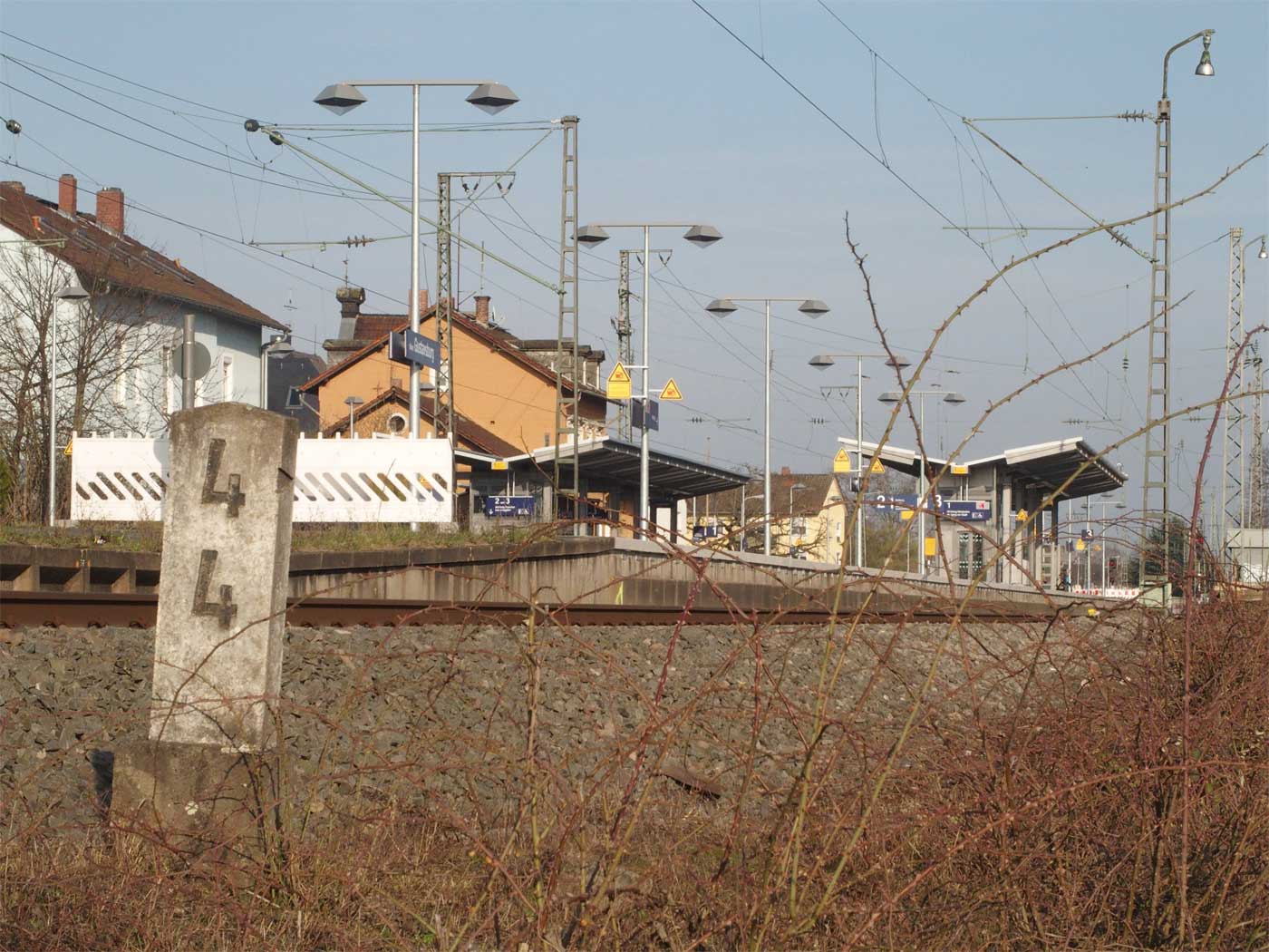 km 1,4 (Stein und Tafel rechts) gehören zur Strecke Frankfurt (Main) Hbf 0,0 - Niedernhausen (Taunus) 31,89 - Eschhofen 66,47 (3610)
