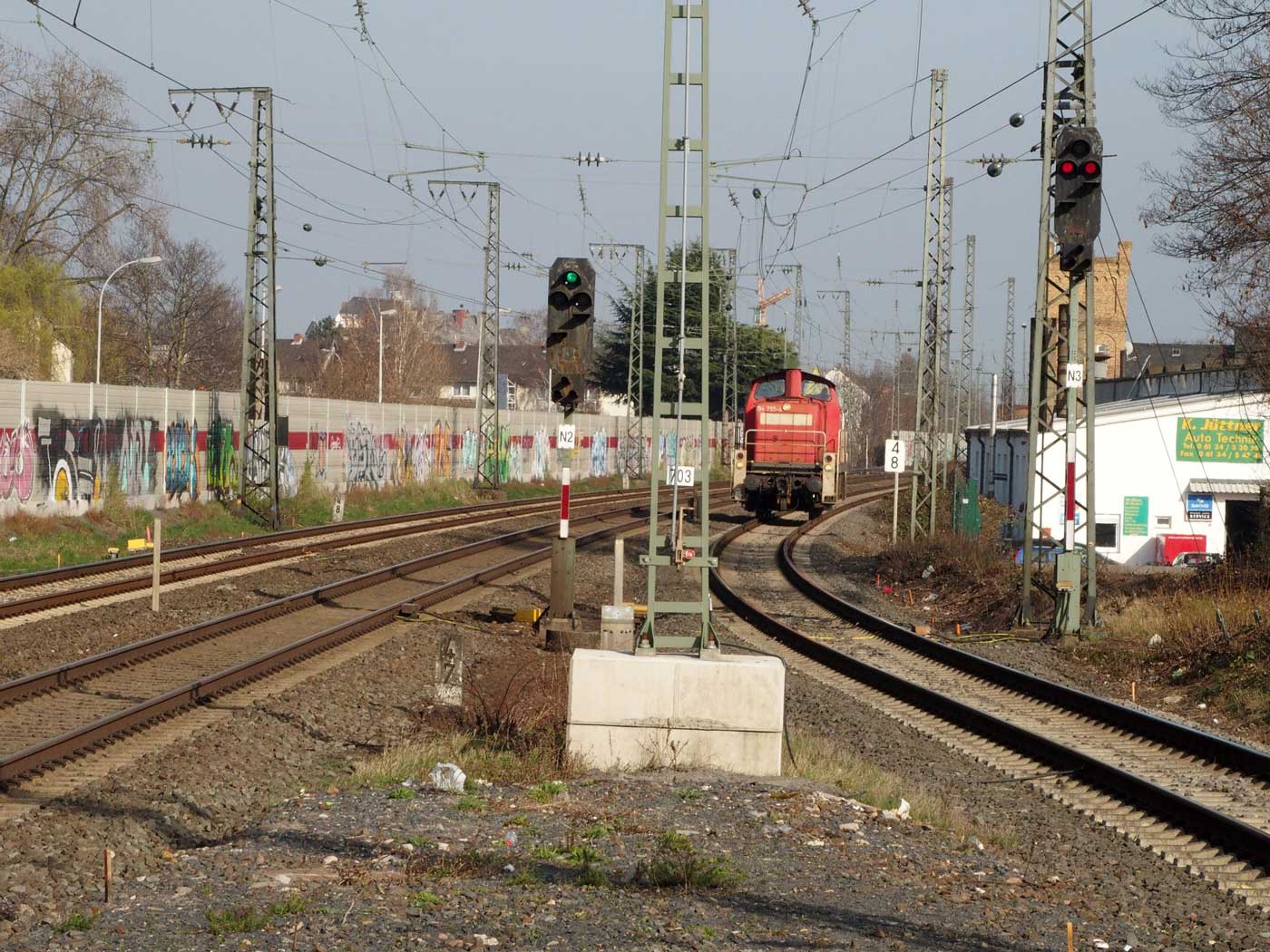 km 34,0 in Frankfurt (M)-Niederrad - Blick Richtung Frankfurt (Main) Hbf