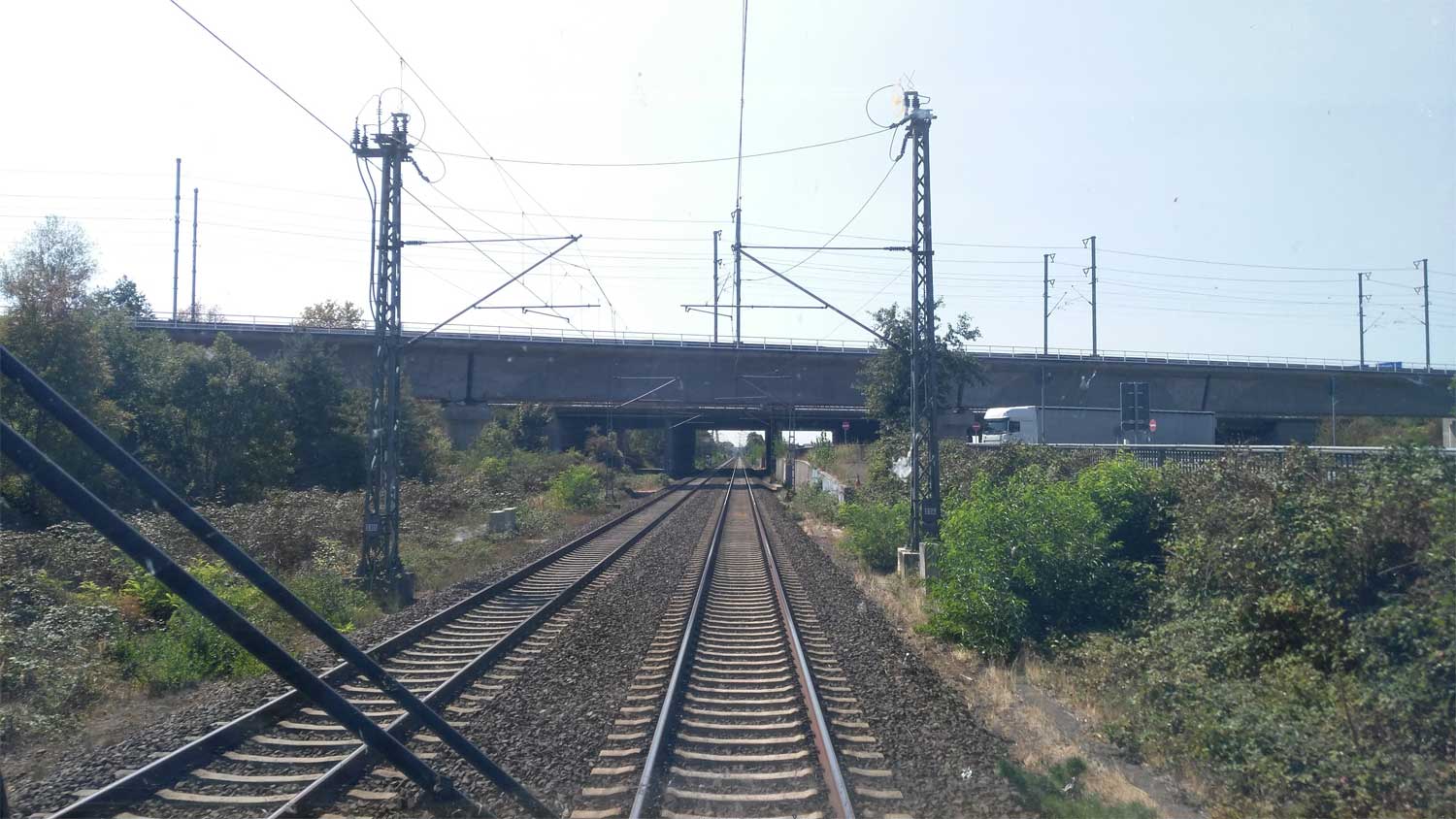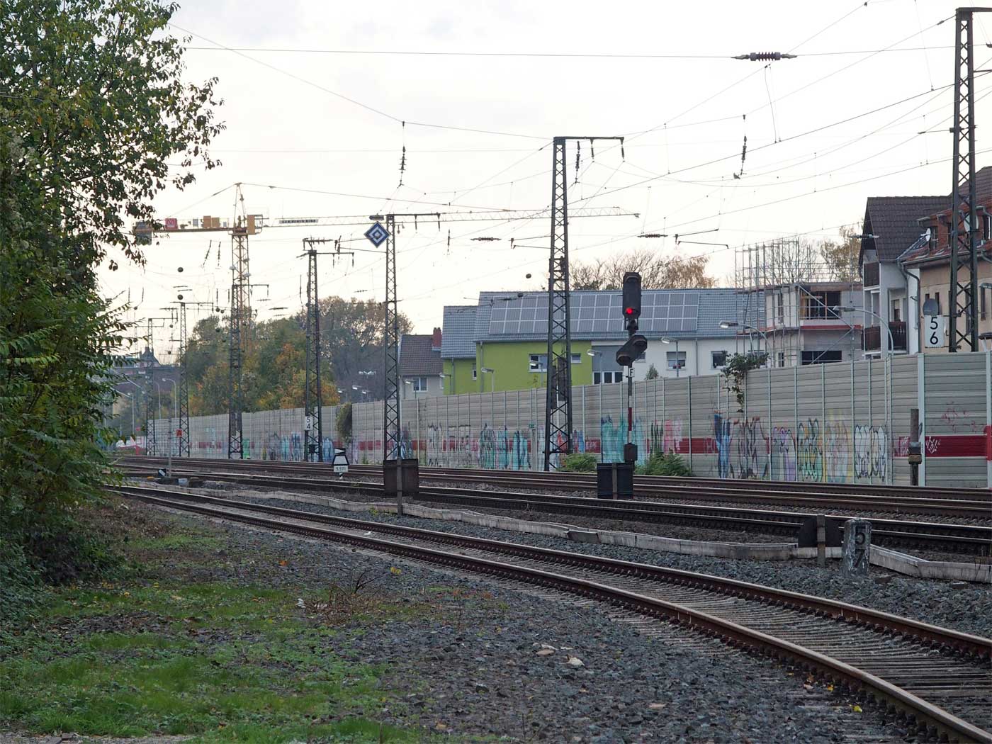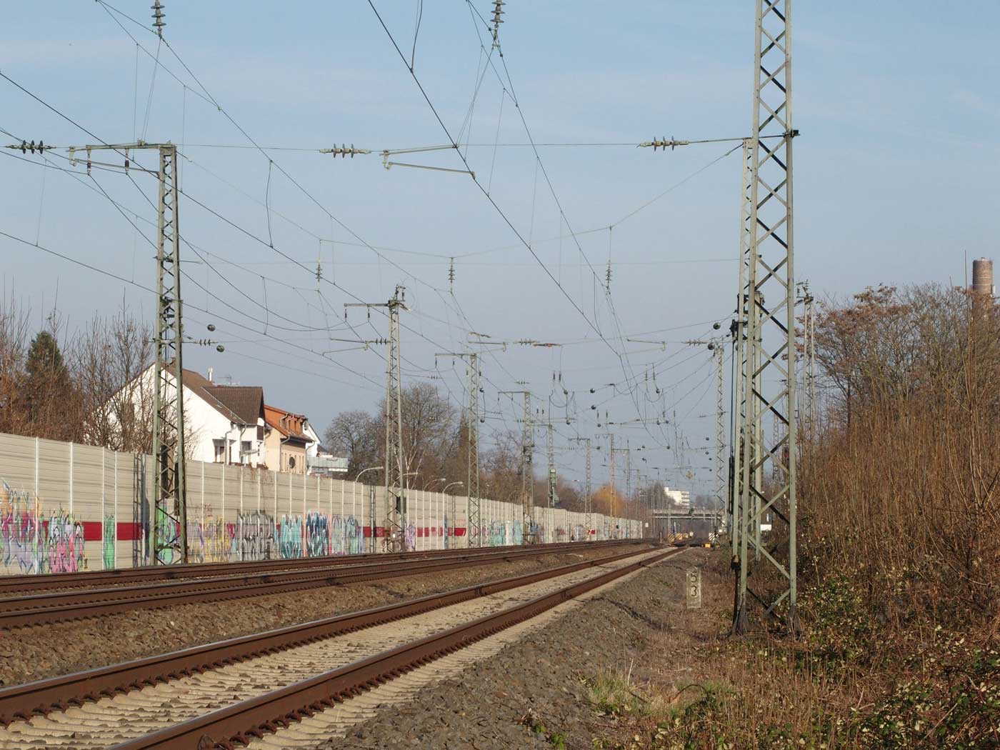 km 31,5 in Frankfurt (M)-Sportfeld - Blick Richtung Frankfurt (Main) Hbf
