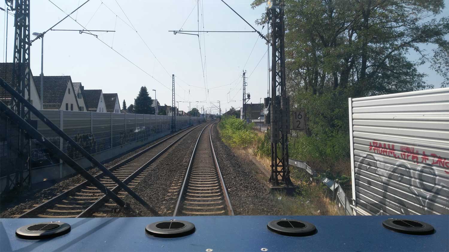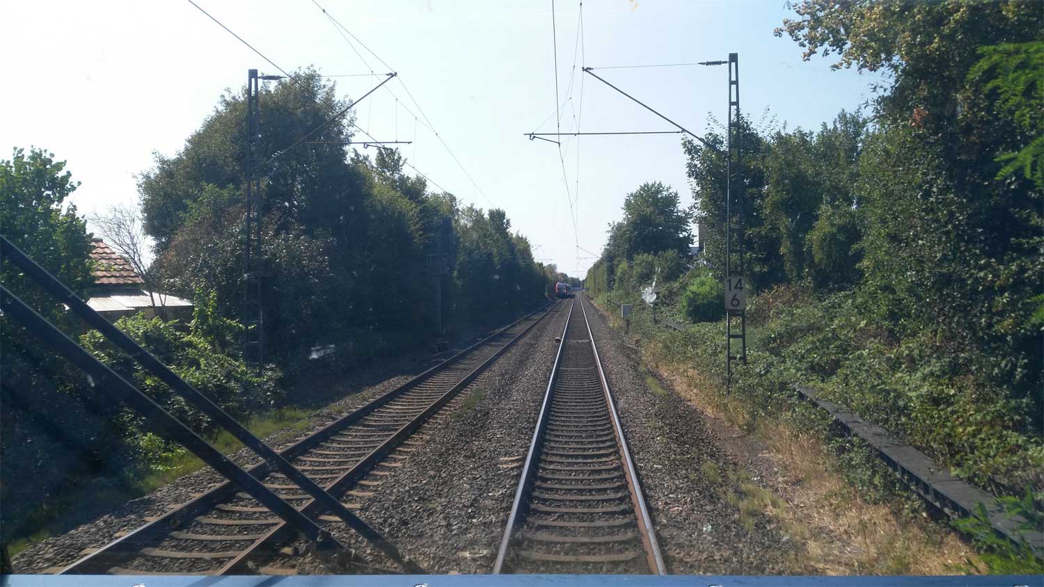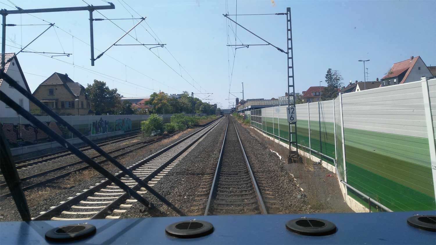 km 31,5 in Frankfurt (M)-Sportfeld - Blick Richtung Frankfurt (Main) Hbf