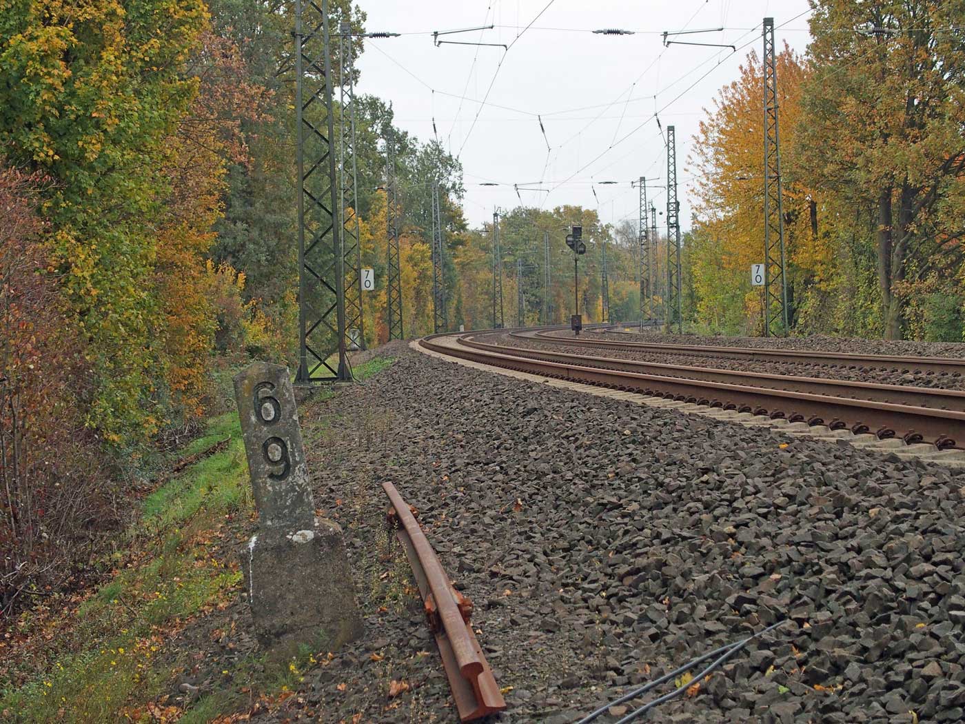 | km 49,09 der Strecke Landesgrenze Pfalz/Hessen 0,0 - Worms Hbf 3,21 - Mainz Hbf 49,09 [alte Kilometrierung] | ||