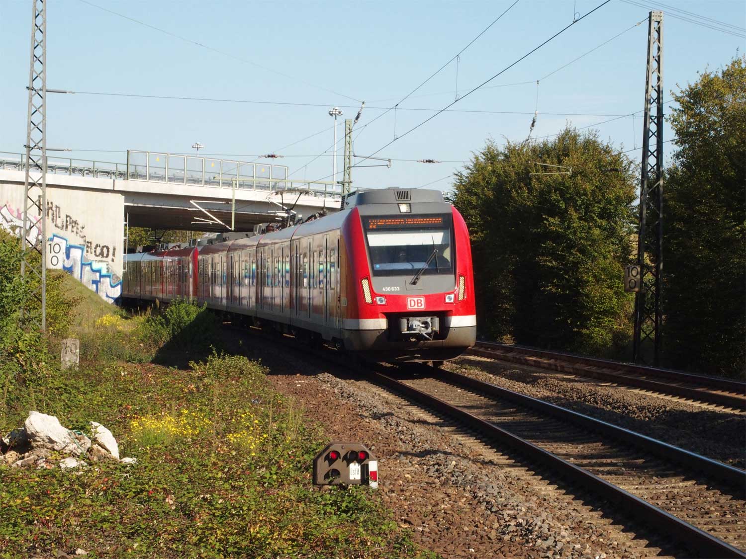 km 33,4 in Frankfurt (M)-Niederrad - Blick Richtung Frankfurt (Main) Hbf