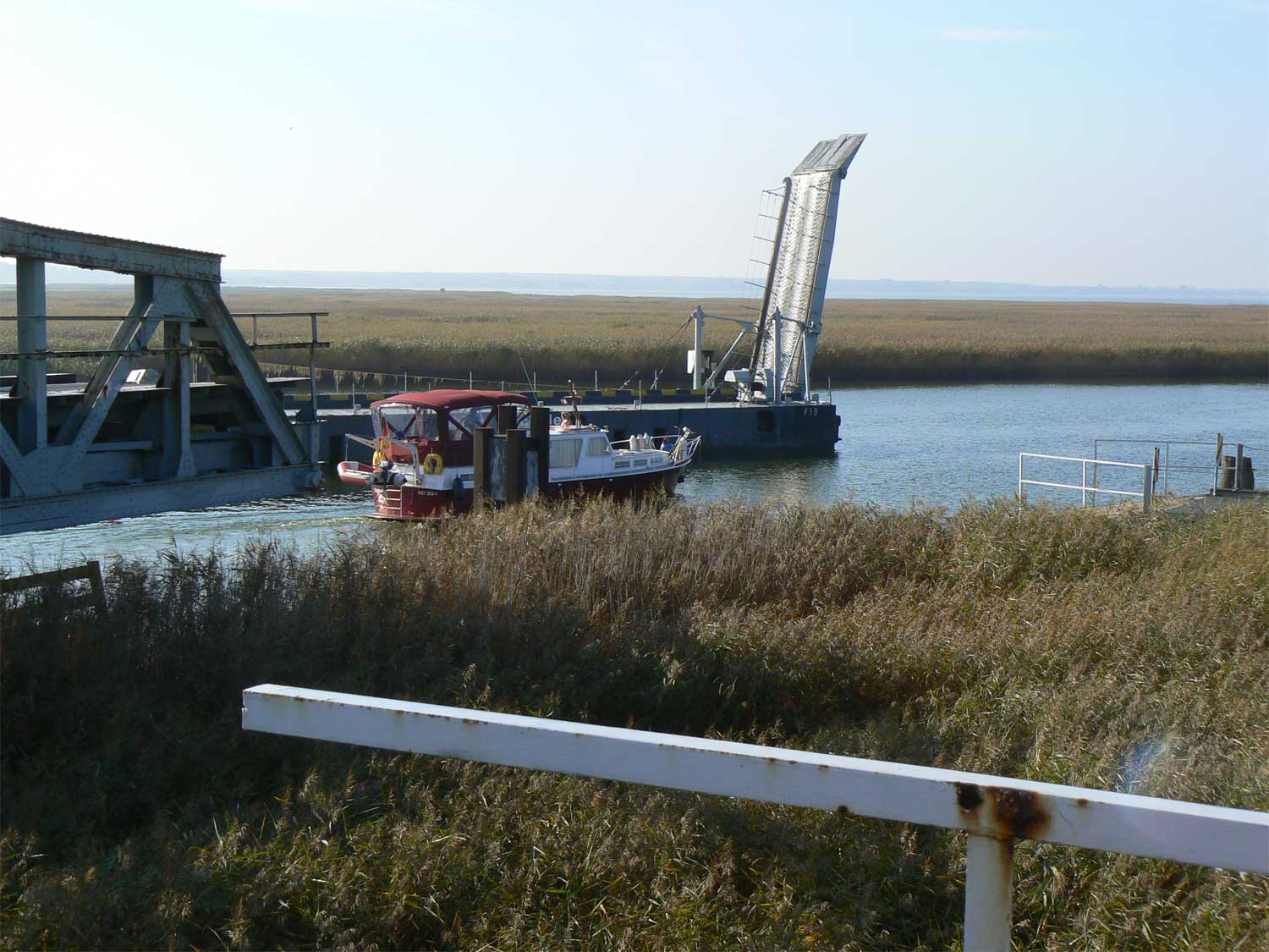 Meiningenbrücke geöffnet - Blick Richtung Zingst