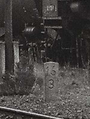 Die Weichenspitze nach dem Überweg hat folgende Kilometrierung: