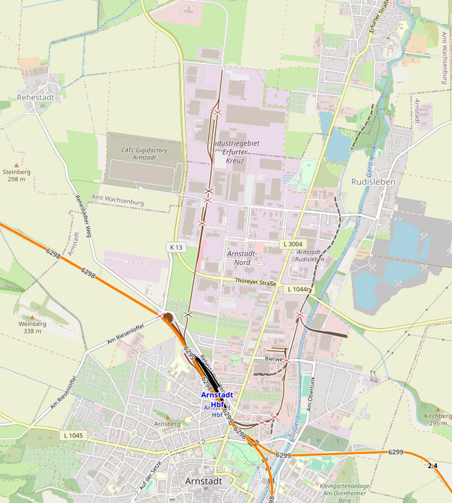 Anschluss Arnstadt Hbf - Industriegebiet Erfurter Kreuz