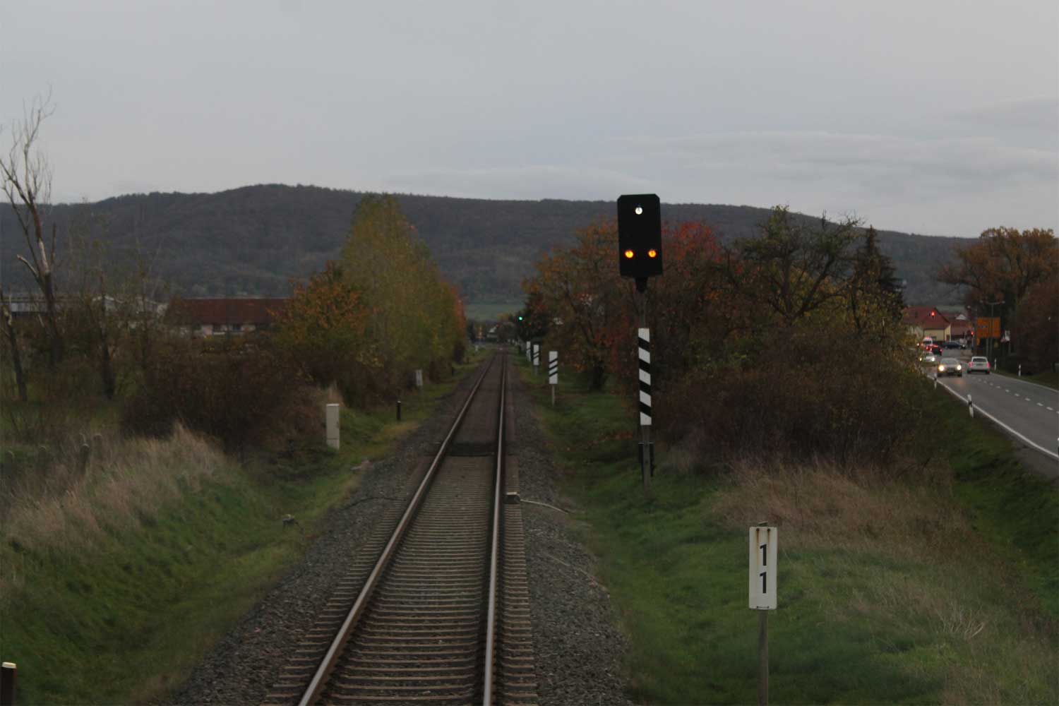 km 0,0 in Berga-Kelbra - Blick Richtung Streckenanfang
