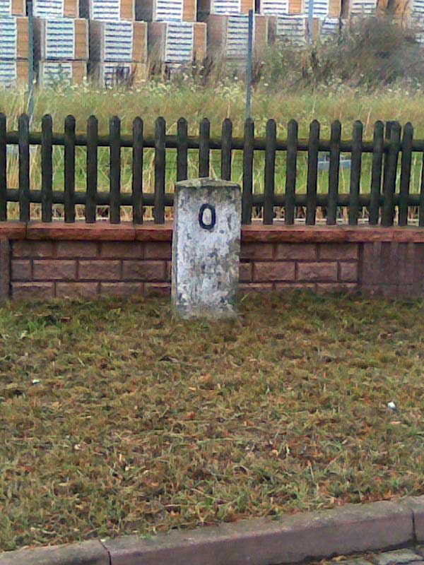 Null-Kilometerstein - heute am Parkplatz aufgestellt