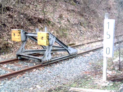 Der Nullstein ist am Gleis zwar verschwunden, wurde aber erhalten.