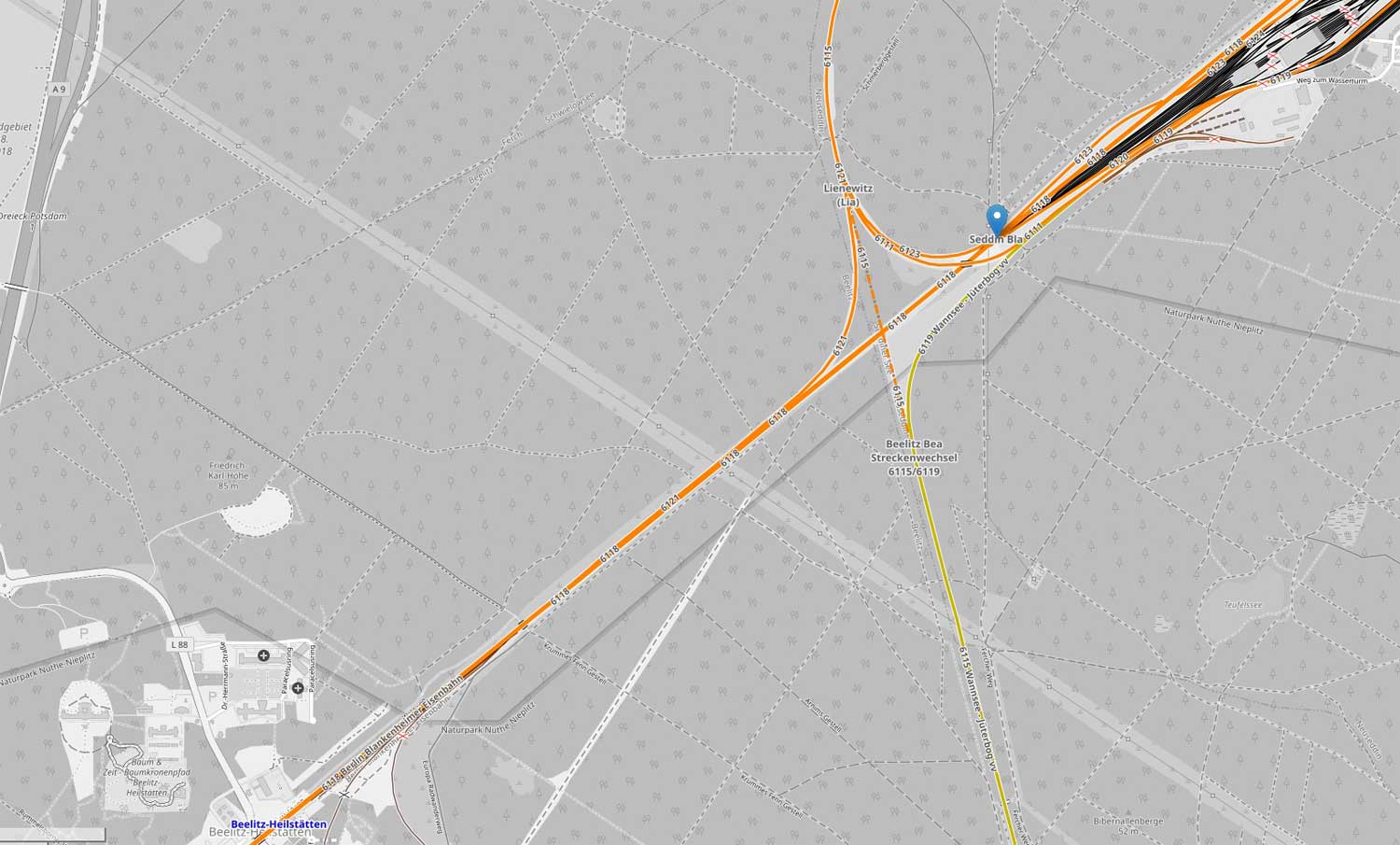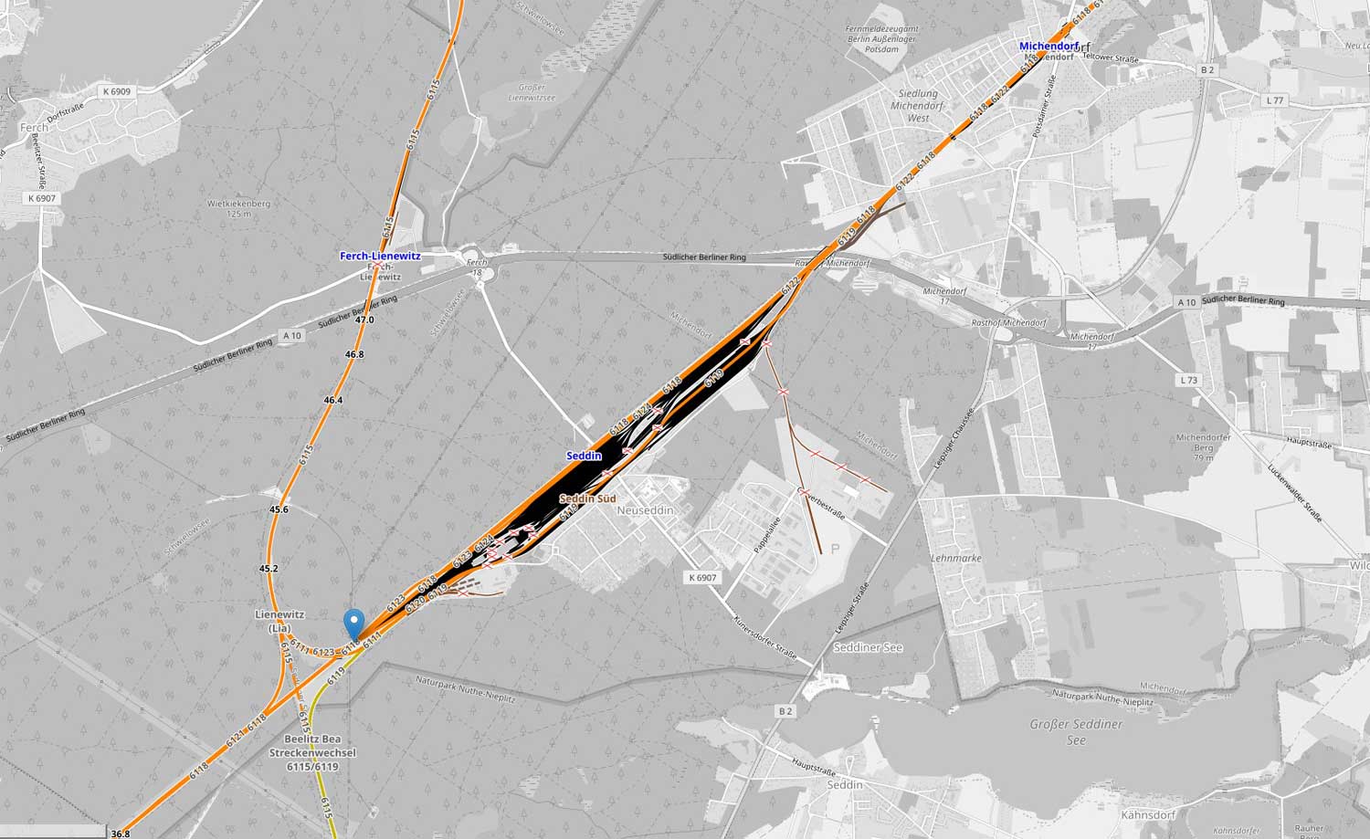 Beelitz-Heilstätten, 48W1, km 1,26 - Abzw Lienewitz Lia, W 498, km 3,13 (6121)